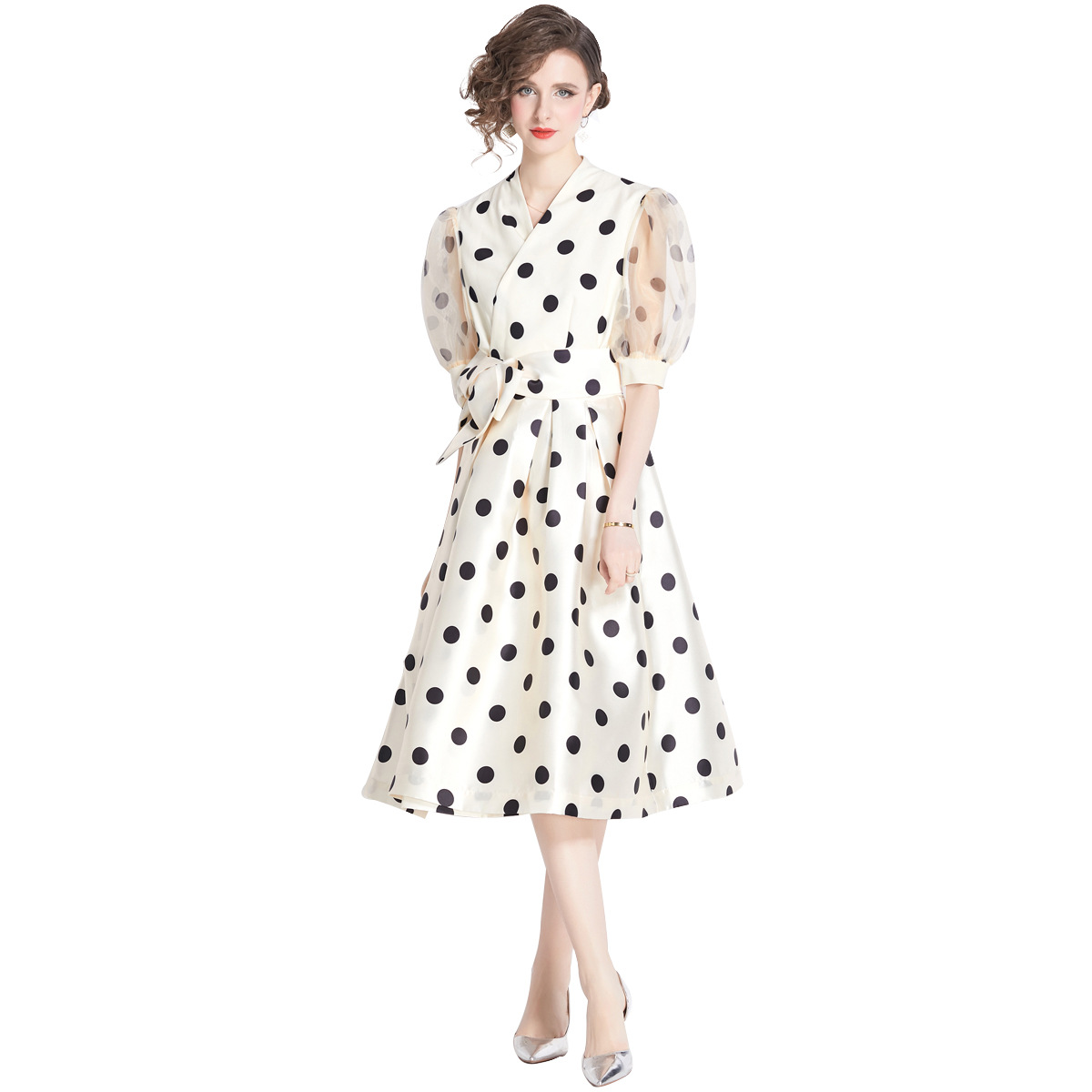 Chiếc đầm dành cho những ngày hè, điểm nhấn là họa tiết chấm bi sinh động. Kiểu dáng ôm nhẹ ở eo giúp tôn dáng, kết hợp cùng dây buộc nơ tạo nét duyên dáng. Thiết kế theo phong cách thanh lịch, dáng dài mang lại vẻ ngoại hình tự tin và thoải mái. Có thể phối cùng giày sandal và mũ rộng vành để tạo set đồ hoàn chỉnh cho nhiều dịp khác nhau. | Tên sản phẩm: Váy Đầm Liền Thân Dáng Dài Nữ Hàng Mùa Hè - Thời Trang Nữ | Mã sản phẩm: B3600 - Giá: 1.070.000đ | Mã nhà sản xuất: GUDG-G03Hình ảnh sản phẩm