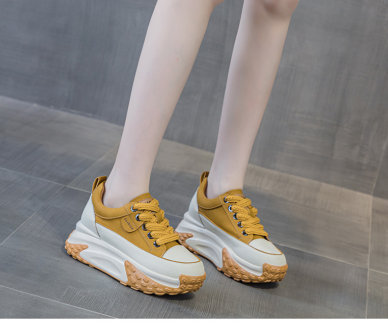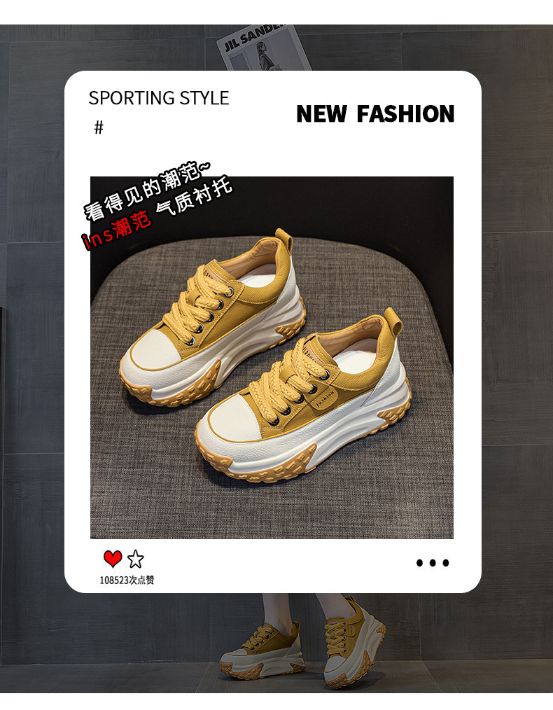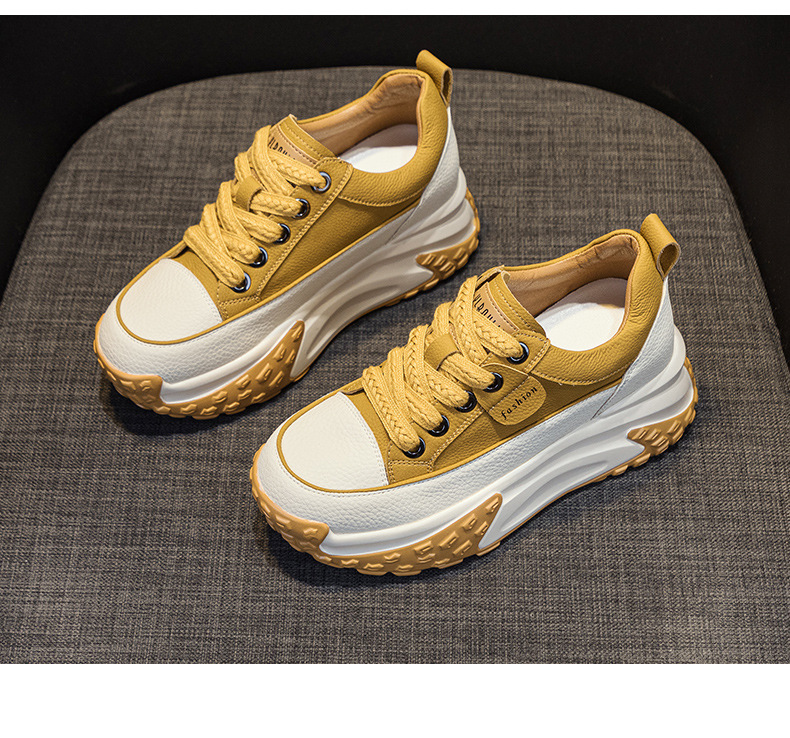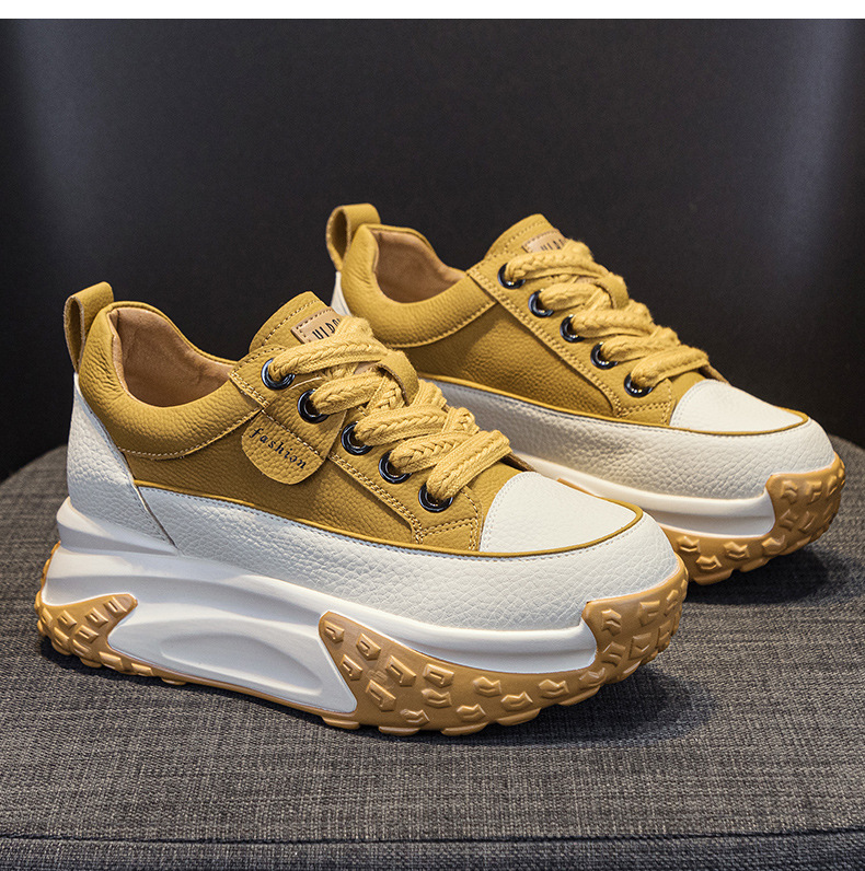 Giày thể thao nữ thiết kế dáng cổ điển, phù hợp cho mùa thu. Sản phẩm có phần đế dày tạo cảm giác nhẹ nhàng và giúp tăng chiều cao một cách tự nhiên khi mang. Bề mặt giày làm từ chất liệu da mềm cho độ bền tốt. Kiểu dáng dễ phối hợp với nhiều trang phục như quần jeans hay váy ngắn, dùng cho các hoạt động hằng ngày hoặc khi đi dạo. Chỉ cần vệ sinh bề mặt bằng khăn mềm là giày luôn sạch đẹp. | Tên sản phẩm: Giày Thể Thao Nữ Tăng Chiều Cao Đế Cao Hàng Mùa Xuân Thu Đông Phục Cổ Cổ Điển - Giày Dép Nữ | Mã sản phẩm: B3601 - Giá: 980.000đ | Mã nhà sản xuất: WEDG-G03Hình ảnh sản phẩm
