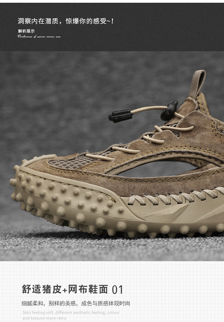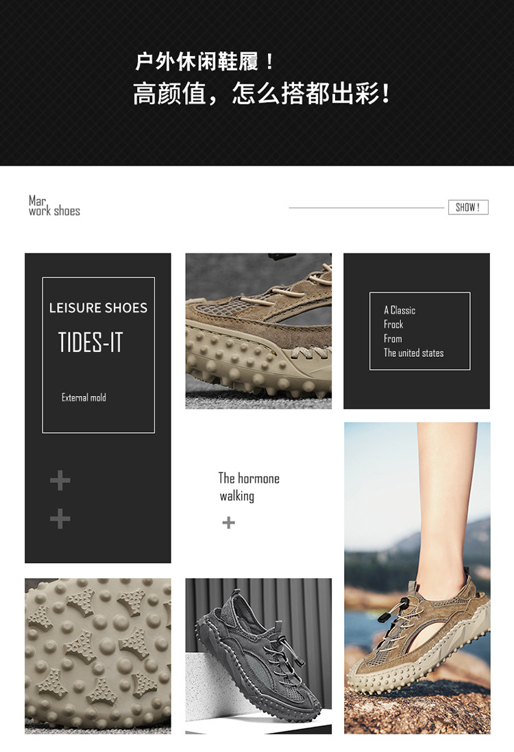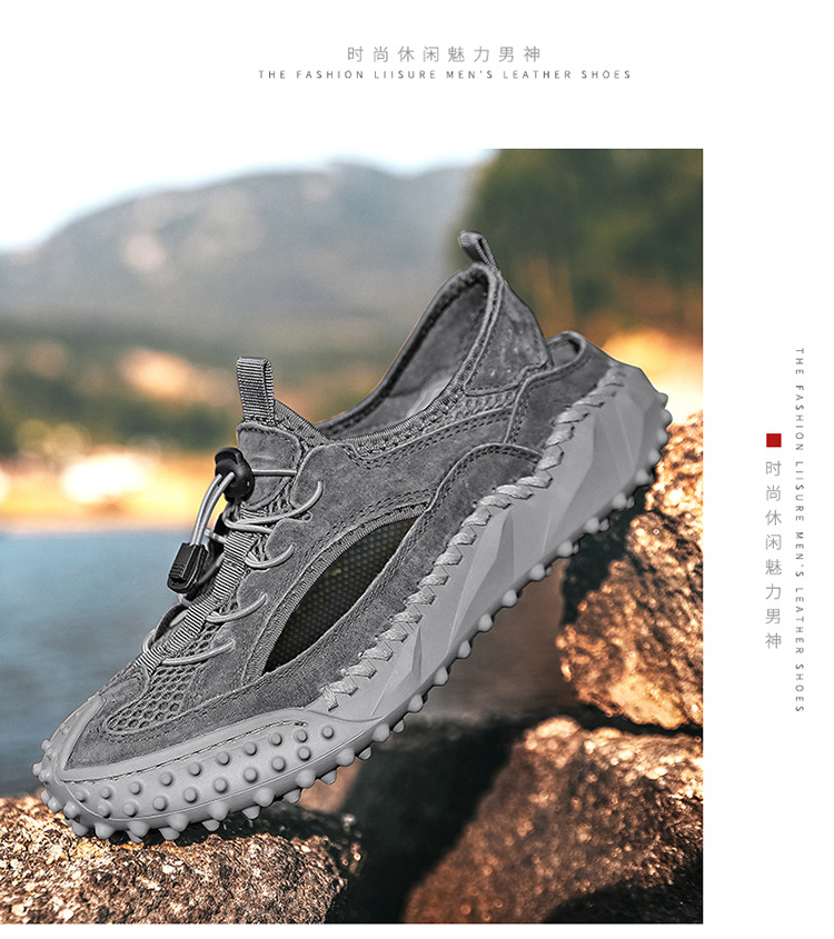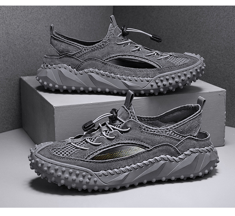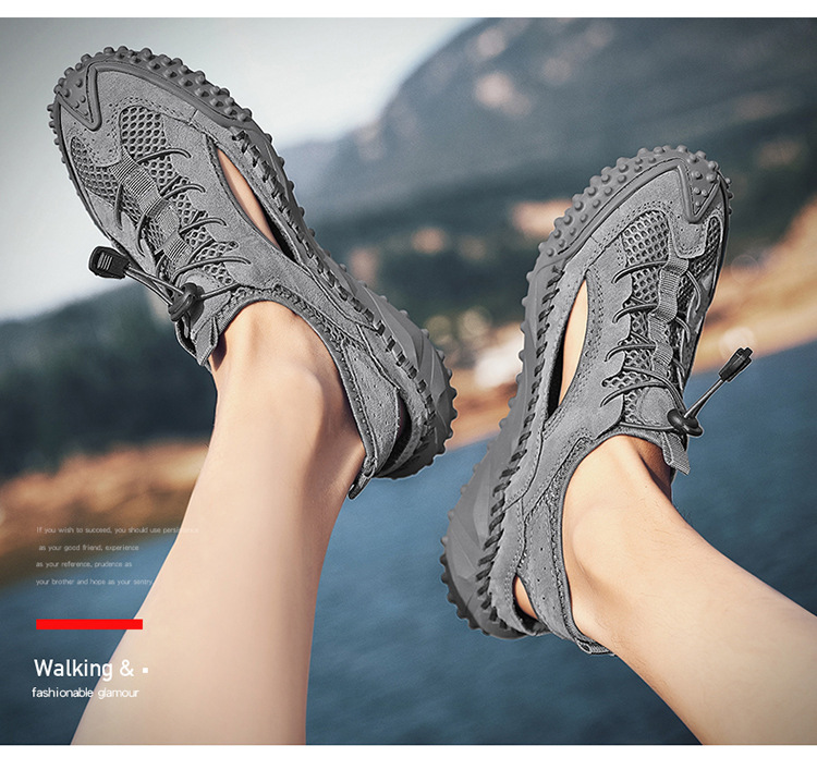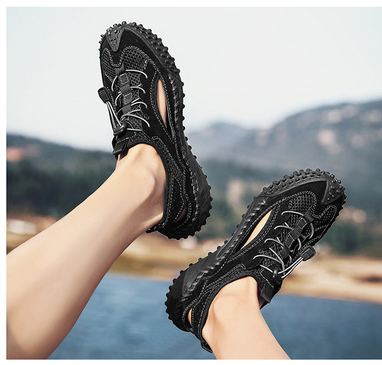 Đôi giày thể thao nam thiết kế dạng hở, phần mũi kín bảo vệ ngón chân, rất phù hợp cho các hoạt động ngoài trời như leo núi, dạo biển hay đi chơi vào mùa hè. Đế giày có khả năng bám tốt trên nhiều địa hình, kể cả bề mặt ẩm ướt. Kiểu dáng lưới thoáng khí giúp chân luôn mát mẻ và nhanh khô khi tiếp xúc với nước. Bạn có thể mang trực tiếp mà không cần vớ, tiện lợi cho việc di chuyển và vui chơi. | Tên sản phẩm: Giày Dép Sandal Nam Ma Sát Chống Trượt Hàng Mùa Hè - Giày Dép Nam | Mã sản phẩm: B3606 - Giá: 810.000đ | Mã nhà sản xuất: TADRA-G03Hình ảnh sản phẩm