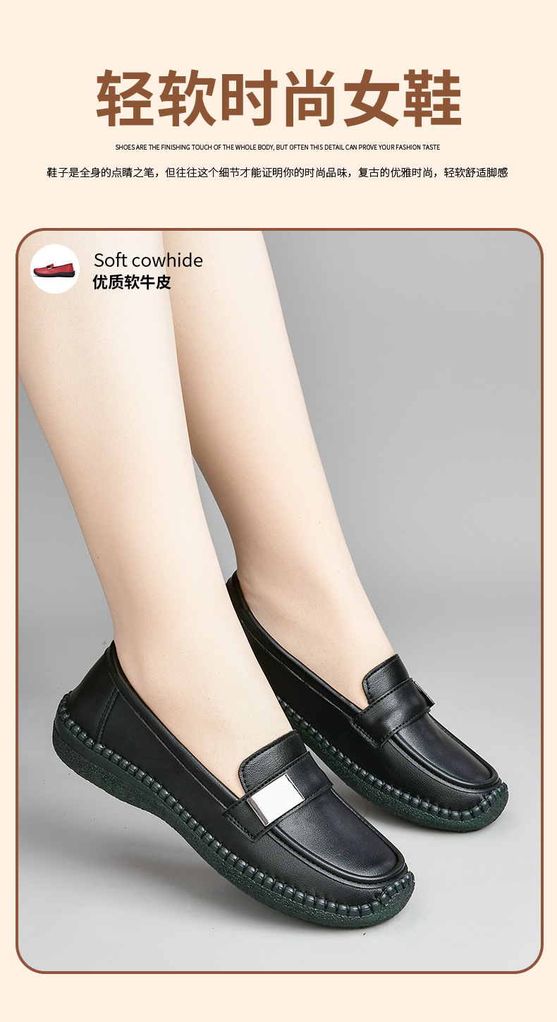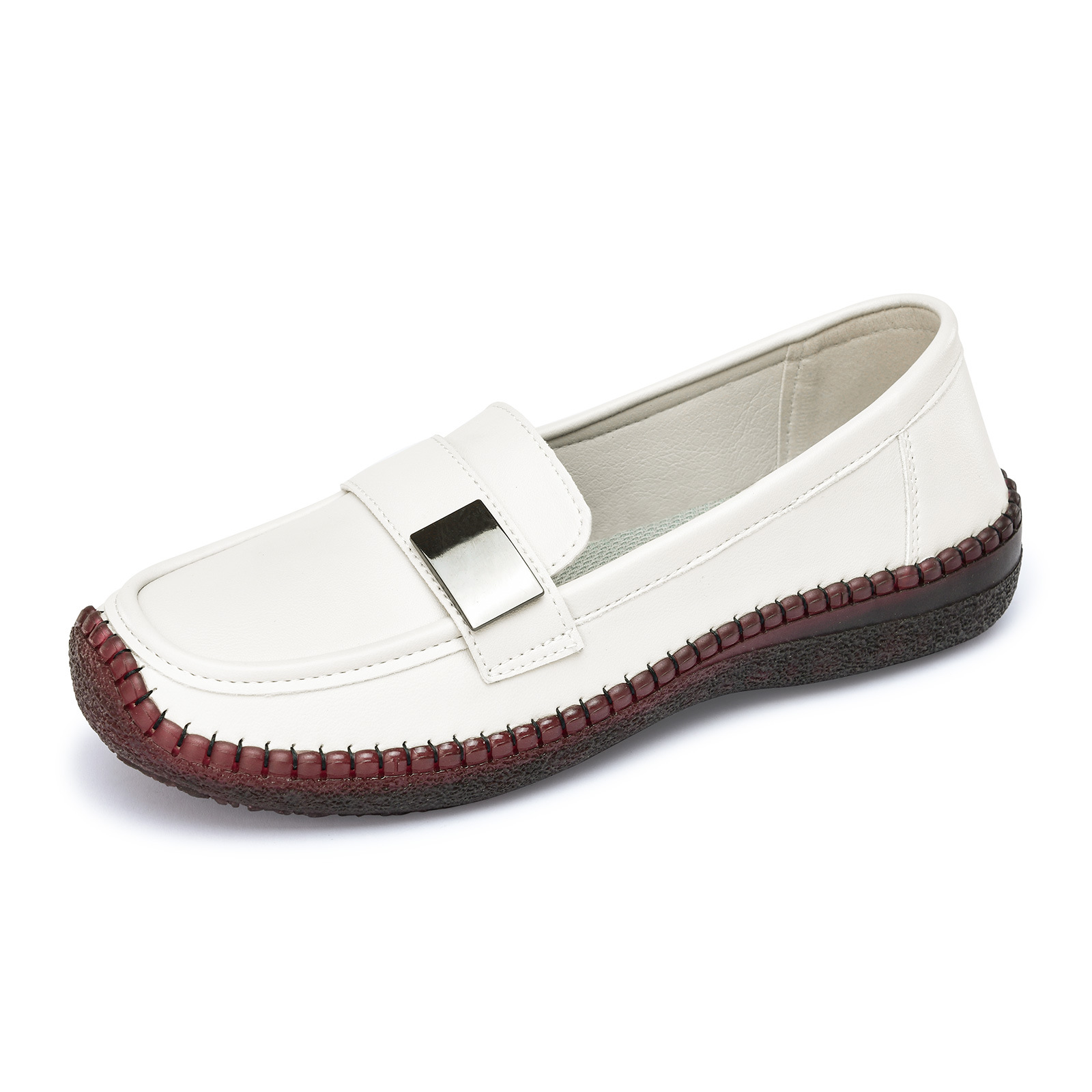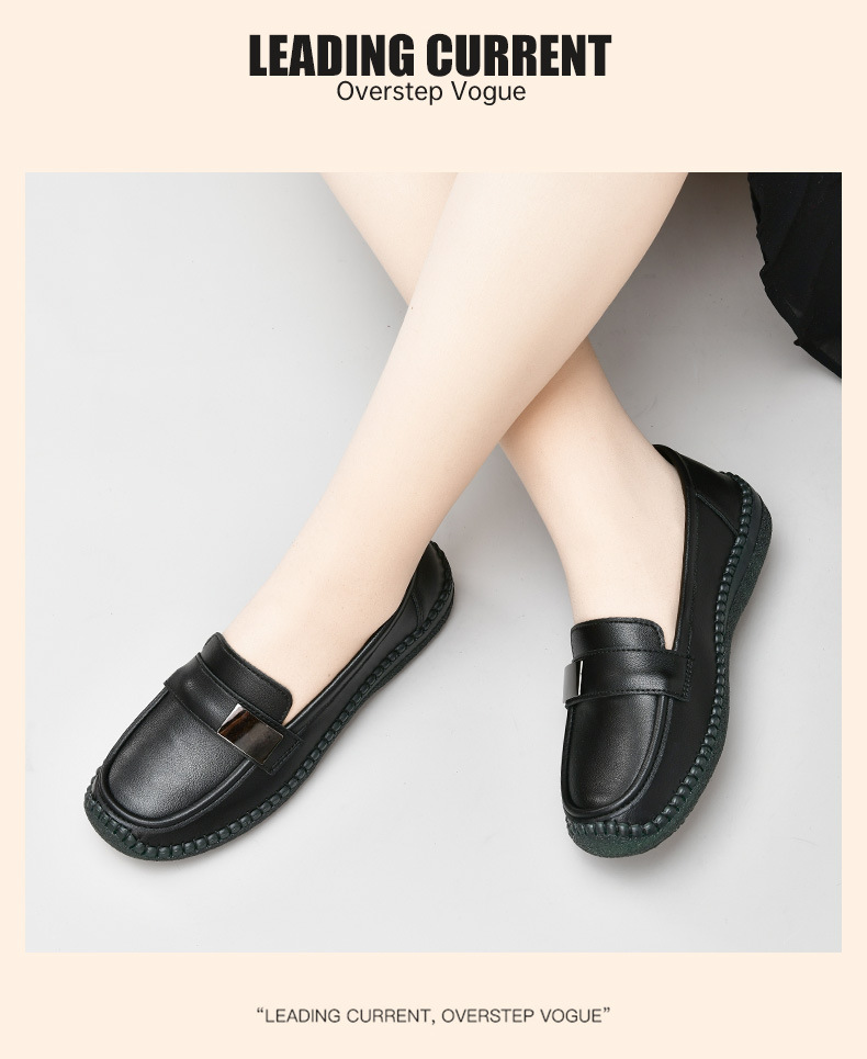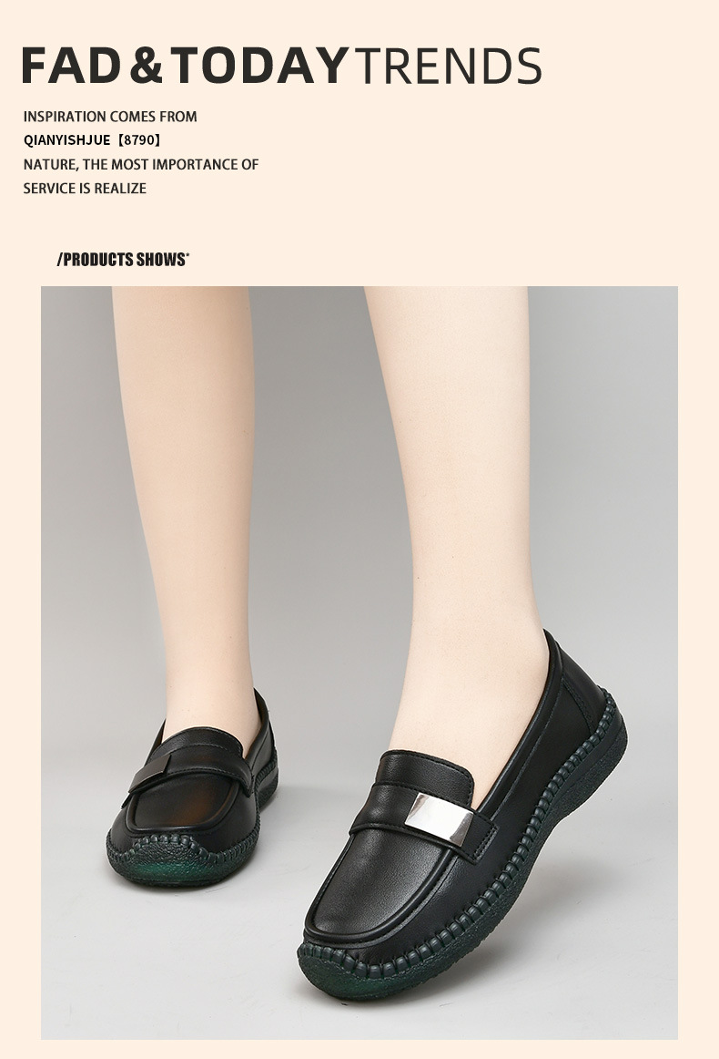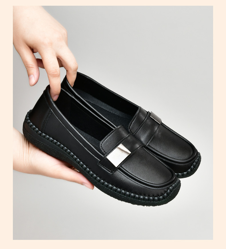 Giày da dành cho nữ, kiểu dáng thoải mái, phù hợp cho những ngày xuân ấm áp. Sản phẩm có thiết kế không cần buộc dây, rất tiện lợi khi mang vào hoặc tháo ra. Đế giày được làm bằng chất liệu chống trượt, giúp bạn di chuyển an toàn và vững chãi trên nhiều bề mặt. Kiểu dáng đơn giản, phẳng và ôm chân tạo cảm giác dễ chịu cho cả ngày dài. Bạn có thể dùng hàng ngày, kết hợp với nhiều loại trang phục khác nhau để tạo vẻ ngoài gọn gàng. | Tên sản phẩm: Giày Da Nữ Ma Sát Chống Trượt Hàng Mùa Xuân Thu Đông Trung Niên - Giày Dép Nữ | Mã sản phẩm: B3632 - Giá: 770.000đ | Mã nhà sản xuất: TADRA-G02Hình ảnh sản phẩm