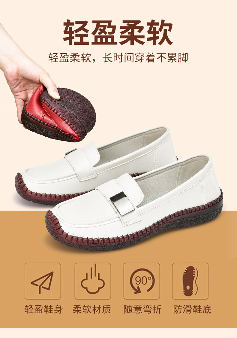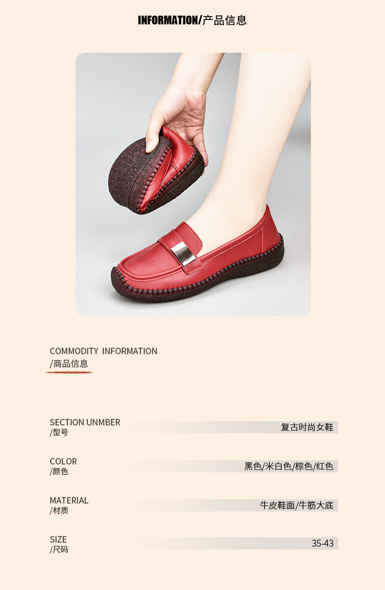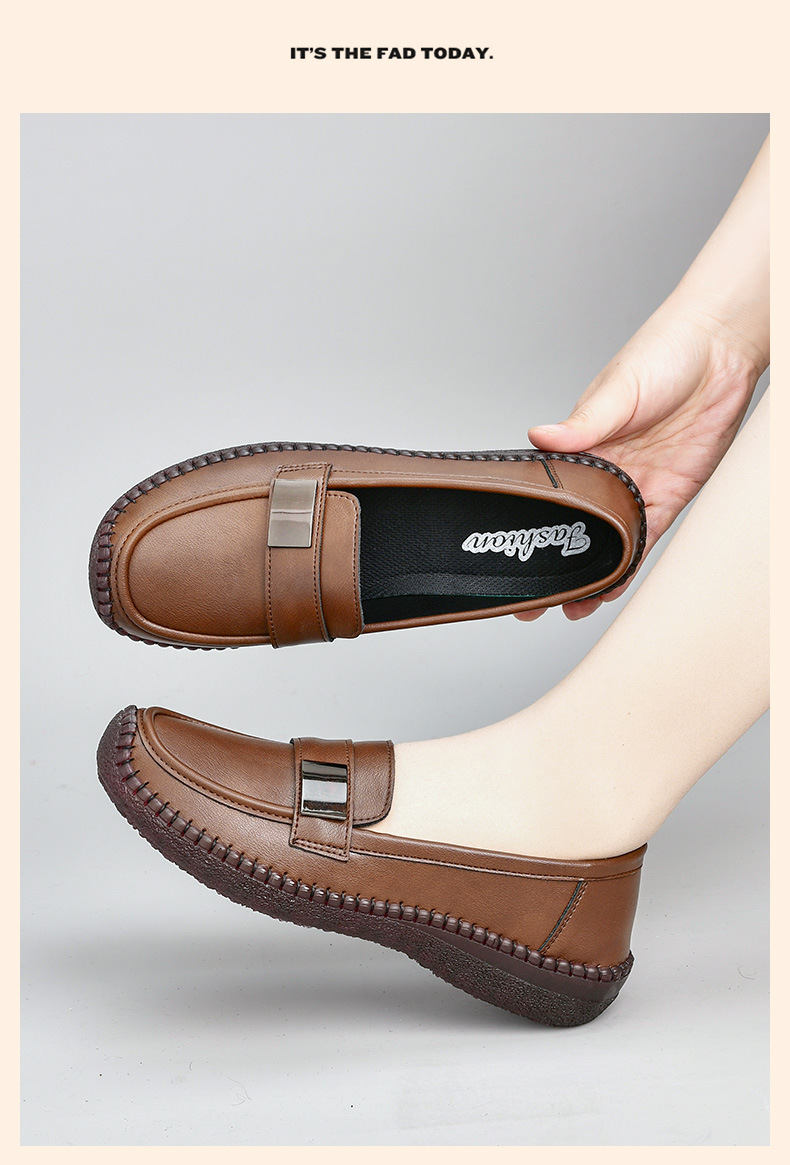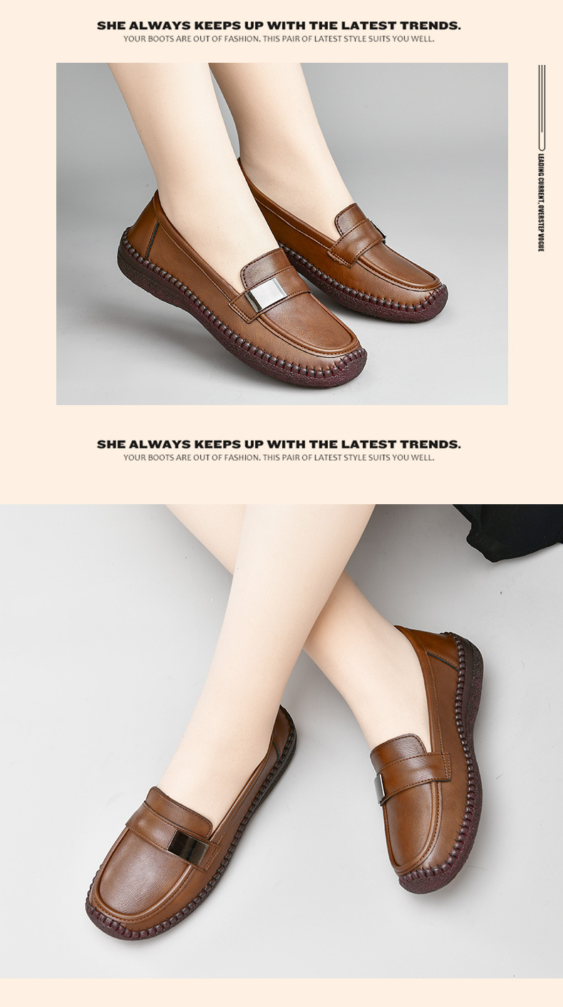 Giày da dành cho nữ, kiểu dáng thoải mái, phù hợp cho những ngày xuân ấm áp. Sản phẩm có thiết kế không cần buộc dây, rất tiện lợi khi mang vào hoặc tháo ra. Đế giày được làm bằng chất liệu chống trượt, giúp bạn di chuyển an toàn và vững chãi trên nhiều bề mặt. Kiểu dáng đơn giản, phẳng và ôm chân tạo cảm giác dễ chịu cho cả ngày dài. Bạn có thể dùng hàng ngày, kết hợp với nhiều loại trang phục khác nhau để tạo vẻ ngoài gọn gàng. | Tên sản phẩm: Giày Da Nữ Ma Sát Chống Trượt Hàng Mùa Xuân Thu Đông Trung Niên - Giày Dép Nữ | Mã sản phẩm: B3632 - Giá: 770.000đ | Mã nhà sản xuất: TADRA-G02Hình ảnh sản phẩm