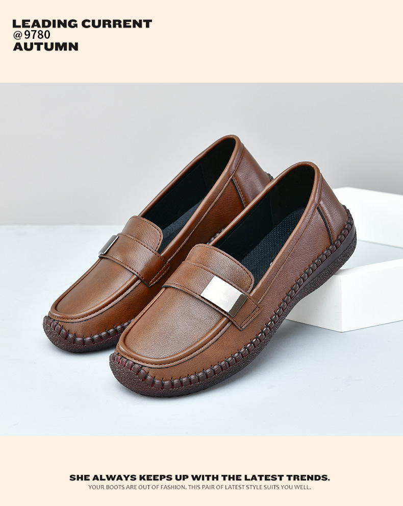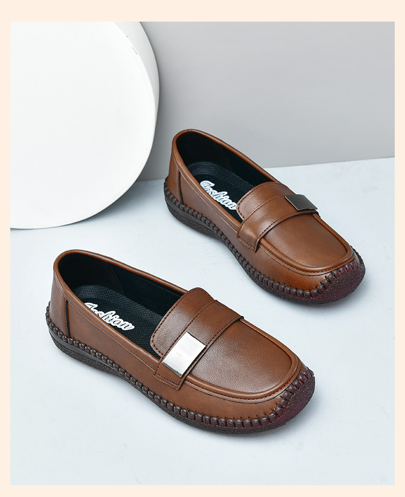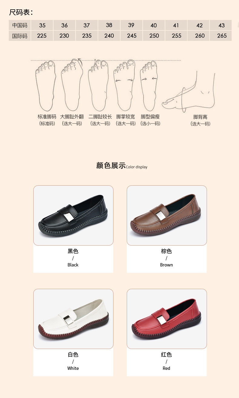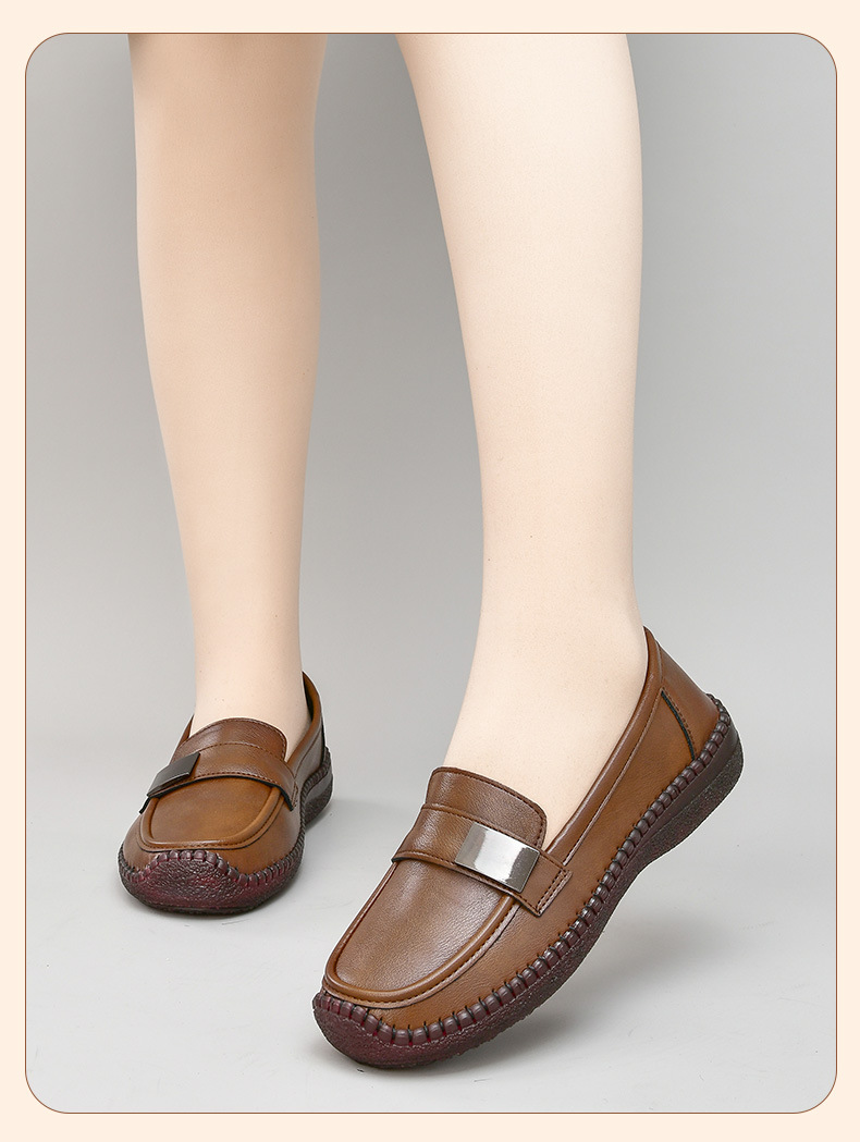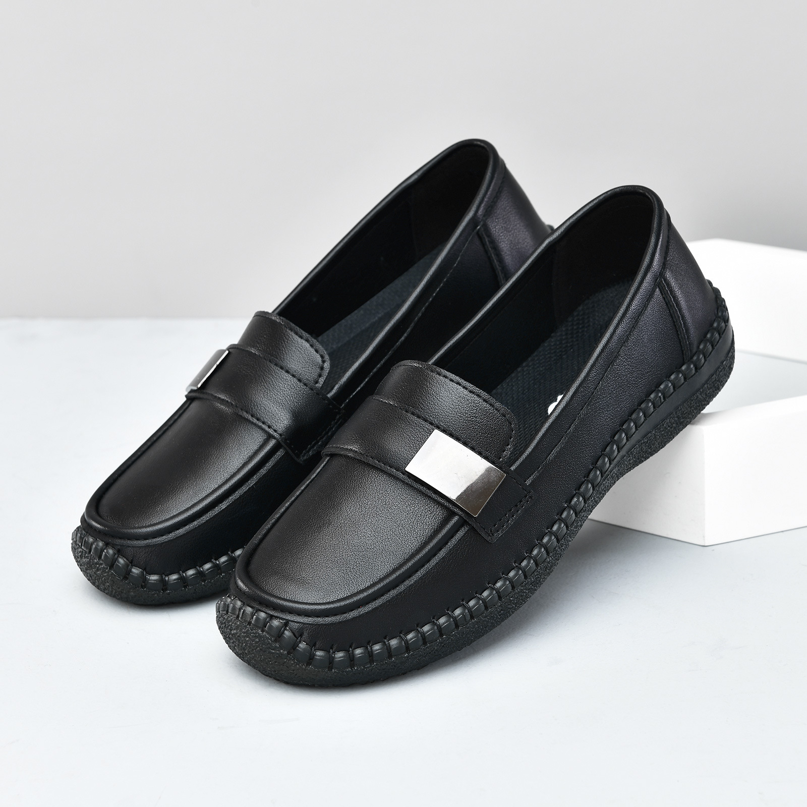 Giày da dành cho nữ, kiểu dáng thoải mái, phù hợp cho những ngày xuân ấm áp. Sản phẩm có thiết kế không cần buộc dây, rất tiện lợi khi mang vào hoặc tháo ra. Đế giày được làm bằng chất liệu chống trượt, giúp bạn di chuyển an toàn và vững chãi trên nhiều bề mặt. Kiểu dáng đơn giản, phẳng và ôm chân tạo cảm giác dễ chịu cho cả ngày dài. Bạn có thể dùng hàng ngày, kết hợp với nhiều loại trang phục khác nhau để tạo vẻ ngoài gọn gàng. | Tên sản phẩm: Giày Da Nữ Ma Sát Chống Trượt Hàng Mùa Xuân Thu Đông Trung Niên - Giày Dép Nữ | Mã sản phẩm: B3632 - Giá: 770.000đ | Mã nhà sản xuất: TADRA-G02Hình ảnh sản phẩm