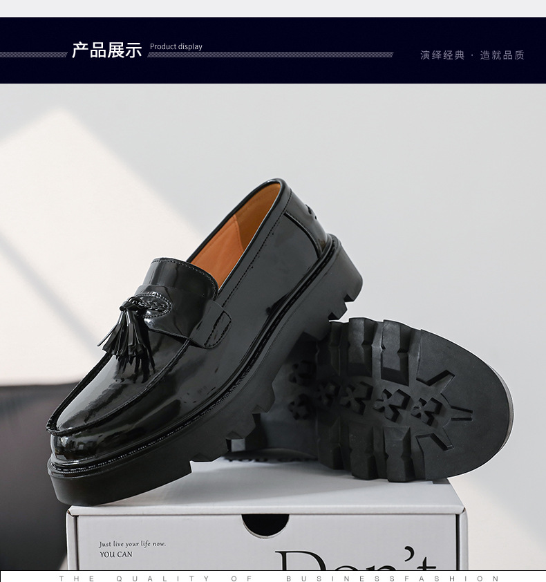 Giày tây dành cho nam, thiết kế kiểu xỏ chân một lần tiện lợi, không cần buộc dây. Sản phẩm có phần đế được làm dày hơn một cách vừa phải, hỗ trợ tăng chiều cao khi mang. Mẫu giày này phù hợp cho các bạn trẻ sử dụng vào mùa xuân và mùa thu. Kiểu dáng mang phong cách nhẹ nhàng, dễ dàng kết hợp với nhiều loại trang phục thường ngày. Chỉ cần xỏ chân vào là có thể sử dụng ngay, rất thiết thực và thoải mái. | Tên sản phẩm: Giày Da Nam Tăng Chiều Cao Đế Cao Hàng Mùa Xuân Thu Đông - Giày Dép Nam | Mã sản phẩm: B3695 - Giá: 700.000đ | Mã nhà sản xuất: TADRA-G02Hình ảnh sản phẩm