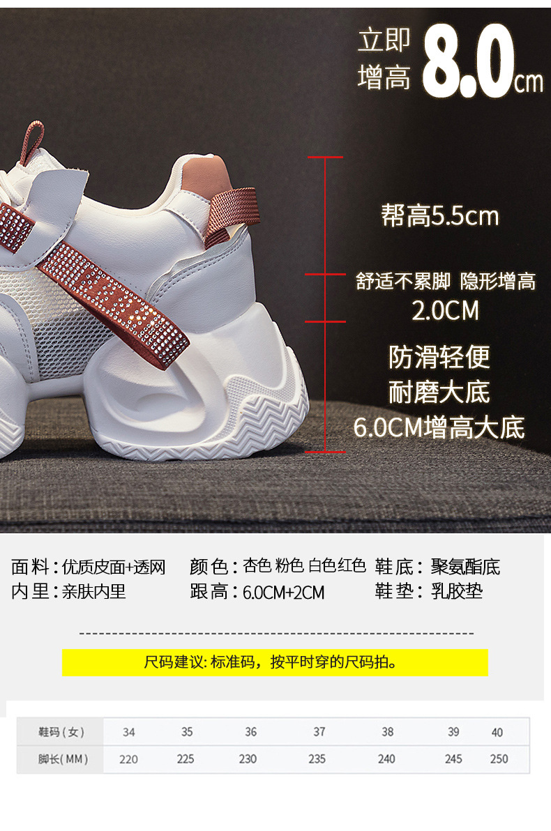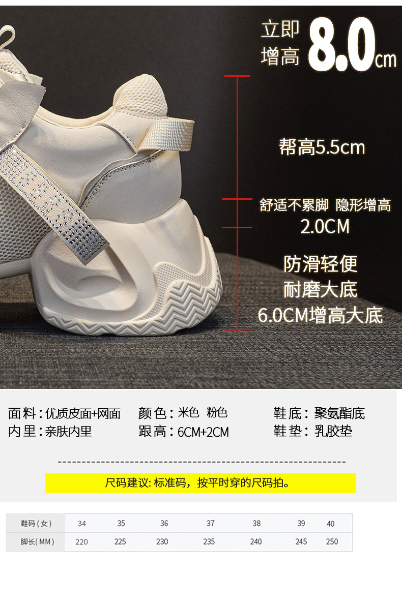 Giày thể thao nữ thiết kế dáng cổ điển, phù hợp cho mùa xuân. Sản phẩm có đế dày giúp tăng chiều cao một cách tự nhiên khi mang. Kiểu dáng năng động, dễ dàng phối hợp với nhiều loại trang phục như quần jeans, váy hay quần thể thao. Đôi giày này rất tiện lợi cho các hoạt động hằng ngày, đi học hay đi chơi. Bạn chỉ cần xỏ chân vào và thắt dây hoặc kéo khóa là đã có ngay một phong cách thoải mái và trẻ trung. | Tên sản phẩm: Giày Thể Thao Tăng Chiều Cao Nữ Tăng Chiều Cao Đế Cao Hàng Mùa Xuân Thu Đông - Giày Dép Nữ | Mã sản phẩm: B3722 - Giá: 1.020.000đ | Mã nhà sản xuất: WEDG-G03Hình ảnh sản phẩm