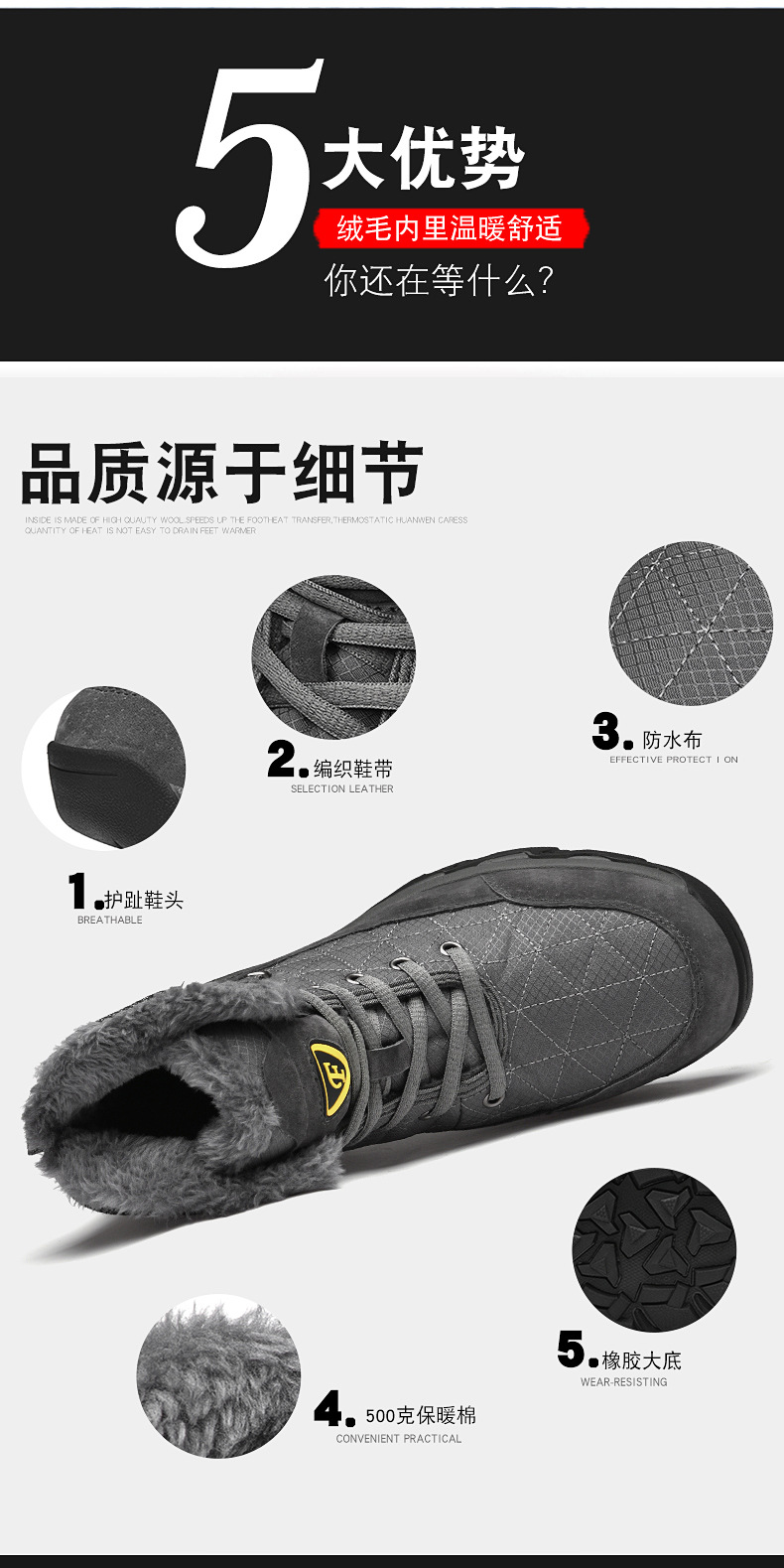 Giày ủng nam mùa lạnh này được làm từ chất liệu da thật, mang đến cảm giác êm ái và bền chắc. Bên trong được lót một lớp lông mềm mại, giữ ấm đôi chân hiệu quả trong những ngày giá rét. Đế giày dày và chắc chắn, giúp bảo vệ bàn chân và chống trơn trượt khi di chuyển ngoài trời. Kiểu dáng cổ cao ôm vừa vặn, phù hợp để đi làm hoặc tham gia các hoạt động hằng ngày. Chỉ cần xỏ vào và cột dây là có thể sử dụng ngay. | Tên sản phẩm: Giày Thể Thao Tăng Chiều Cao Nam Chất Liệu Vải Bông Đế Cao Hàng Mùa Xuân Thu Đông - Giày Dép Nam | Mã sản phẩm: B3746 - Giá: 990.000đ | Mã nhà sản xuất: TADRA-G03Hình ảnh sản phẩm