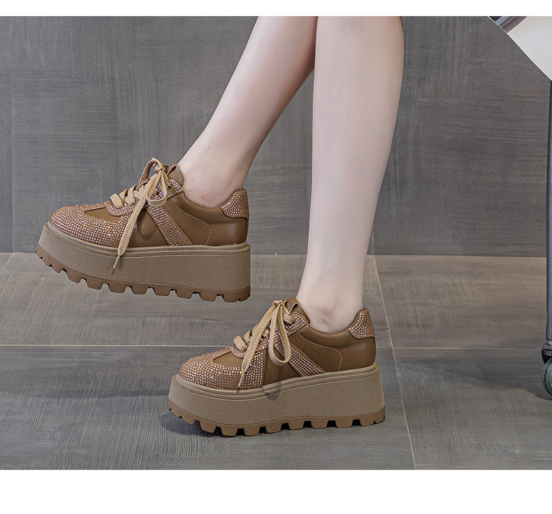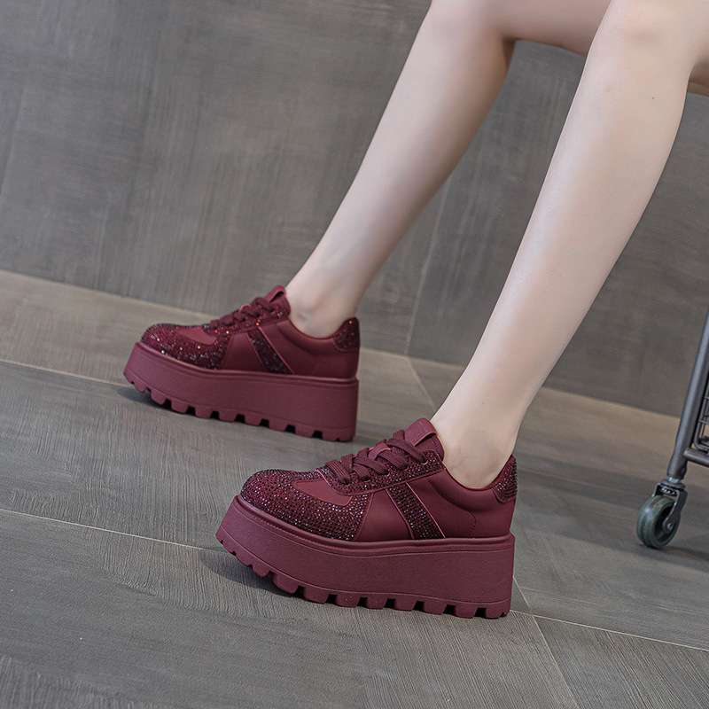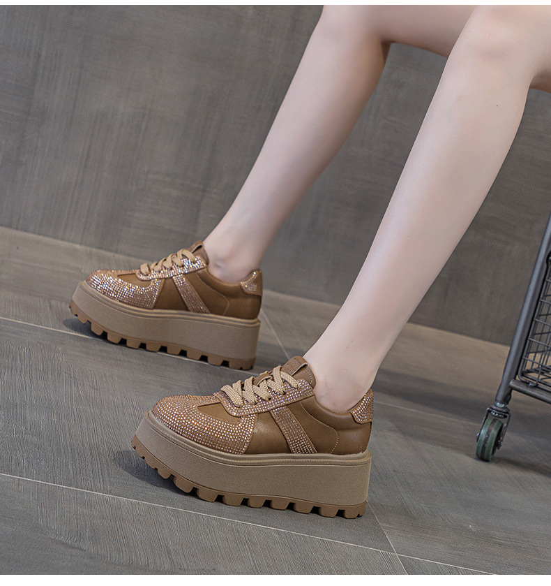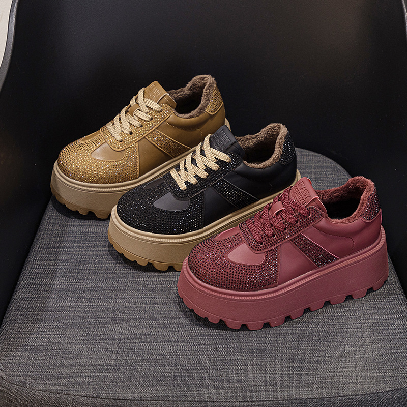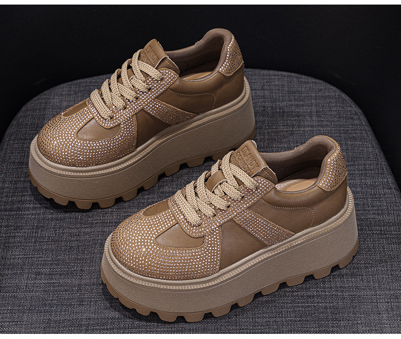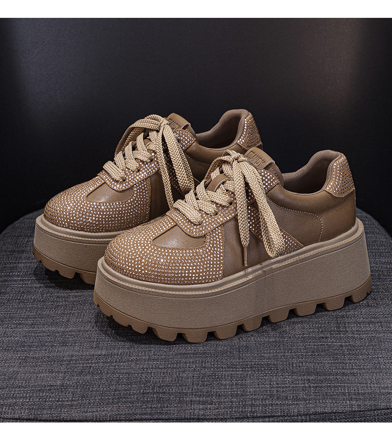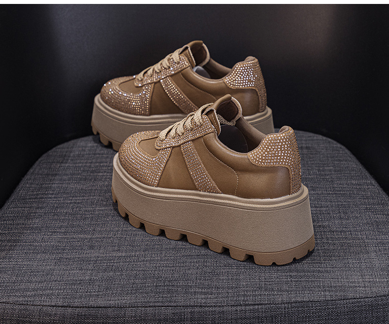 Đôi giày này mang phong cách cổ điển với phần đế được làm dày hơn, giúp tăng chiều cao một cách tinh tế. Chất liệu bề mặt có kết cấu mềm mịn và được điểm xuyến bằng các hạt pha lê lấp lánh tạo điểm nhấn. Kiểu dáng kết hợp giữa nét đẹp xưa cũ và năng động, phù hợp cho nhiều dịp sử dụng. Bạn có thể dễ dàng phối cùng quần jeans hay váy để tạo nên vẻ ngoài cá tính. Chỉ cần vệ sinh bề mặt nhẹ nhàng bằng khăn mềm là đôi giày sẽ luôn sạch đẹp. | Tên sản phẩm: Giày Thể Thao Nữ Gắn Đá Tăng Chiều Cao Đế Cao Hàng Mùa Xuân Thu Đông Phục Cổ Cổ Điển - Giày Dép Nữ | Mã sản phẩm: B3752 - Giá: 1.020.000đ | Mã nhà sản xuất: WEDG-G03Hình ảnh sản phẩm
