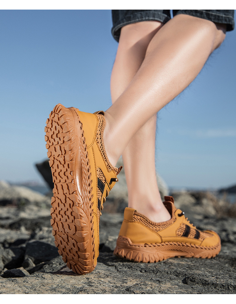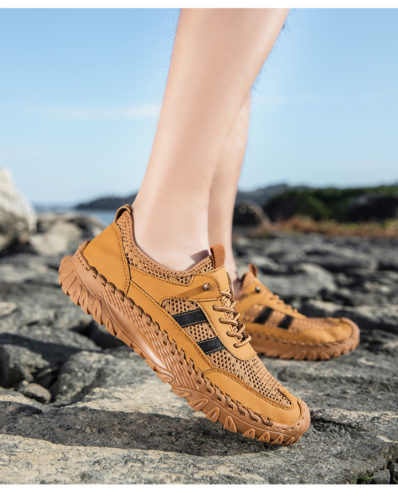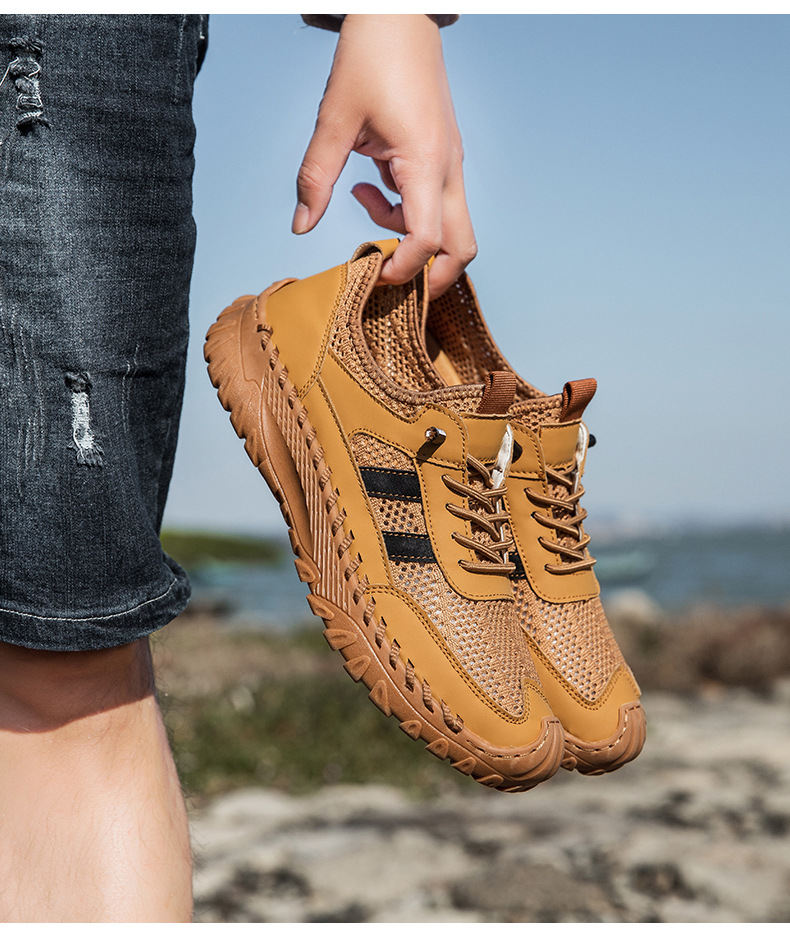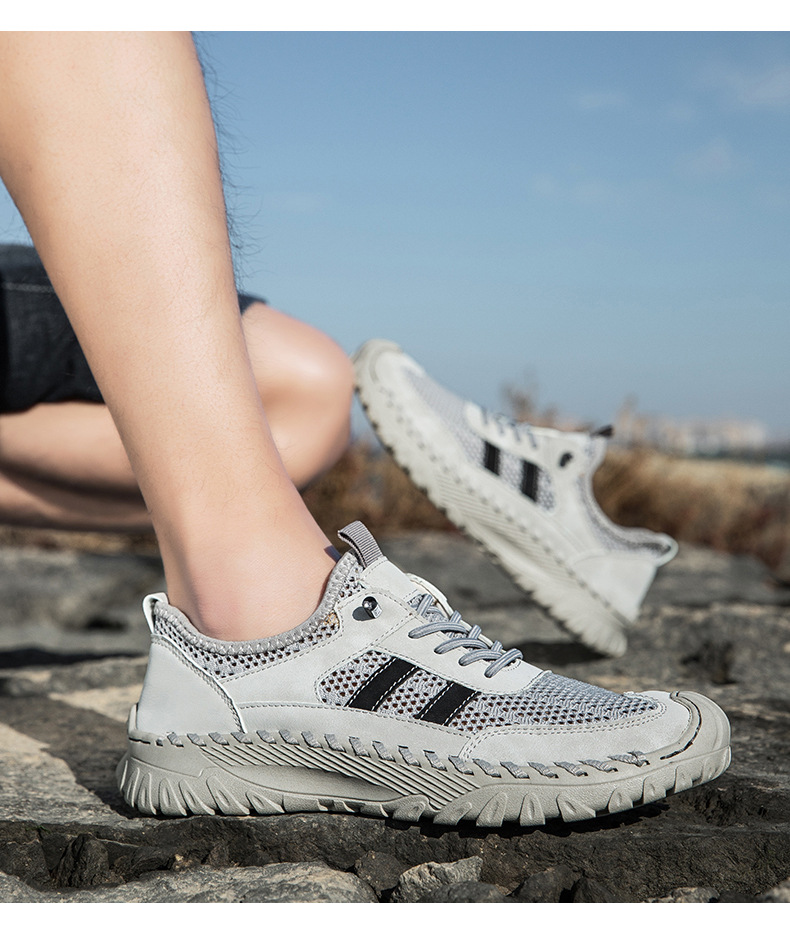 Giày nam thiết kế năng động cho mùa hè, mang đến sự thoải mái suốt ngày dài. Sản phẩm có các cỡ lớn, phần trên kết hợp chất liệu da thật được may tỉ mỉ cùng vải lưới thoáng khí, giúp đôi chân luôn mát mẻ. Kiểu dáng trẻ trung, phù hợp cho nhiều hoạt động hằng ngày và khi vận động nhẹ. Bạn có thể dùng giày này để đi làm, đi chơi hoặc tập thể dục, rất tiện lợi và dễ phối đồ. | Tên sản phẩm: Giày Thể Thao Nam Chất Liệu Da Bò Big Size Ngoại Cỡ Hàng Mùa Hè Phong Cách Hàn Quốc - Giày Dép Nam | Mã sản phẩm: B3758 - Giá: 810.000đ | Mã nhà sản xuất: TADRA-G03Hình ảnh sản phẩm