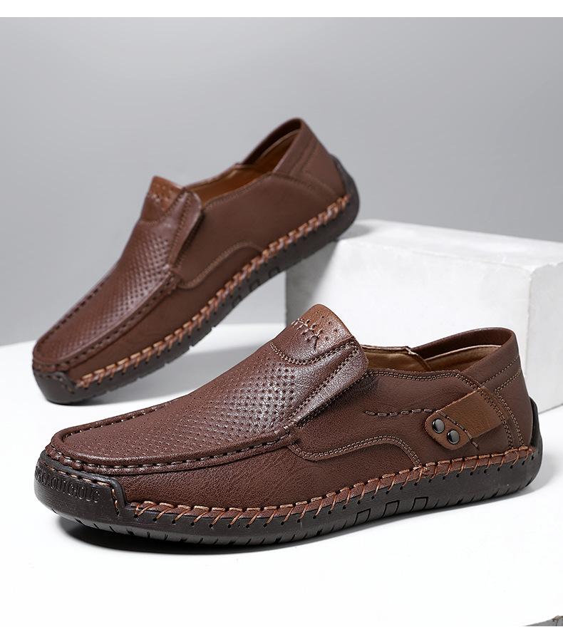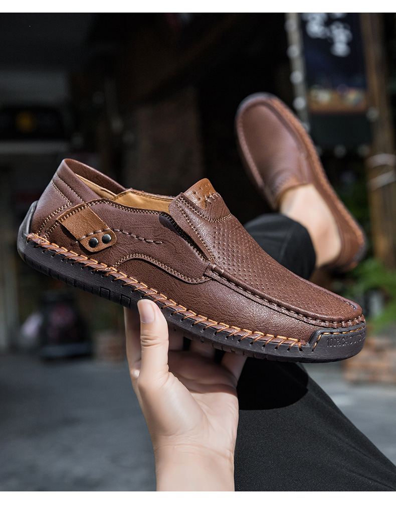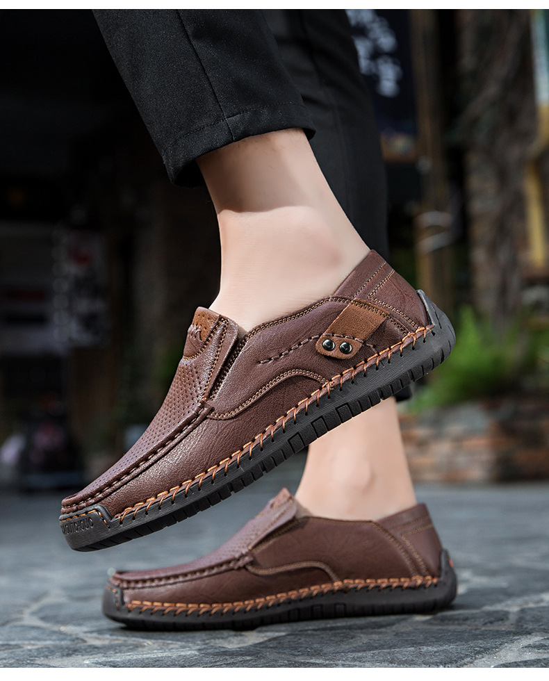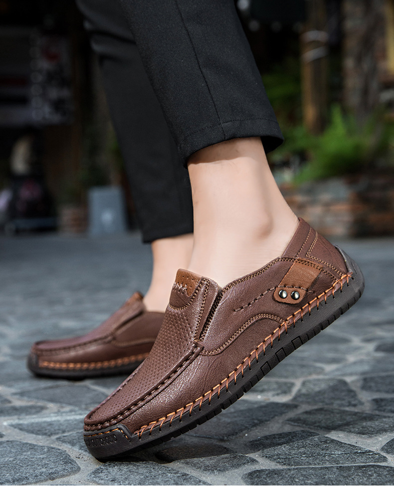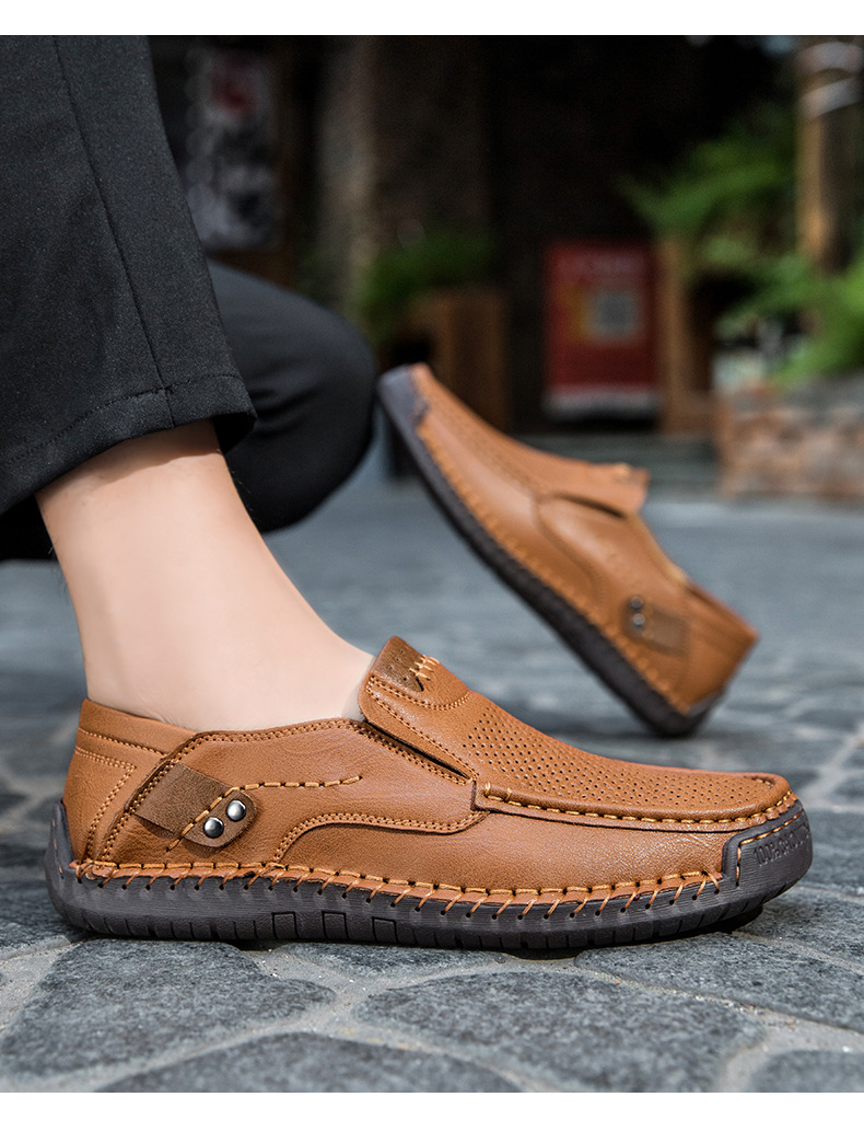Đôi giày nam thiết kế kiểu dáng thoải mái, dễ dàng mang vào và tháo ra. Phần trên có các chi tiết đục lỗ tinh tế giúp đôi chân luôn thông thoáng. Đế bằng phẳng ôm sát mặt đường, phù hợp cho các hoạt động nhẹ nhàng hằng ngày hoặc dạo chơi ngoài trời. Các đường may thủ công tỉ mỉ gia cố chắc chắn từng chi tiết. Sản phẩm có nhiều cỡ lớn dành cho người có bàn chân rộng. | Tên sản phẩm: Giày Da Nam Big Size Ngoại Cỡ - Giày Dép Nam | Mã sản phẩm: B3765 - Giá: 750.000đ | Mã nhà sản xuất: TADRA-G02Hình ảnh sản phẩm