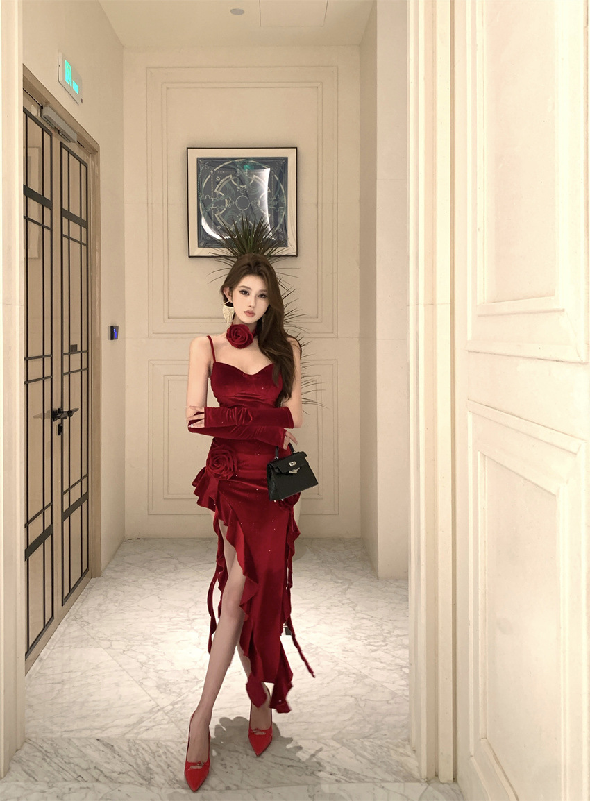 Đầm dáng dài tay ngắn, cổ tròn khoe bờ v gợi cảm. Mặt trước điểm xuyến họa tiết hoa nổi bật, trong khi phía sau được thiết kế khoét lưng tinh tế. Đường cắt xẻ ở phần viền tạo nên phong cách không đối xứng độc đáo. Chất vải mềm mại, ôm nhẹ vào cơ thể, phù hợp cho những buổi gặp mặt hoặc dạo phố. Có thể mặc một mình hoặc kết hợp cùng áo khoác mỏng tùy thích. | Tên sản phẩm: Áo Hai Dây Nữ Dáng Ôm Họa Tiết Hoa Hai Dây Hở Vai Hàng Mùa Xuân Thu Đông - Thời Trang Nữ | Mã sản phẩm: B3779 - Giá: 890.000đ | Mã nhà sản xuất: ZHOUT-G03Hình ảnh sản phẩm