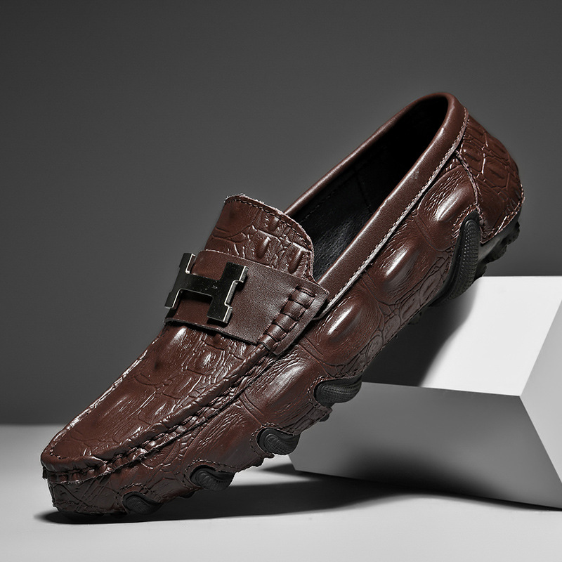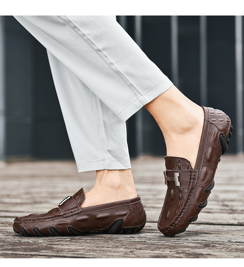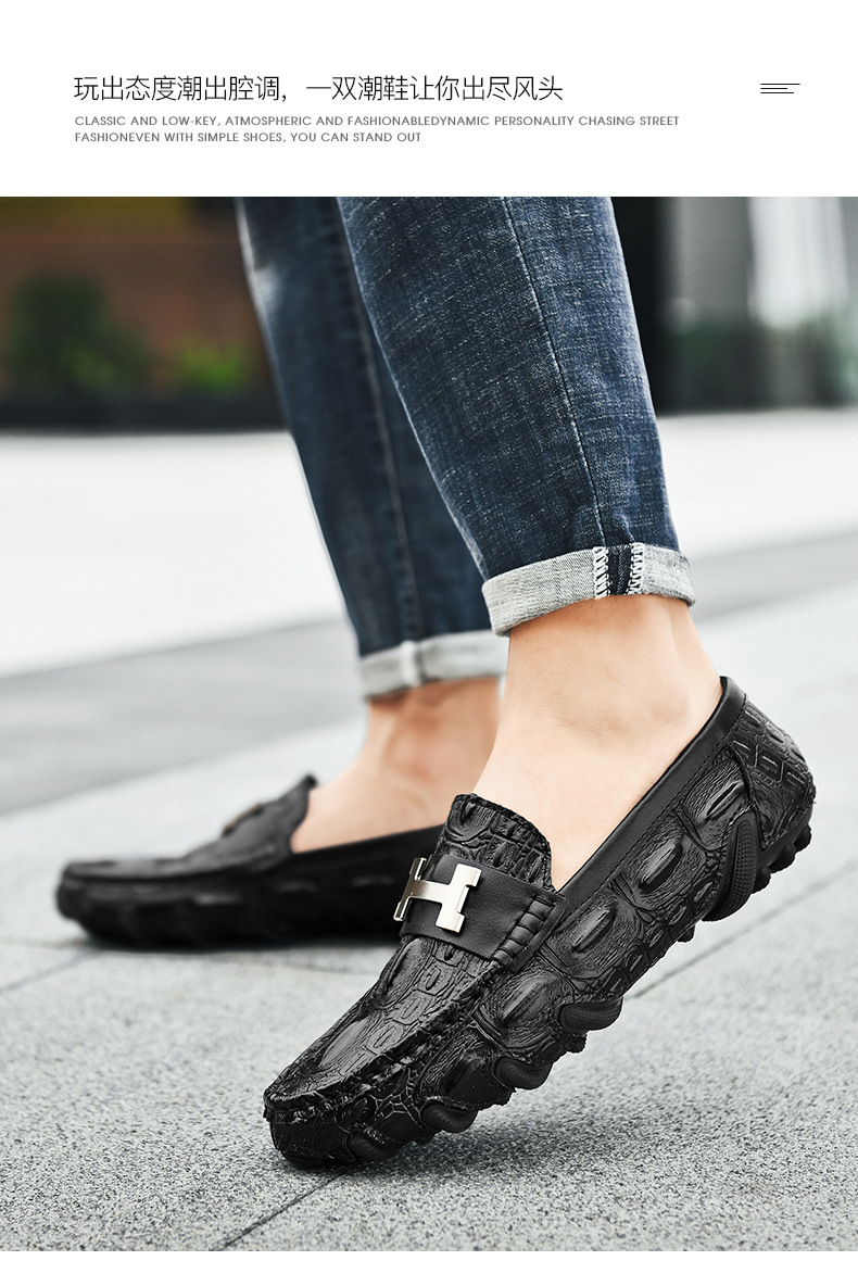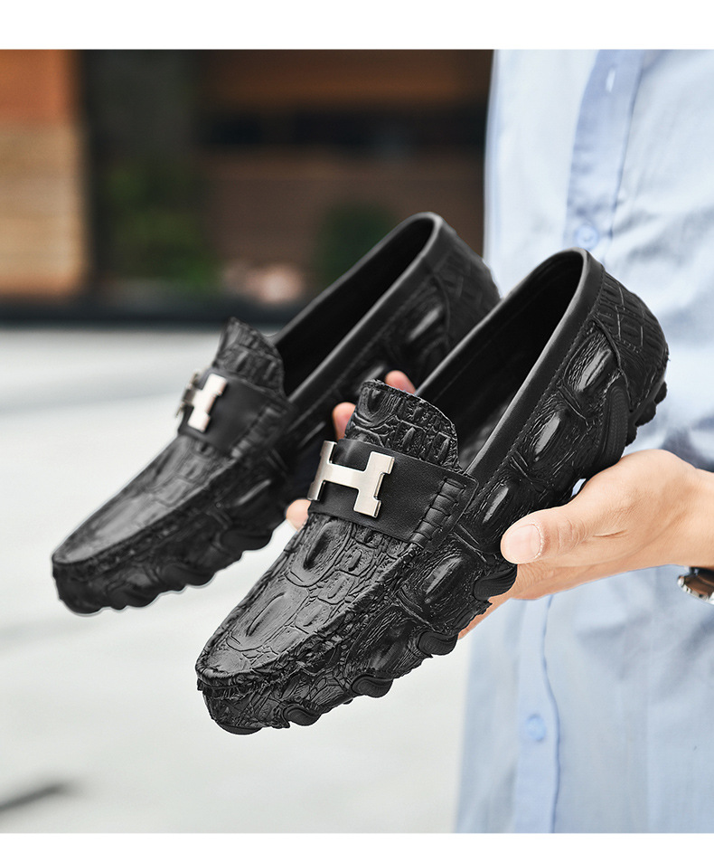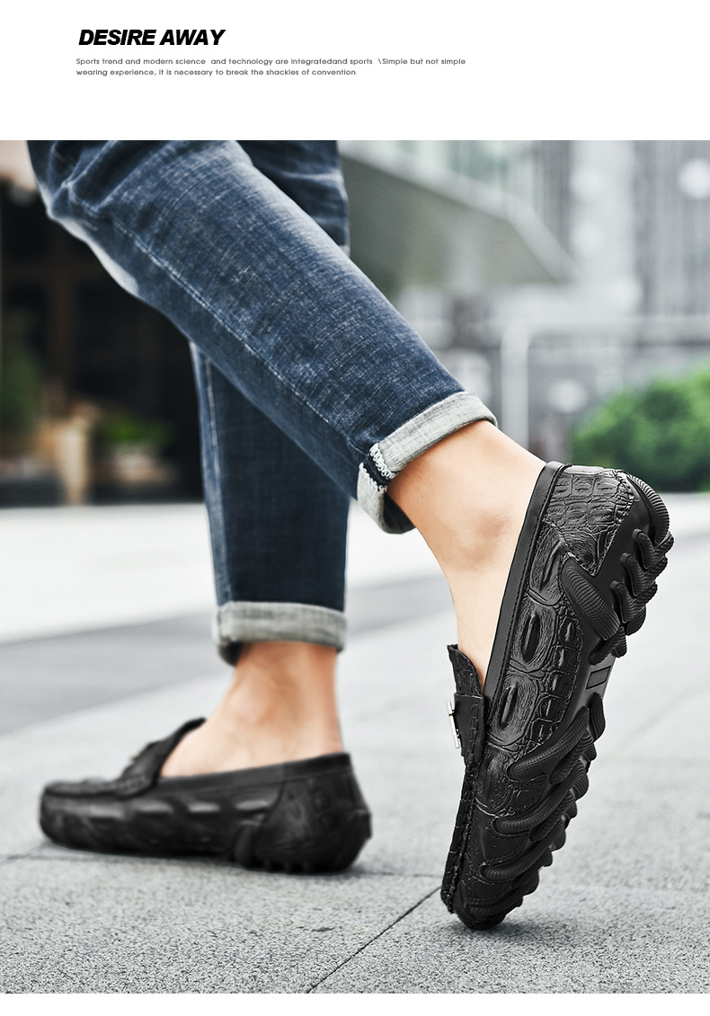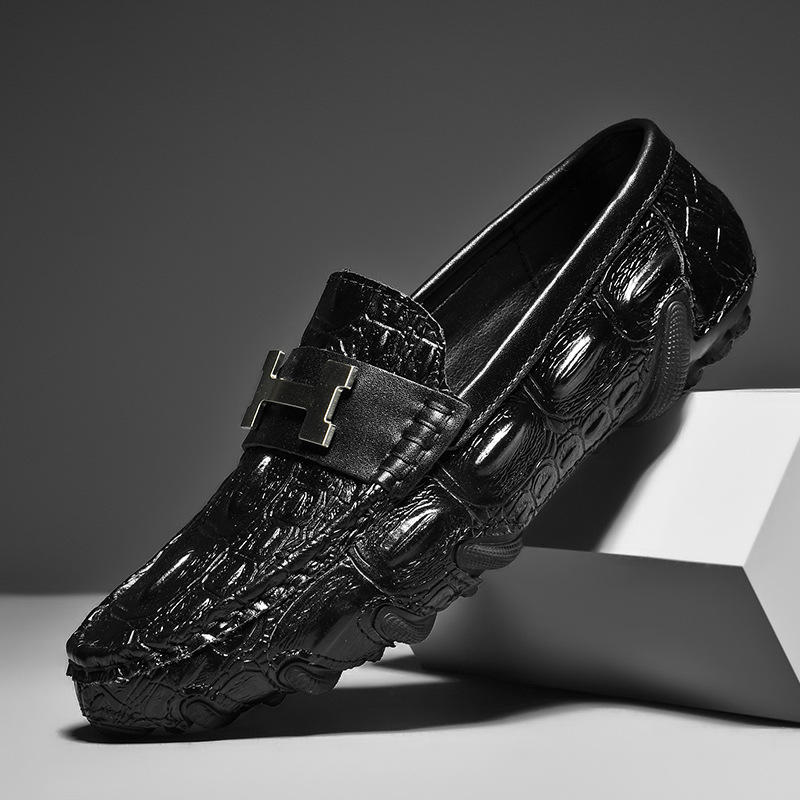 Đôi giày nam này được làm từ chất liệu da thật, bền đẹp với thời gian. Kiểu dáng tám mấu kết hợp họa tiết da cá sấu mang đến vẻ ngoài lịch lãm và khác biệt. Thiết kế không dây tiện lợi, có thể xỏ chân vào và đi ngay, ôm trọn bàn chân một cách thoải mái. Rất phù hợp để đi làm, dạo phố hoặc sử dụng khi lái xe, mang lại sự dễ chịu cho đôi chân trong mọi hoạt động thường ngày. | Tên sản phẩm: Giày Da Nam Chất Liệu Da Bò Vân Da Cá Sấu - Giày Dép Nam | Mã sản phẩm: B3791 - Giá: 870.000đ | Mã nhà sản xuất: TADRA-G03Hình ảnh sản phẩm