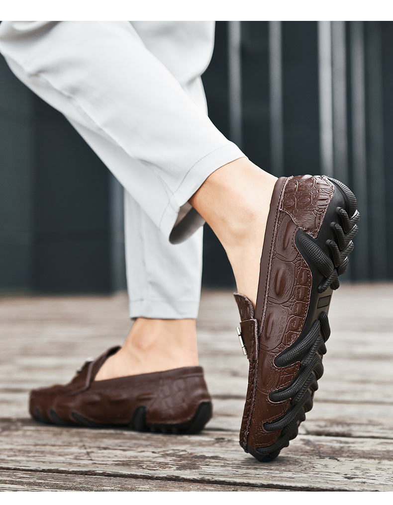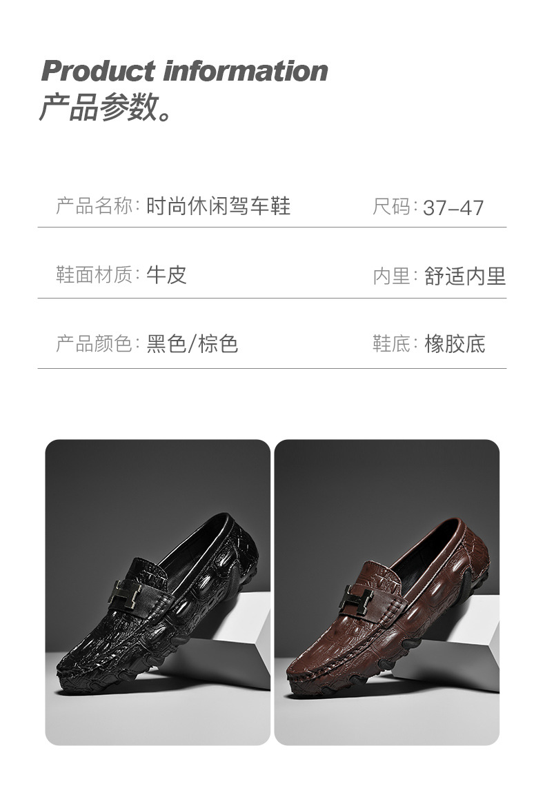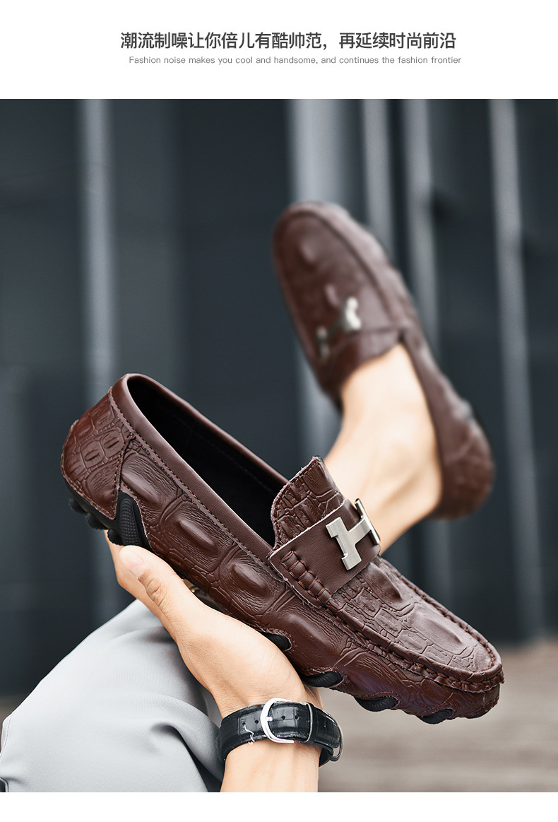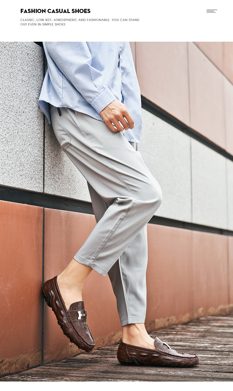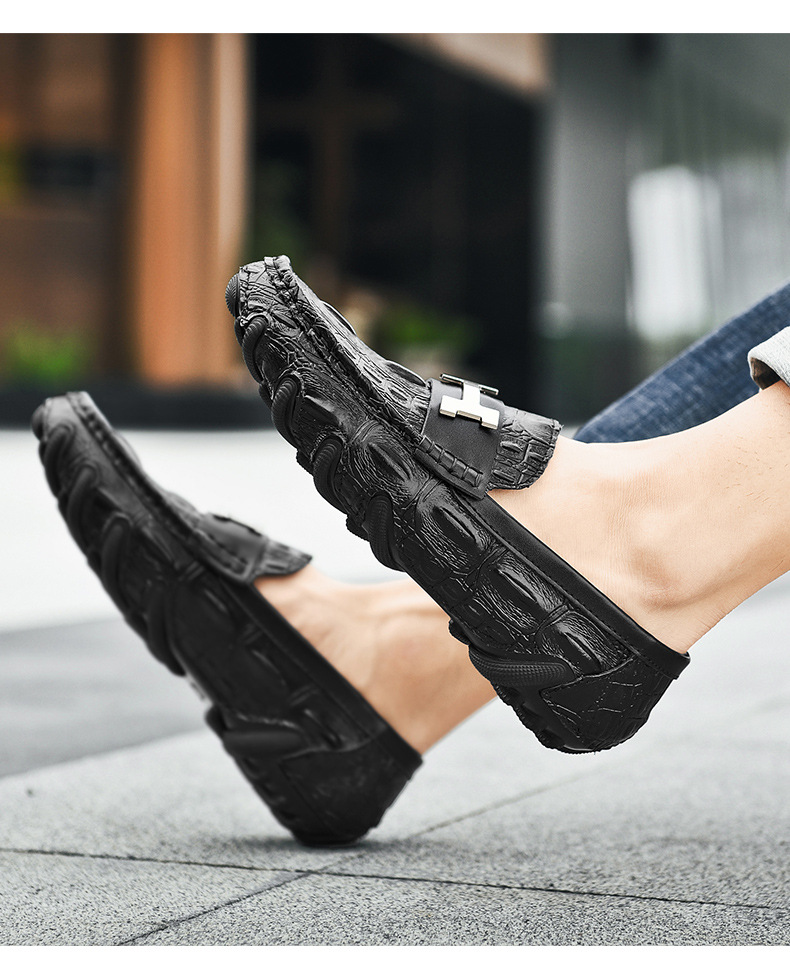 Đôi giày nam này được làm từ chất liệu da thật, bền đẹp với thời gian. Kiểu dáng tám mấu kết hợp họa tiết da cá sấu mang đến vẻ ngoài lịch lãm và khác biệt. Thiết kế không dây tiện lợi, có thể xỏ chân vào và đi ngay, ôm trọn bàn chân một cách thoải mái. Rất phù hợp để đi làm, dạo phố hoặc sử dụng khi lái xe, mang lại sự dễ chịu cho đôi chân trong mọi hoạt động thường ngày. | Tên sản phẩm: Giày Da Nam Chất Liệu Da Bò Vân Da Cá Sấu - Giày Dép Nam | Mã sản phẩm: B3791 - Giá: 870.000đ | Mã nhà sản xuất: TADRA-G03Hình ảnh sản phẩm