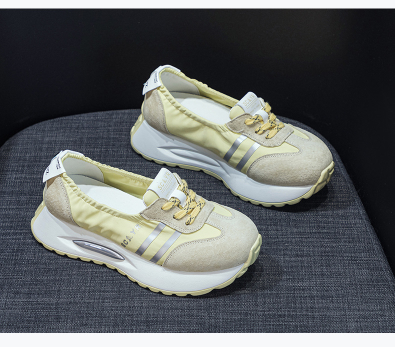 Giày thể thao nữ thiết kế dáng hở mũi, phong cách năng động và thoải mái. Sản phẩm có phần đế dày vừa phải, tạo cảm giác dễ chịu khi di chuyển cả ngày. Chất liệu chính từ da thật, mang lại độ bền và cảm giác êm ái. Kiểu dáng phù hợp để kết hợp với nhiều loại trang phục khác nhau như quần jeans, váy hay quần short. Bạn có thể sử dụng hàng ngày cho các hoạt động đi làm, dạo phố hay gặp gỡ bạn bè. | Tên sản phẩm: Giày Thể Thao Nữ Chất Liệu Da Bò Đế Cao Hàng Mùa Xuân Thu Đông - Giày Dép Nữ | Mã sản phẩm: B3795 - Giá: 980.000đ | Mã nhà sản xuất: WEDG-G03Hình ảnh sản phẩm
