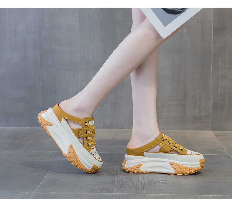 Giày thể thao kết hợp mũi hở thoáng mát, mang đến sự dễ chịu như đi dép nhưng vẫn giữ được kiểu dáng năng động. Sản phẩm có phần đế được thiết kế dày hơn một chút, tạo dáng đứng và hỗ trợ chiều cao một cách tự nhiên. Kiểu dáng phù hợp cho các hoạt động thường ngày, đi dạo hoặc gặp gỡ bạn bè. Bạn chỉ cần xỏ chân vào và điều chỉnh dây giày hoặc khóa dán cho vừa vặn là có thể sử dụng ngay. | Tên sản phẩm: Giày Dép Lê Nữ Tăng Chiều Cao Đế Cao - Giày Dép Nữ | Mã sản phẩm: B3801 - Giá: 990.000đ | Mã nhà sản xuất: WEDG-G03Hình ảnh sản phẩm