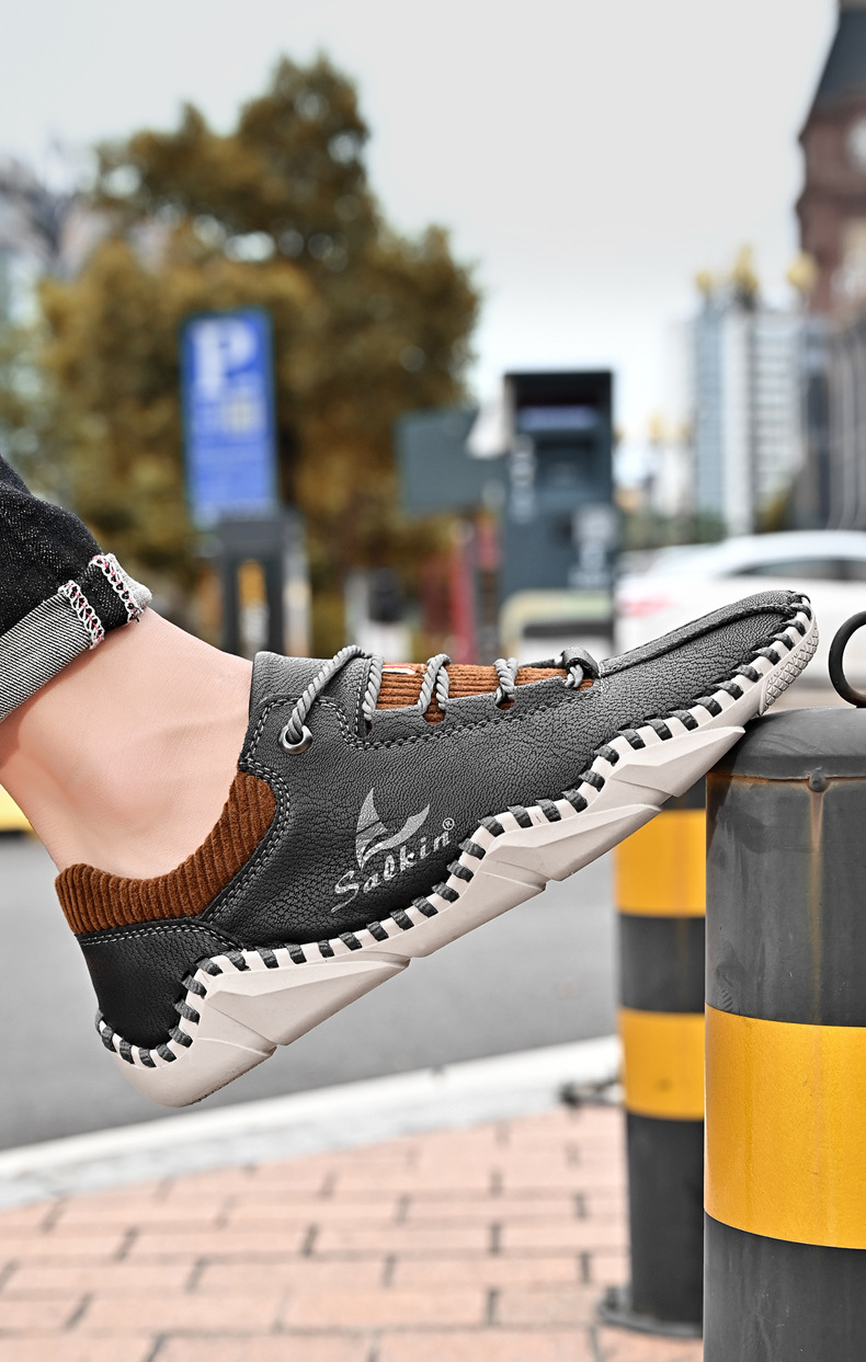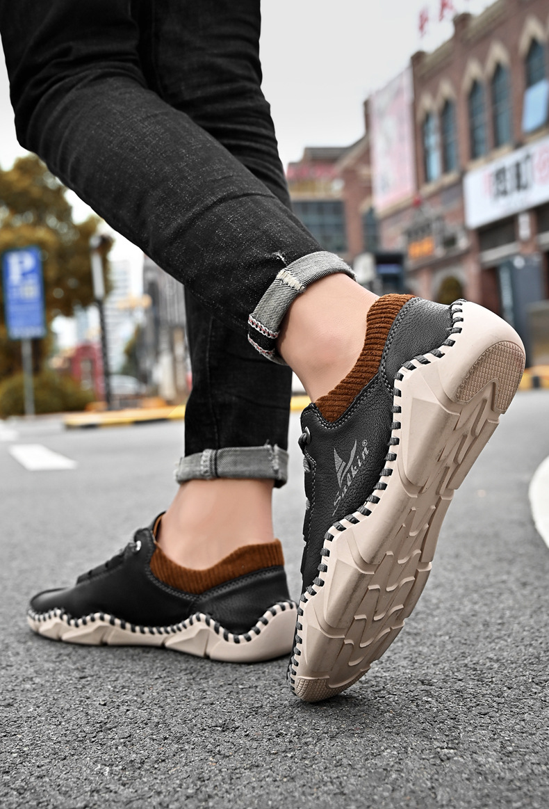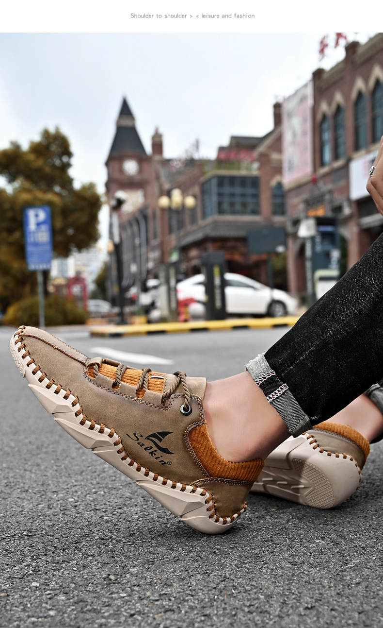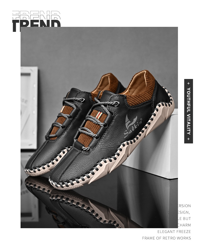 Giày da dành cho lúc thư giãn, kiểu dáng mới cho mùa thu. Sản phẩm được làm thủ công tỉ mỉ với đường chỉ khâu chắc chắn, có dây buộc điều chỉnh ôm chân. Đế giày được thiết kế thoáng khí, mang lại cảm giác dễ chịu. Bạn có thể xỏ chân vào và buộc dây một cách nhanh chóng, phù hợp cho nhiều dịp sử dụng hằng ngày. Có đủ các cỡ giày lớn để lựa chọn. | Tên sản phẩm: Giày Da Nam Big Size Ngoại Cỡ Thoáng Khí Hàng Mùa Xuân Thu Đông - Giày Dép Nam | Mã sản phẩm: B3856 - Giá: 610.000đ | Mã nhà sản xuất: TADRA-G02Hình ảnh sản phẩm
