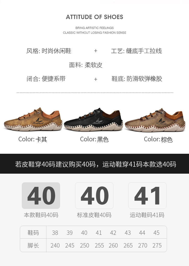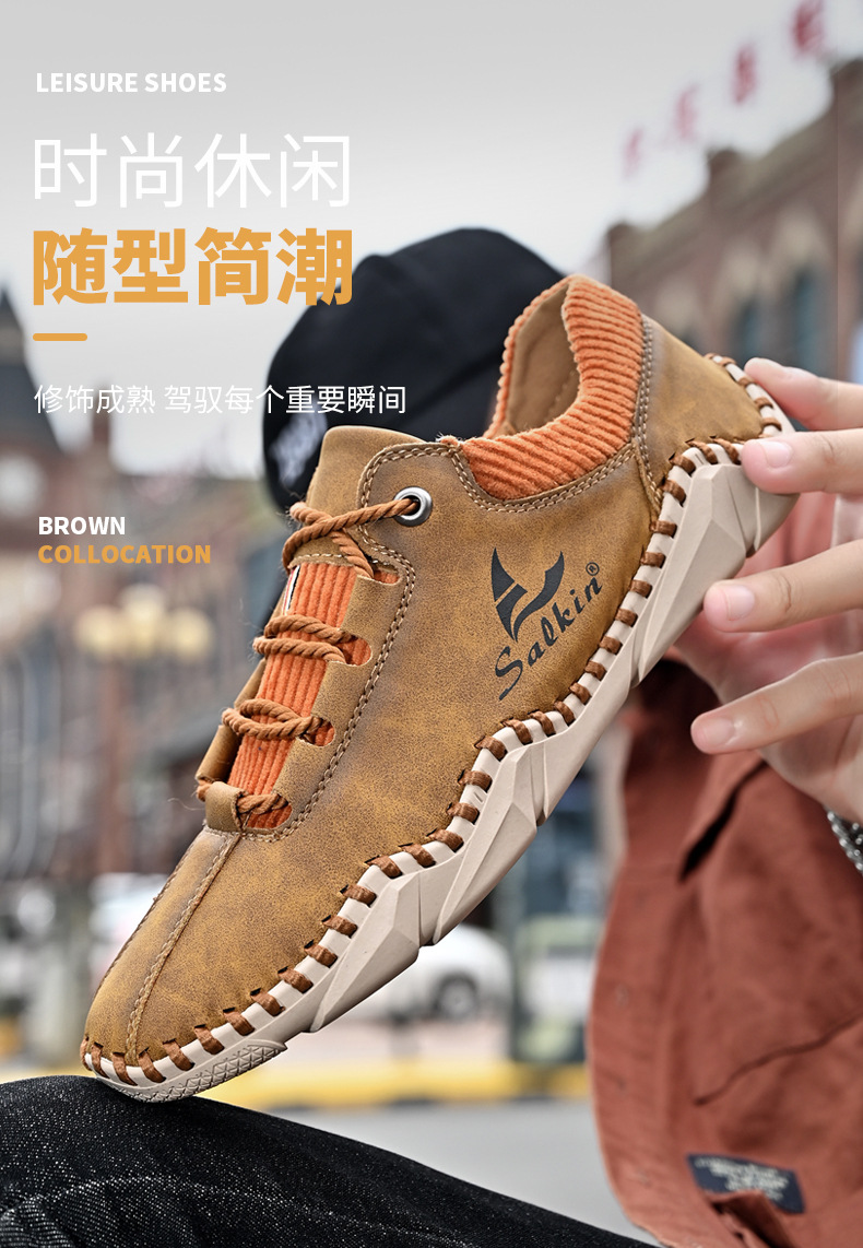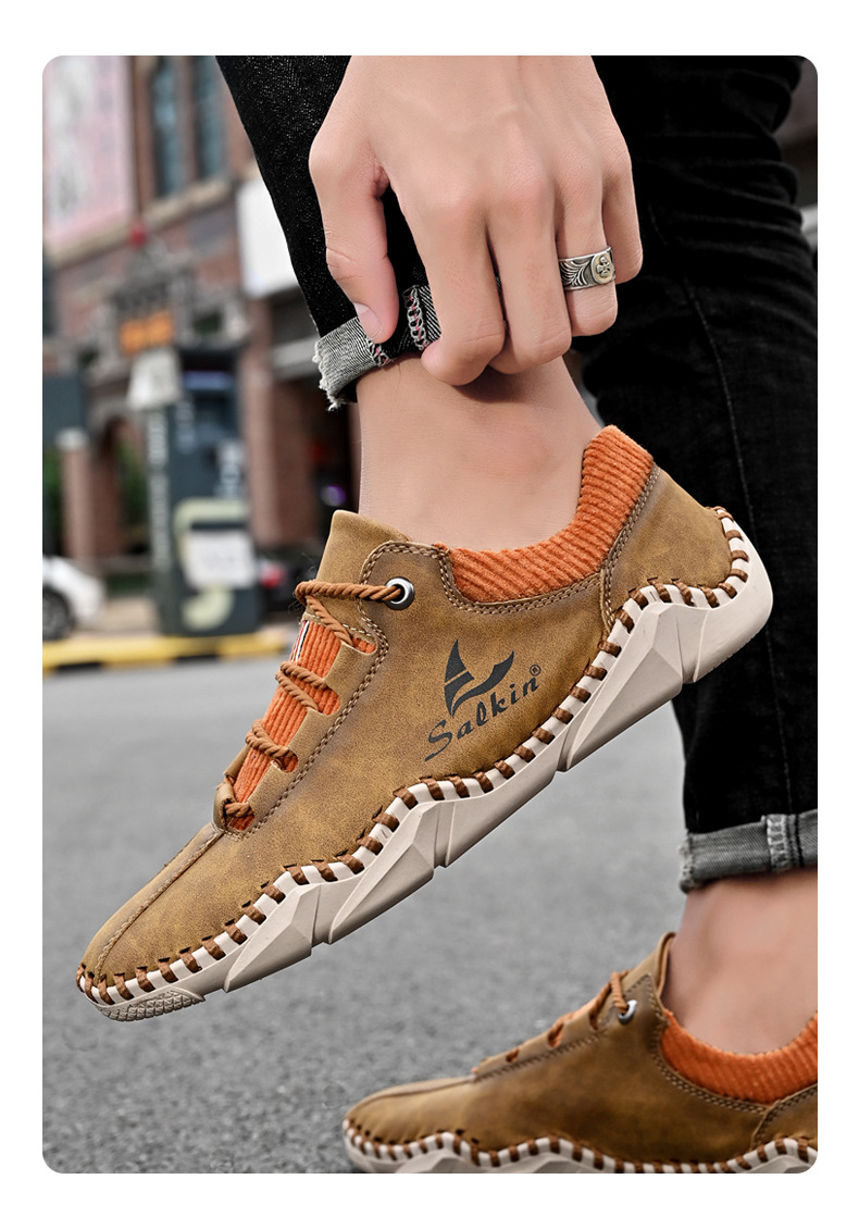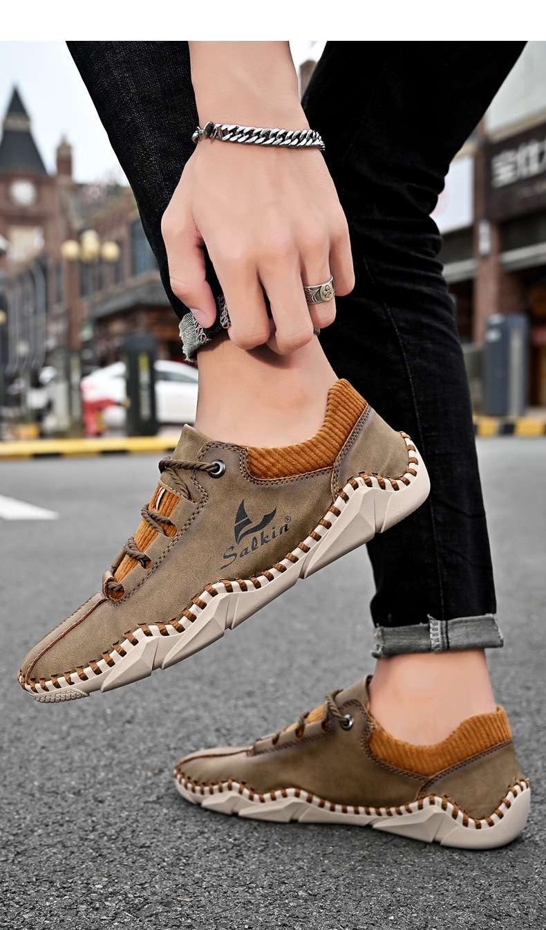 Giày da dành cho lúc thư giãn, kiểu dáng mới cho mùa thu. Sản phẩm được làm thủ công tỉ mỉ với đường chỉ khâu chắc chắn, có dây buộc điều chỉnh ôm chân. Đế giày được thiết kế thoáng khí, mang lại cảm giác dễ chịu. Bạn có thể xỏ chân vào và buộc dây một cách nhanh chóng, phù hợp cho nhiều dịp sử dụng hằng ngày. Có đủ các cỡ giày lớn để lựa chọn. | Tên sản phẩm: Giày Da Nam Big Size Ngoại Cỡ Thoáng Khí Hàng Mùa Xuân Thu Đông - Giày Dép Nam | Mã sản phẩm: B3856 - Giá: 610.000đ | Mã nhà sản xuất: TADRA-G02Hình ảnh sản phẩm