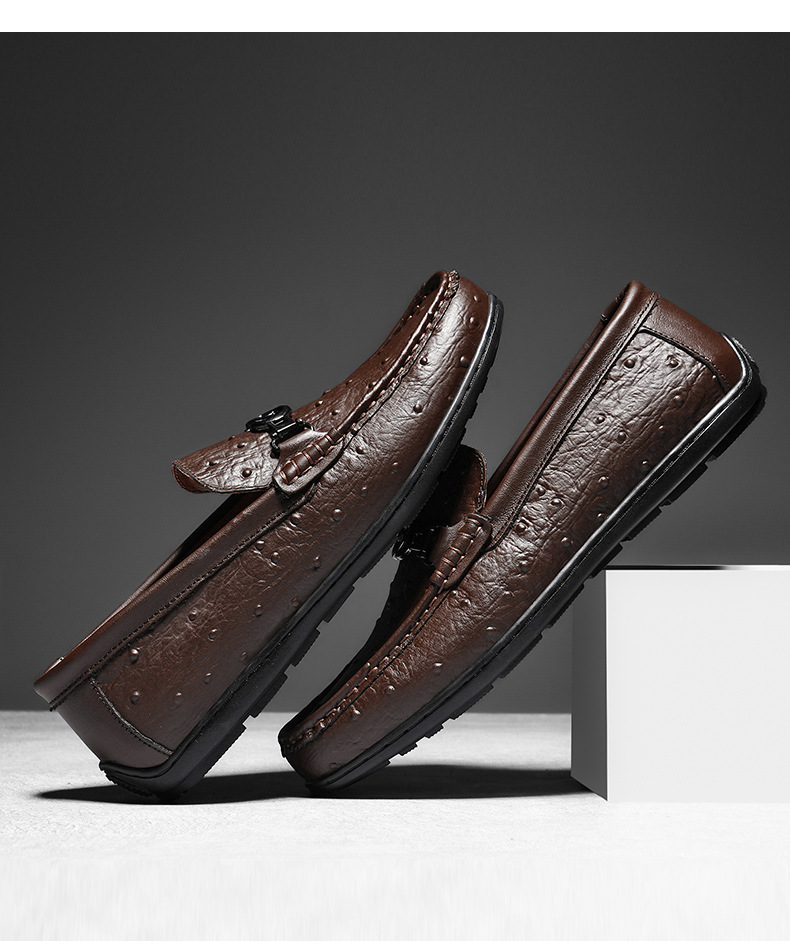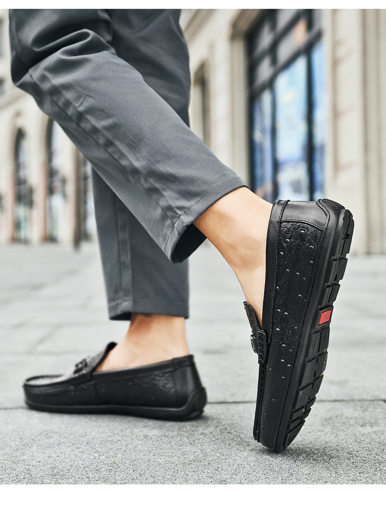 Giày nam thiết kế kiểu châu Âu, phù hợp cho nhiều dịp thư giãn hay khi lái xe. Sản phẩm được làm từ chất liệu da thật tự nhiên, mang đến cảm giác thoải mái và ôm chân nhẹ nhàng. Đế giày mềm mại với các hạt massage giúp bước chân thêm dễ chịu. Kiểu dáng không cần buộc dây, rất tiện lợi để mang vào hoặc tháo ra một cách nhanh chóng. Bạn có thể sử dụng hằng ngày để tạo phong cách đơn giản mà lịch sự. | Tên sản phẩm: Giày Da Nam Chất Liệu Da Bò - Giày Dép Nam | Mã sản phẩm: B3872 - Giá: 790.000đ | Mã nhà sản xuất: TADRA-G02Hình ảnh sản phẩm