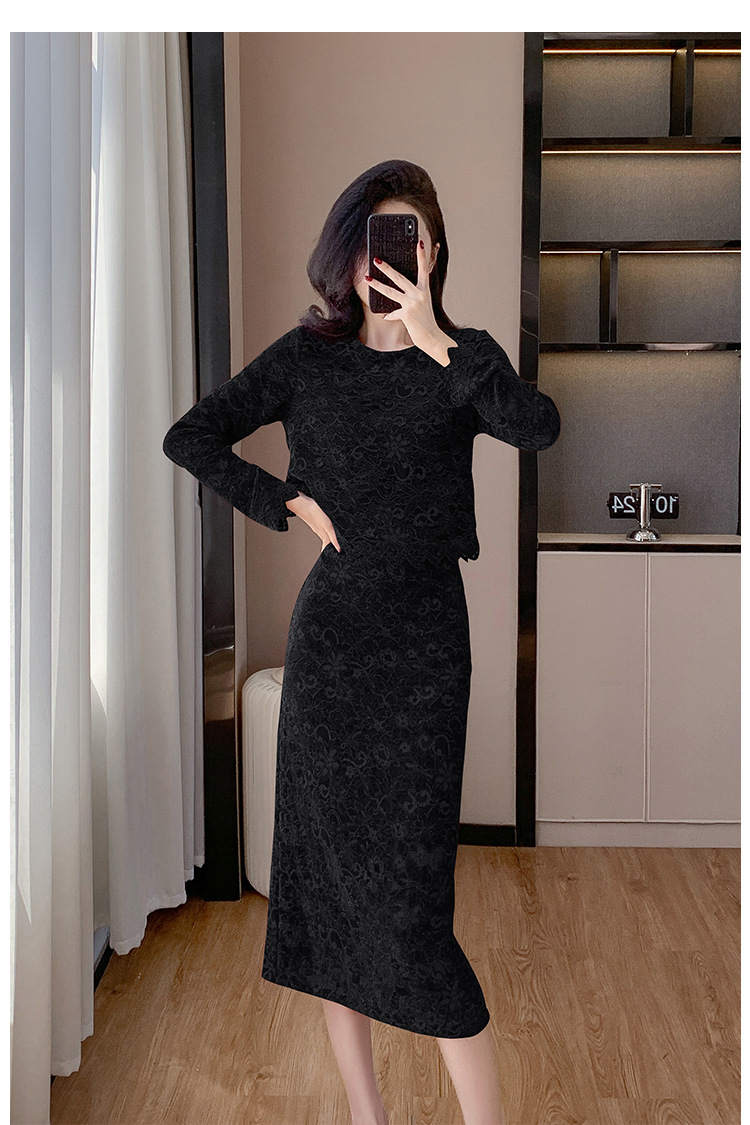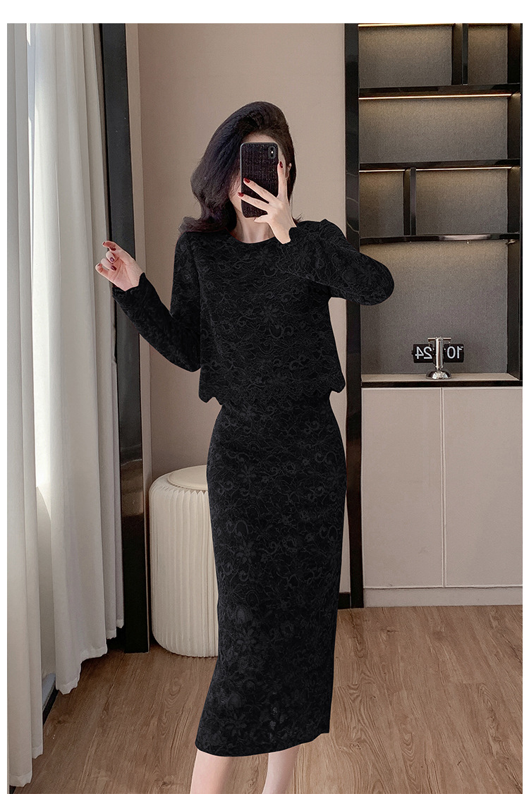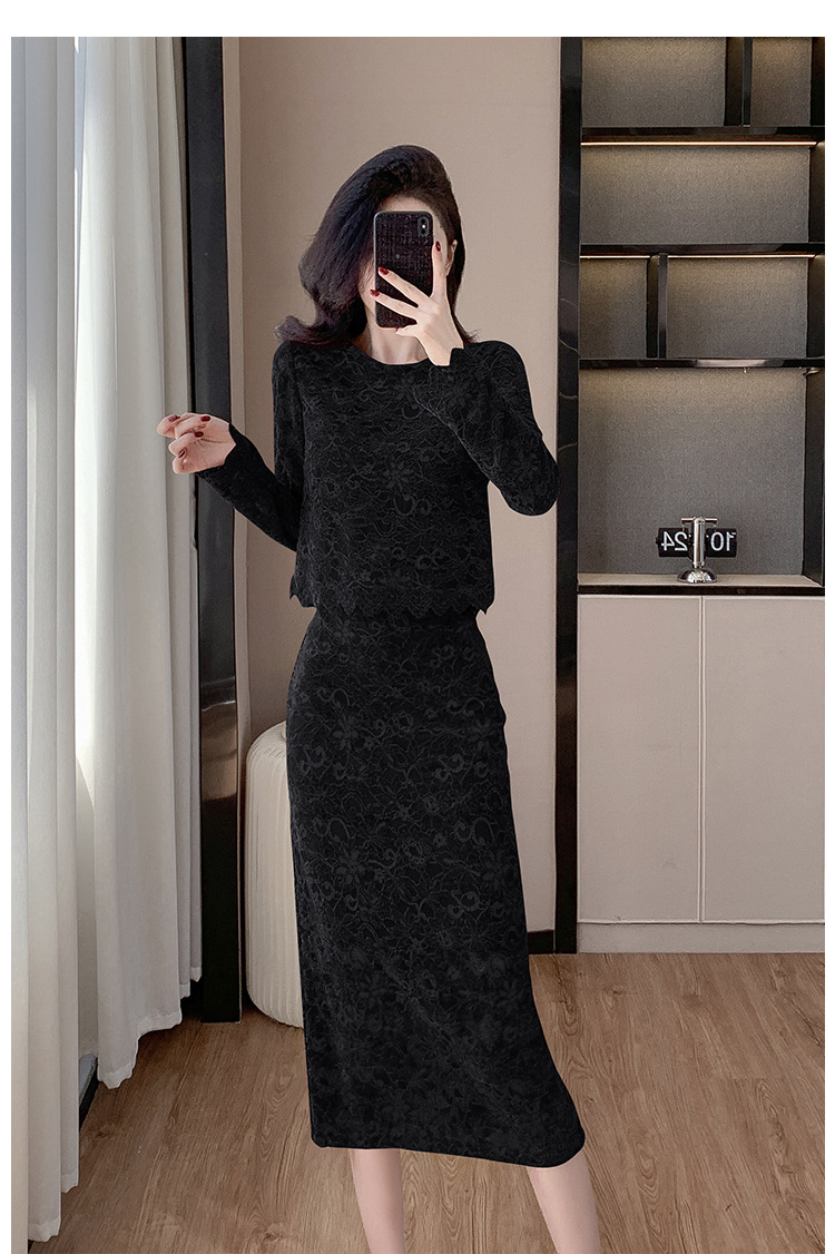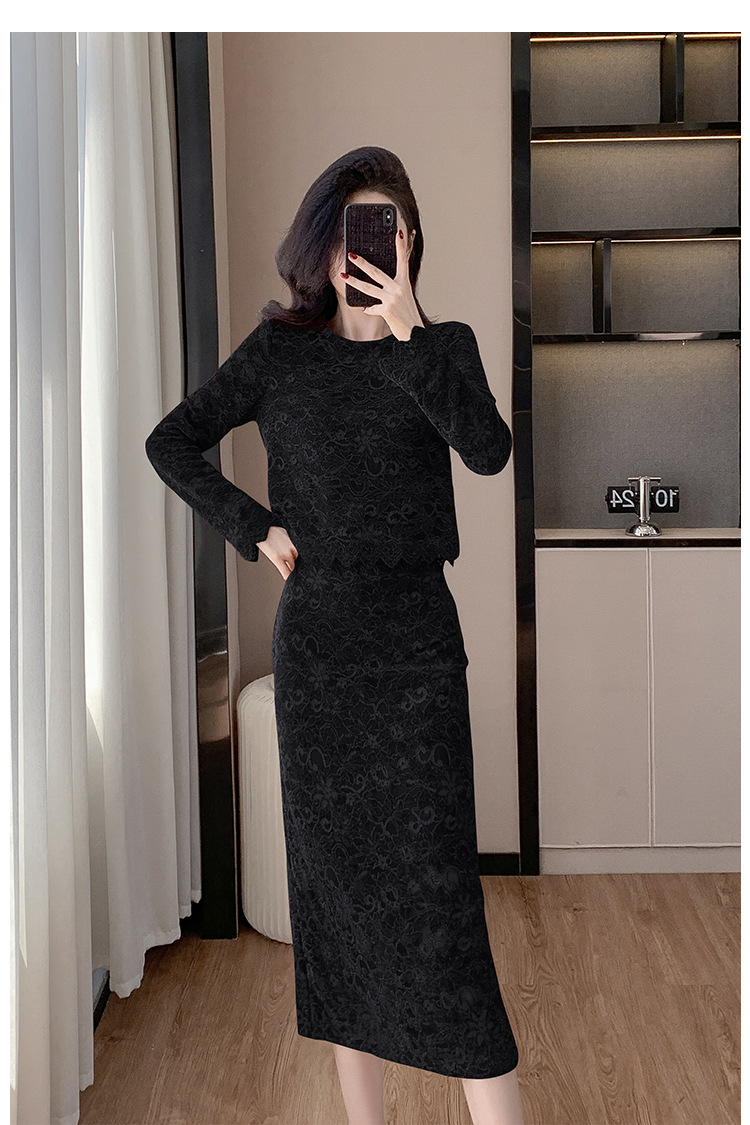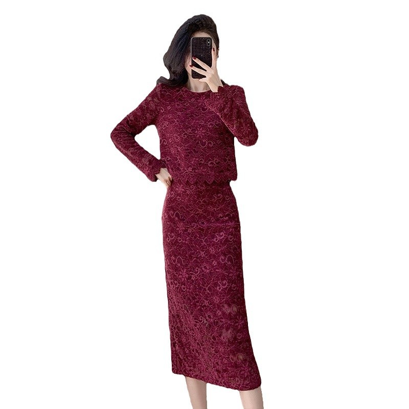 Bộ trang phục hai mảnh này mang phong cách thời trang châu Âu. Áo được đan móc tinh tế cùng họa tiết ren, ôm vừa vặn cơ thể. Chân váy dáng dài kết hợp hài hòa, tạo nên tổng thể thanh lịch và nữ tính. Chất vải mềm mại mang lại cảm giác dễ chịu khi mặc. Sản phẩm phù hợp cho nhiều dịp đi chơi, gặp gỡ. Có thể phối cùng giày cao gót và túi xách nhỏ để hoàn thiện bộ trang phục. | Tên sản phẩm: Đồ Bộ Nữ Chất Liệu Ren Dáng Ôm Cả Bộ 2 Món Họa Tiết Hoa Hàng Mùa Xuân Thu Đông - Thời Trang Nữ | Mã sản phẩm: B3883 - Giá: 1.020.000đ | Mã nhà sản xuất: ZHOUT-G03Hình ảnh sản phẩm