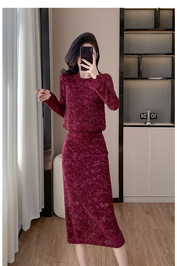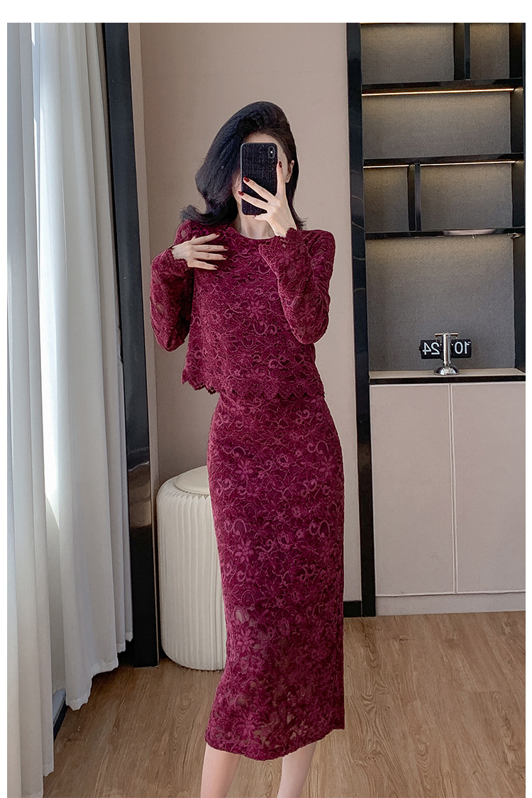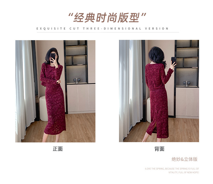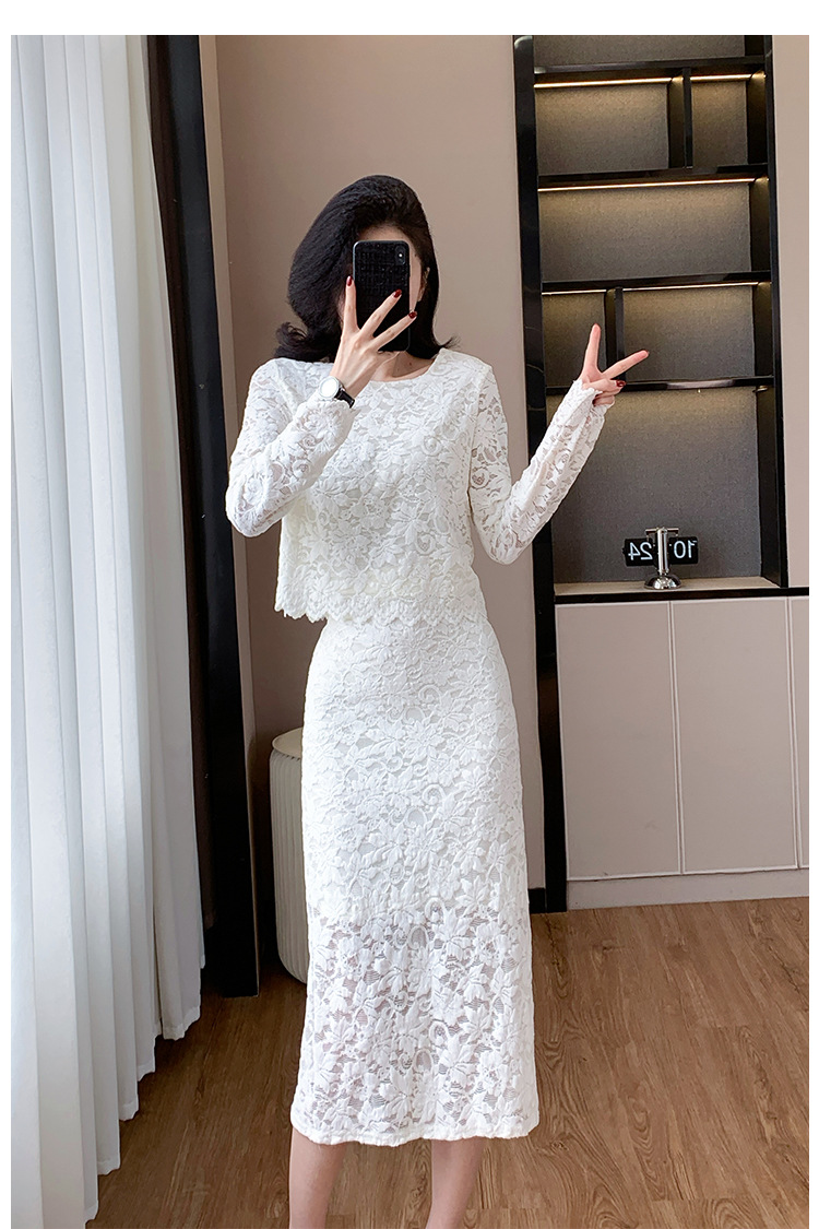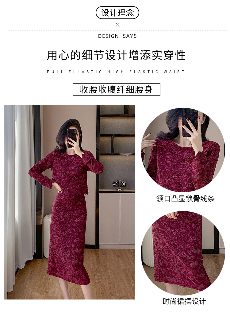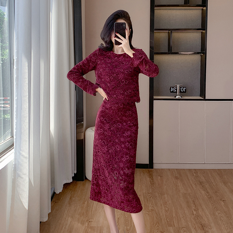 Bộ trang phục hai mảnh này mang phong cách thời trang châu Âu. Áo được đan móc tinh tế cùng họa tiết ren, ôm vừa vặn cơ thể. Chân váy dáng dài kết hợp hài hòa, tạo nên tổng thể thanh lịch và nữ tính. Chất vải mềm mại mang lại cảm giác dễ chịu khi mặc. Sản phẩm phù hợp cho nhiều dịp đi chơi, gặp gỡ. Có thể phối cùng giày cao gót và túi xách nhỏ để hoàn thiện bộ trang phục. | Tên sản phẩm: Đồ Bộ Nữ Chất Liệu Ren Dáng Ôm Cả Bộ 2 Món Họa Tiết Hoa Hàng Mùa Xuân Thu Đông - Thời Trang Nữ | Mã sản phẩm: B3883 - Giá: 1.020.000đ | Mã nhà sản xuất: ZHOUT-G03Hình ảnh sản phẩm
