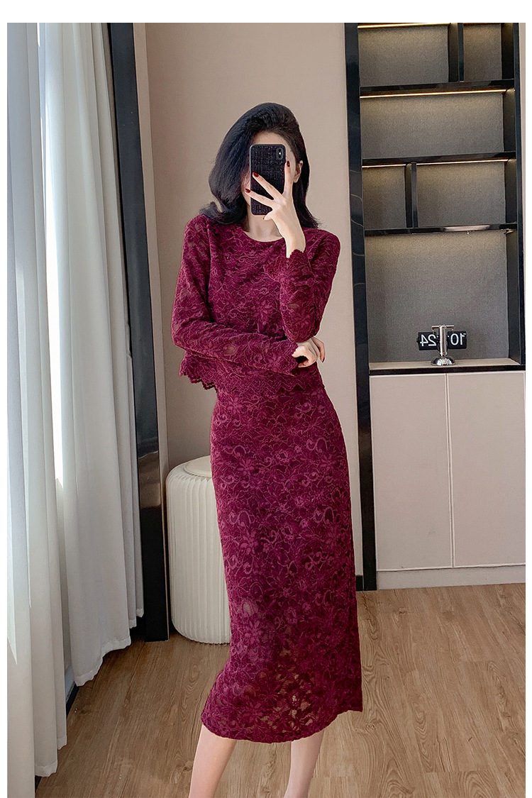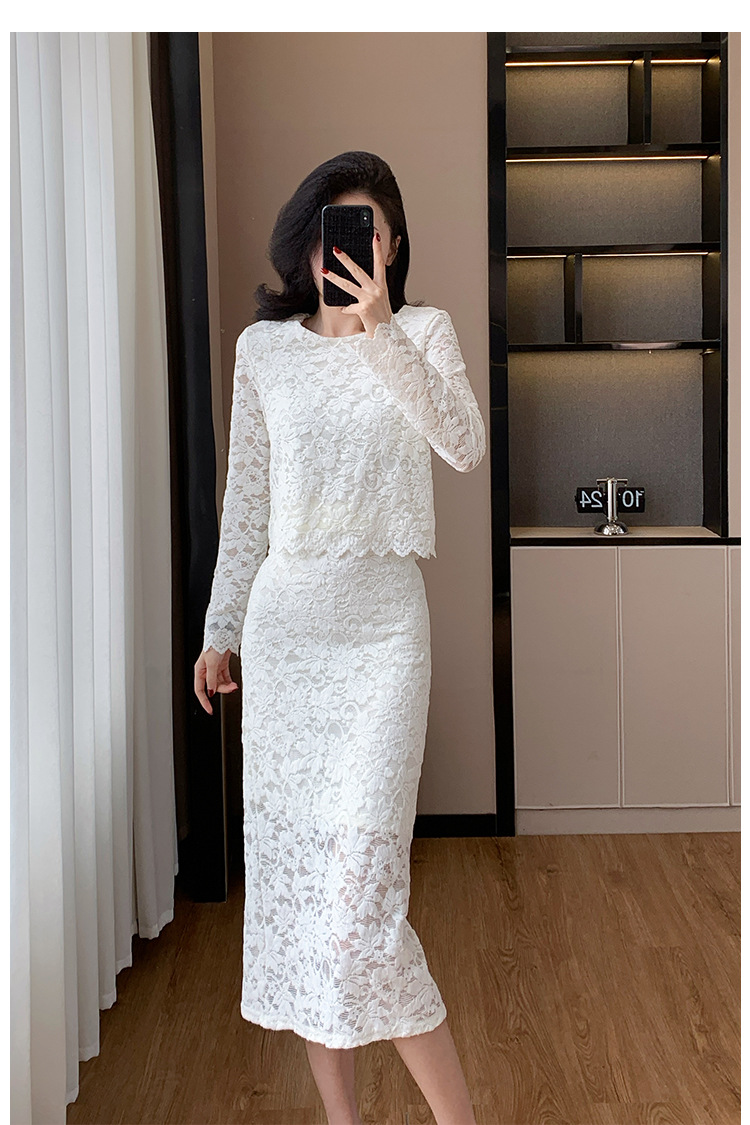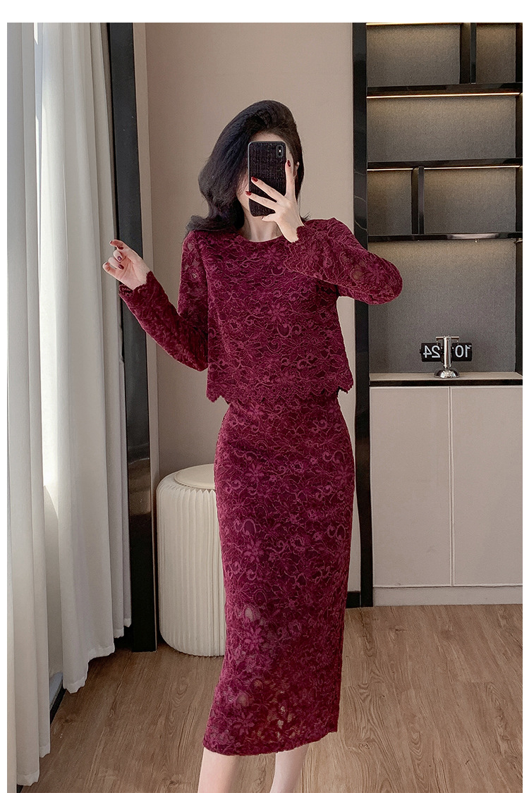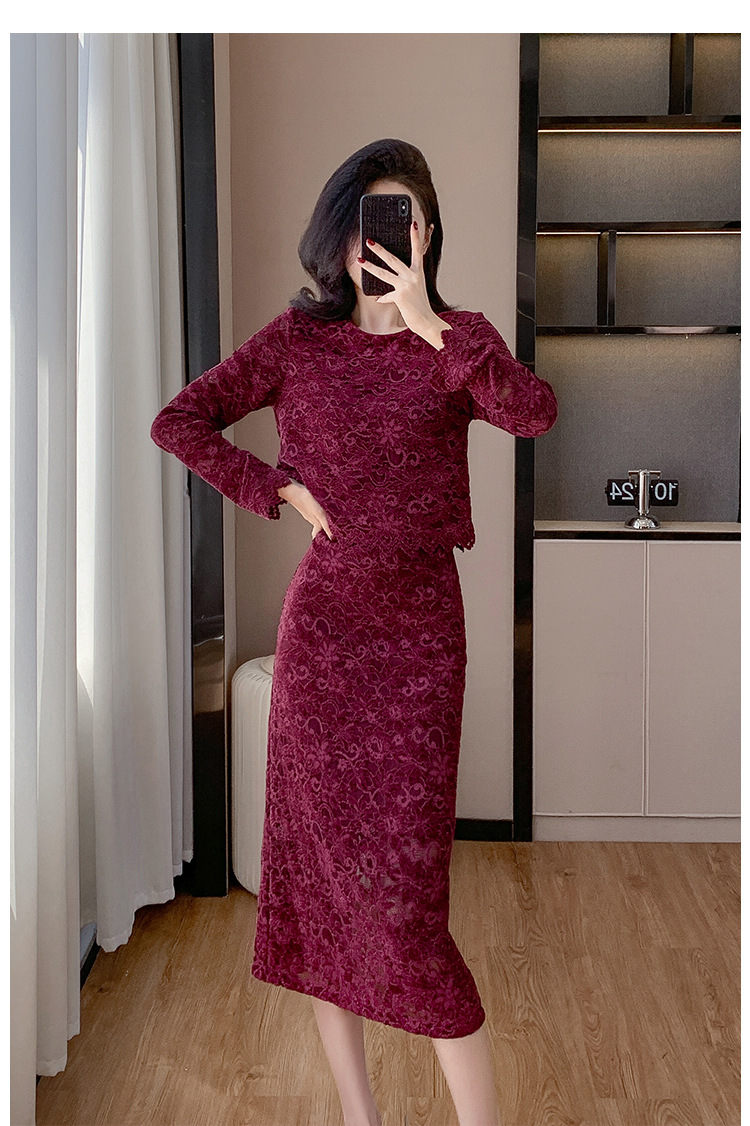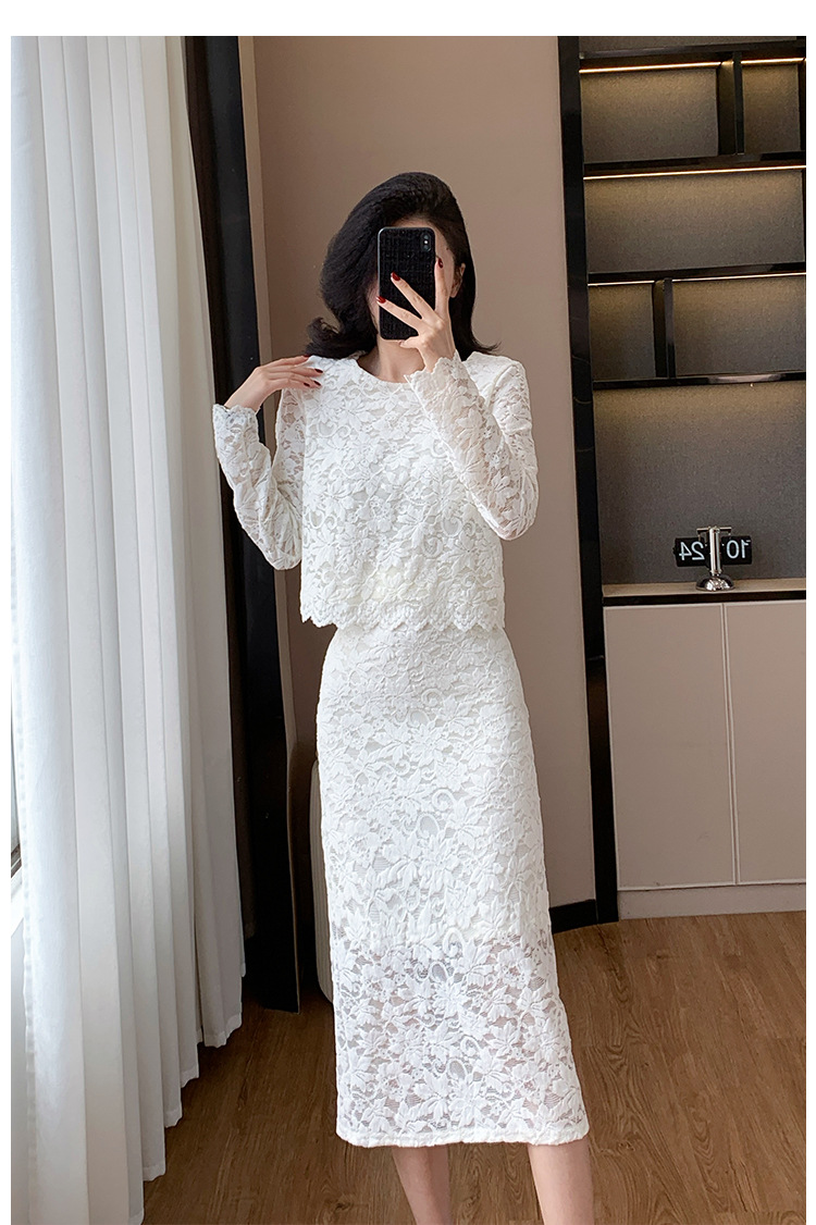 Bộ trang phục hai mảnh này mang phong cách thời trang châu Âu. Áo được đan móc tinh tế cùng họa tiết ren, ôm vừa vặn cơ thể. Chân váy dáng dài kết hợp hài hòa, tạo nên tổng thể thanh lịch và nữ tính. Chất vải mềm mại mang lại cảm giác dễ chịu khi mặc. Sản phẩm phù hợp cho nhiều dịp đi chơi, gặp gỡ. Có thể phối cùng giày cao gót và túi xách nhỏ để hoàn thiện bộ trang phục. | Tên sản phẩm: Đồ Bộ Nữ Chất Liệu Ren Dáng Ôm Cả Bộ 2 Món Họa Tiết Hoa Hàng Mùa Xuân Thu Đông - Thời Trang Nữ | Mã sản phẩm: B3883 - Giá: 1.020.000đ | Mã nhà sản xuất: ZHOUT-G03Hình ảnh sản phẩm