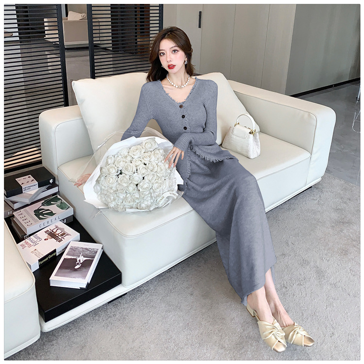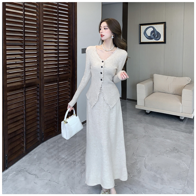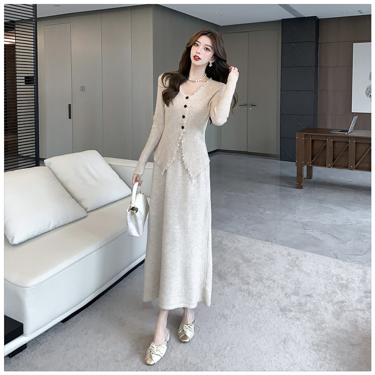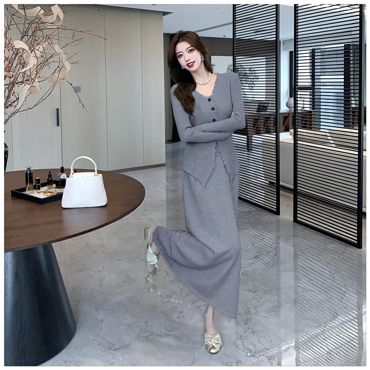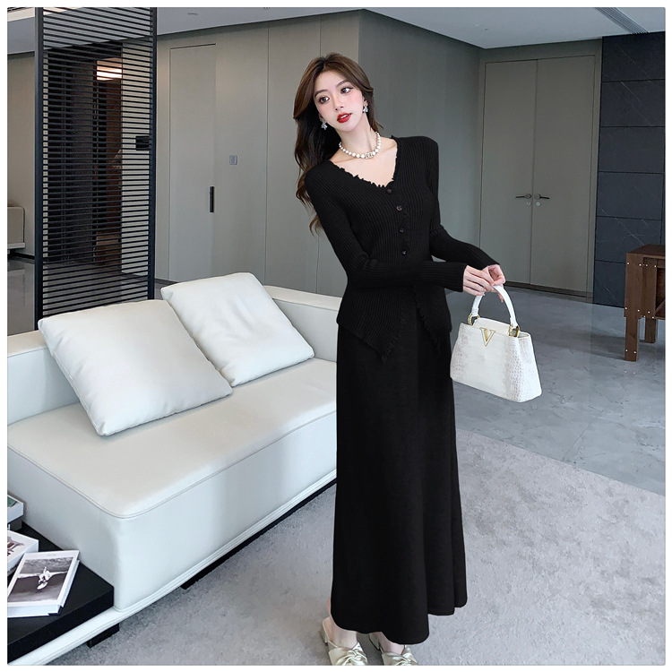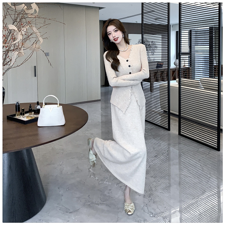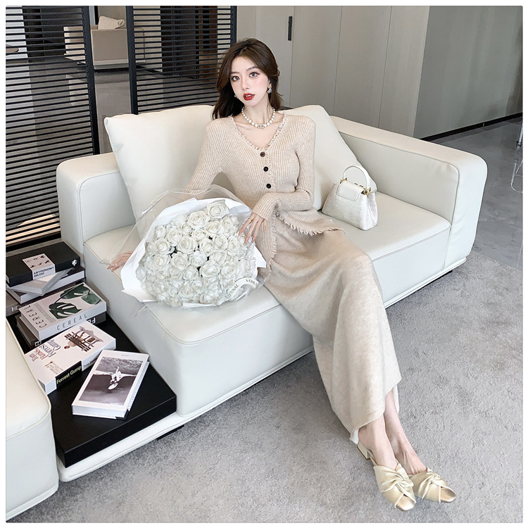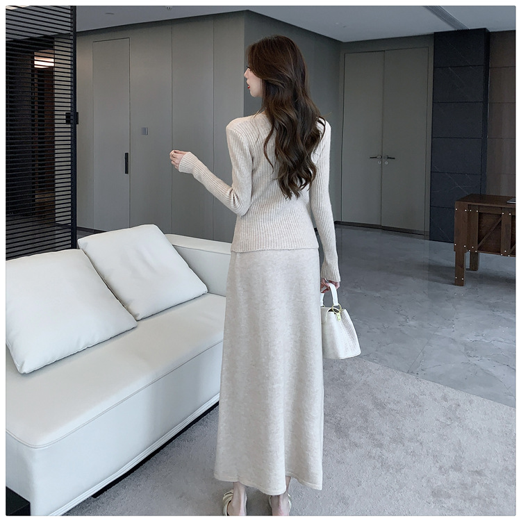 Bộ trang phục hai mảnh này gồm áo len cổ chữ V và chân váy dài. Kiểu dáng mang phong cách châu Âu hiện đại, phù hợp cho mùa thu đông. Áo ôn nhẹ tạo cảm giác dễ chịu, kết hợp cùng chân váy dáng dài giúp tôn lên nét duyên dáng. Có thể mặc bộ này đi làm, đi gặp mặt hoặc dạo phố. Dễ dàng phối với giày cao gót hoặc giày đế bằng, tạo nên vẻ ngoài chỉn chu và lịch sự. | Tên sản phẩm: Áo Len Nữ Áo Len Cả Bộ 2 Món Cổ Chữ V Hàng Mùa Xuân Thu Đông - Thời Trang Nữ | Mã sản phẩm: B3884 - Giá: 1.010.000đ | Mã nhà sản xuất: ZHOUT-G03Hình ảnh sản phẩm