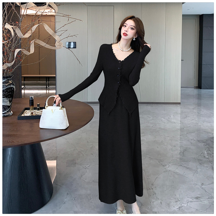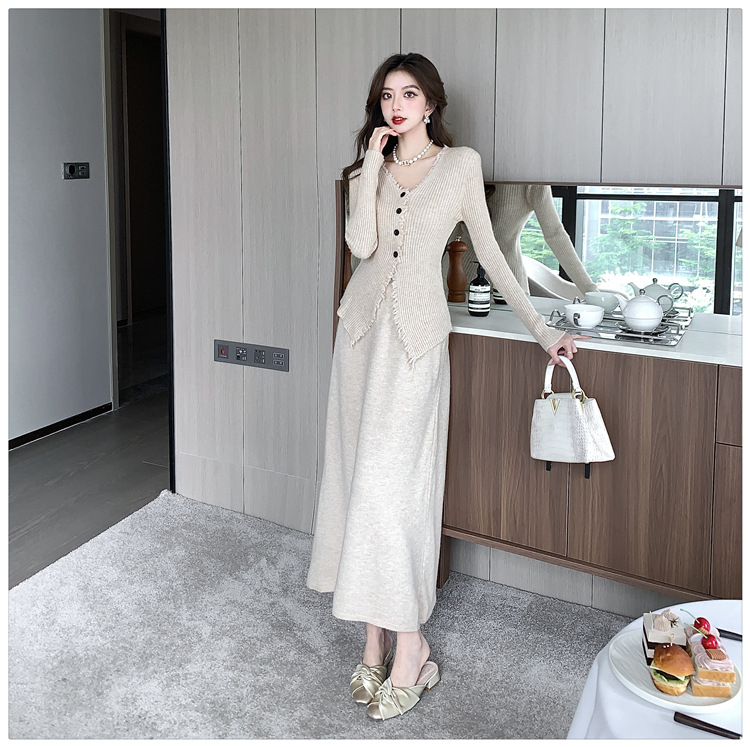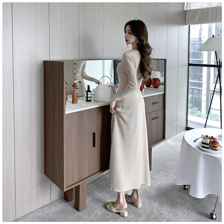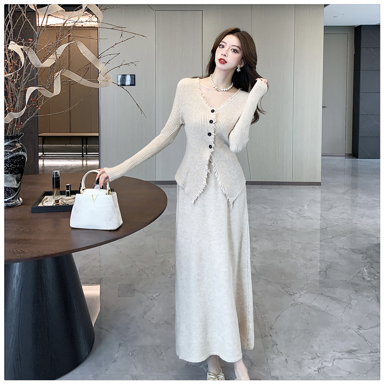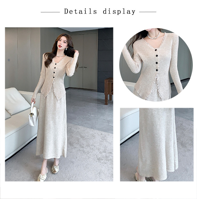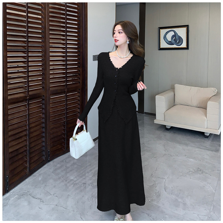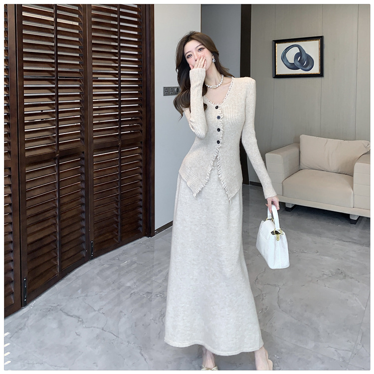 Bộ trang phục hai mảnh này gồm áo len cổ chữ V và chân váy dài. Kiểu dáng mang phong cách châu Âu hiện đại, phù hợp cho mùa thu đông. Áo ôn nhẹ tạo cảm giác dễ chịu, kết hợp cùng chân váy dáng dài giúp tôn lên nét duyên dáng. Có thể mặc bộ này đi làm, đi gặp mặt hoặc dạo phố. Dễ dàng phối với giày cao gót hoặc giày đế bằng, tạo nên vẻ ngoài chỉn chu và lịch sự. | Tên sản phẩm: Áo Len Nữ Áo Len Cả Bộ 2 Món Cổ Chữ V Hàng Mùa Xuân Thu Đông - Thời Trang Nữ | Mã sản phẩm: B3884 - Giá: 1.010.000đ | Mã nhà sản xuất: ZHOUT-G03Hình ảnh sản phẩm