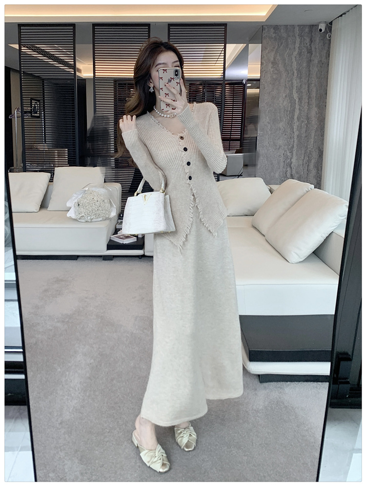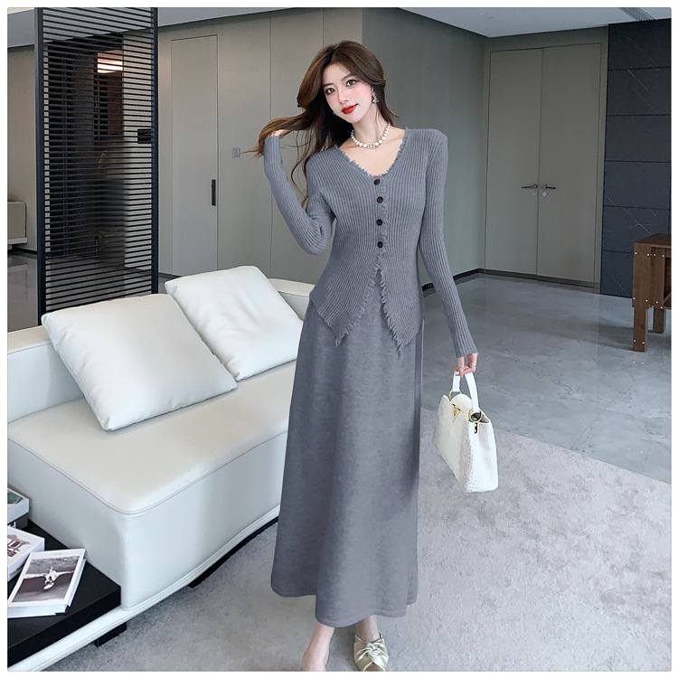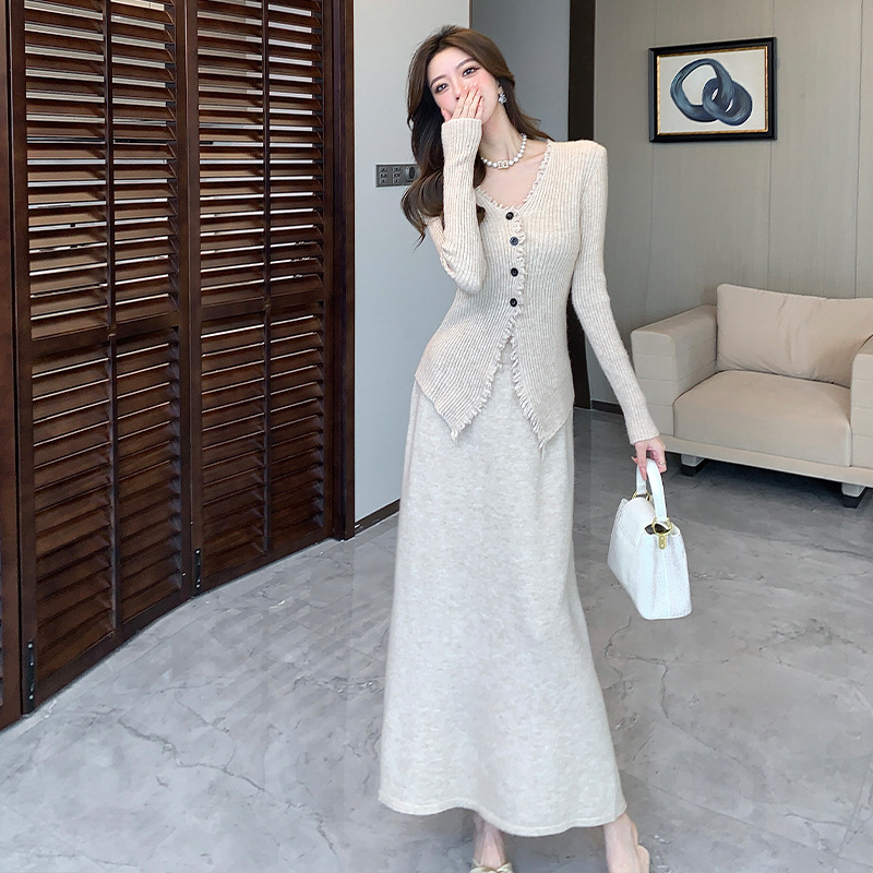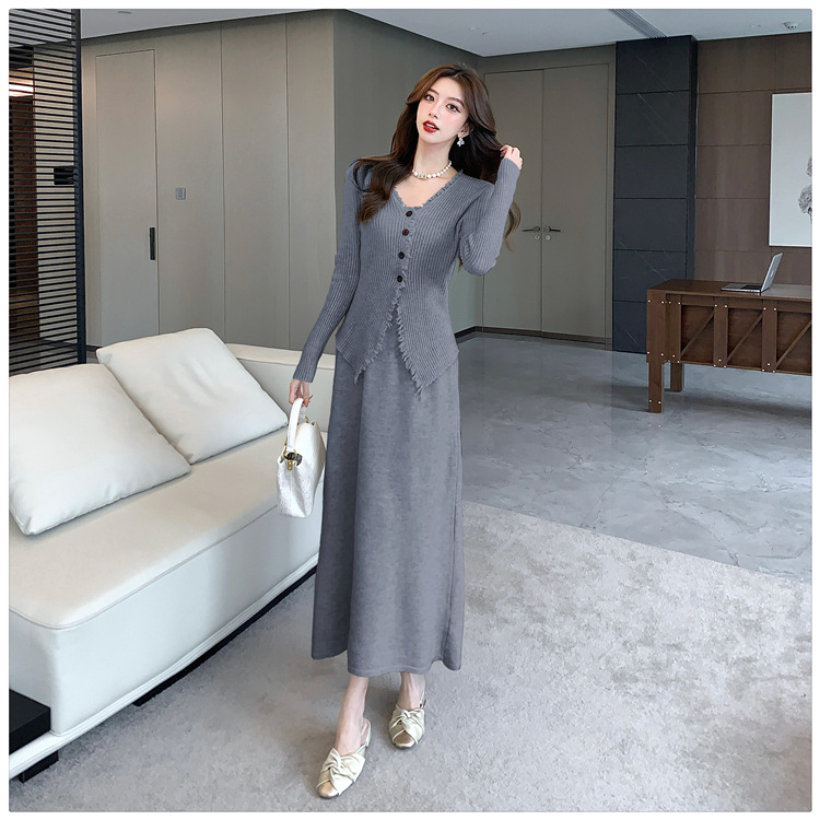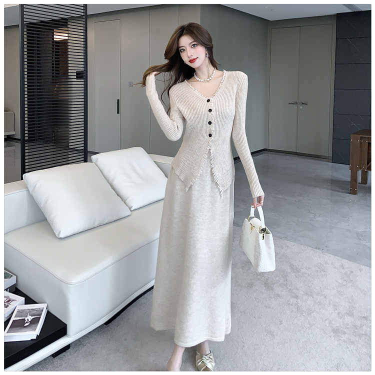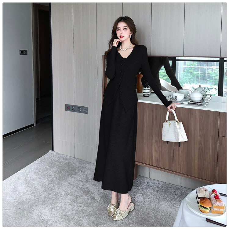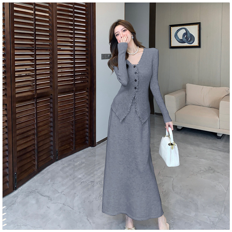 Bộ trang phục hai mảnh này gồm áo len cổ chữ V và chân váy dài. Kiểu dáng mang phong cách châu Âu hiện đại, phù hợp cho mùa thu đông. Áo ôn nhẹ tạo cảm giác dễ chịu, kết hợp cùng chân váy dáng dài giúp tôn lên nét duyên dáng. Có thể mặc bộ này đi làm, đi gặp mặt hoặc dạo phố. Dễ dàng phối với giày cao gót hoặc giày đế bằng, tạo nên vẻ ngoài chỉn chu và lịch sự. | Tên sản phẩm: Áo Len Nữ Áo Len Cả Bộ 2 Món Cổ Chữ V Hàng Mùa Xuân Thu Đông - Thời Trang Nữ | Mã sản phẩm: B3884 - Giá: 1.010.000đ | Mã nhà sản xuất: ZHOUT-G03Hình ảnh sản phẩm
