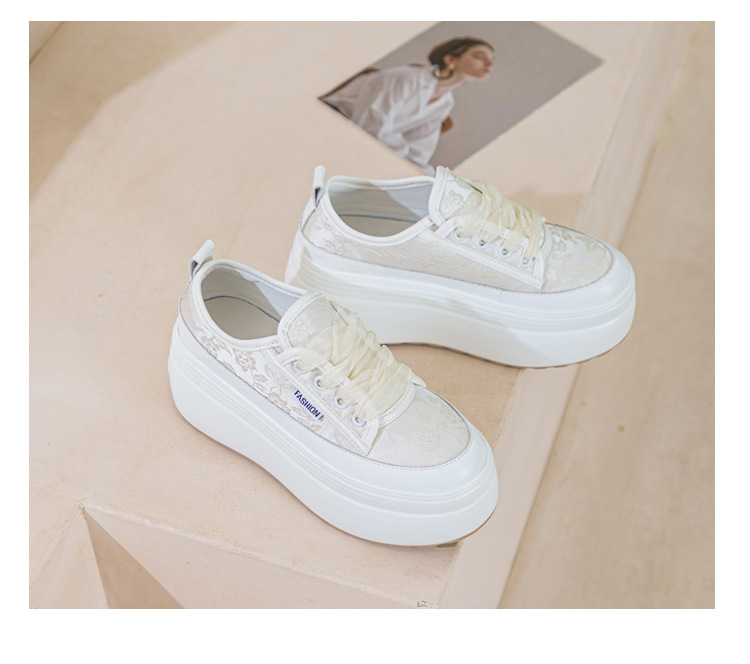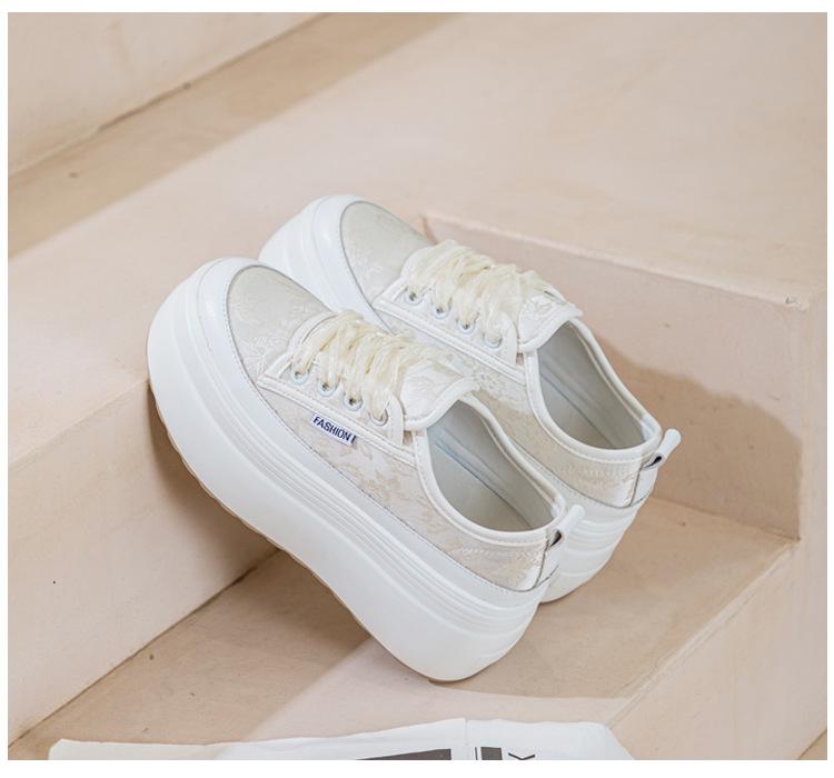 Giày sneaker nữ thiết kế mới cho mùa xuân 2024, phối cùng dải ruy-băng lụa mềm mại tạo điểm nhấn duyên dáng. Đế giày được làm dày vừa phải giúp tăng chiều cao một cách tự nhiên, kiểu dáng cổ điển kết hợp họa tiết hoa nhẹ nhàng. Sản phẩm dễ dàng phối cùng nhiều trang phục như quần jeans, váy hay quần shorts. Chỉ cần buộc nơ nhẹ ở phần cổ giày là đã có ngay set đồ tôn dáng hoàn hảo. | Tên sản phẩm: Giày Thể Thao Tăng Chiều Cao Nữ Họa Tiết Hoa Đế Cao Hàng Mùa Xuân Thu Đông - Giày Dép Nữ | Mã sản phẩm: B3903 - Giá: 1.170.000đ | Mã nhà sản xuất: WERYAN-G04Hình ảnh sản phẩm
