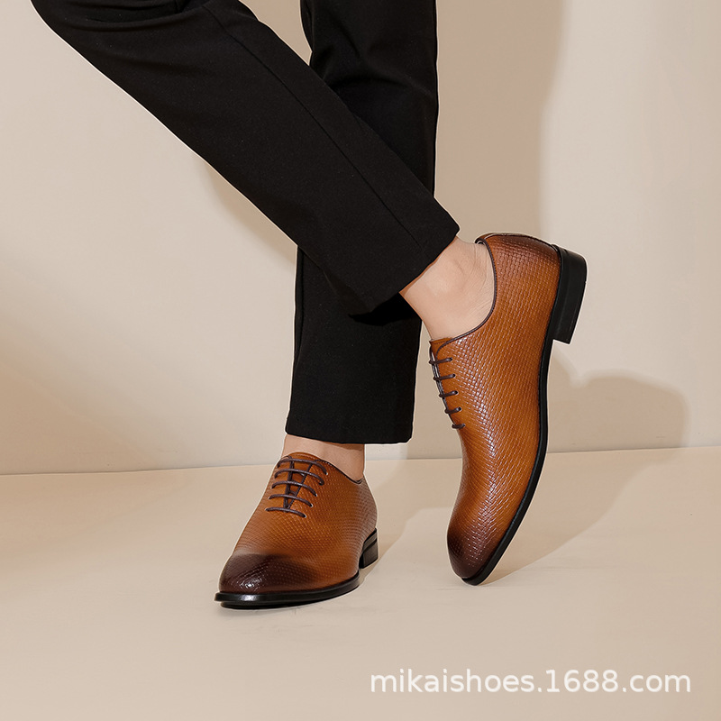 Giày tây nam thiết kế kiểu châu Âu hiện đại, phù hợp cho môi trường công sở và các dịp cần trang phục chỉn chu. Sản phẩm có dây buộc điều chỉnh độ ôm vừa vặn. Điểm nổi bật là phần thân giày được làm từ một miếng da liền mạch, tạo nên vẻ ngoài gọn gàng và tinh tế. Khi sử dụng, bạn chỉ cần xỏ chân vào, buộc dây và điều chỉnh cho thật thoải mái. Kiểu dáng lịch sự này dễ dàng phối cùng nhiều loại trang phục khác nhau. | Tên sản phẩm: Giày Da Nam Big Size Ngoại Cỡ Phong Cách Hàn Quốc - Giày Dép Nam | Mã sản phẩm: B3928 - Giá: 670.000đ | Mã nhà sản xuất: WEDS-G02Hình ảnh sản phẩm