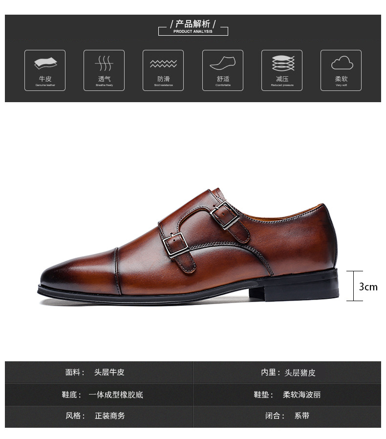 Giày da nam thiết kế ba mảnh nổi bật, phù hợp cho môi trường công sở. Sản phẩm được làm từ chất liệu da bò thật, mang đến cảm giác thoải mái và bền đẹp theo thời gian. Kiểu dáng phong cách Anh Quốc cổ điển kết hợp nét cổ điển tinh tế, tạo điểm nhấn khác biệt. Dễ dàng phối cùng quần tây hay âu phục chỉnh tề. Sử dụng hàng ngày và vệ sinh nhẹ bằng khăn mềm để giữ giày luôn sáng bóng. | Tên sản phẩm: Giày Da Nam Chất Liệu Da Bò Hàng Mùa Hè Phục Cổ Cổ Điển - Giày Dép Nam | Mã sản phẩm: B3931 - Giá: 1.630.000đ | Mã nhà sản xuất: WEDS-G05Hình ảnh sản phẩm