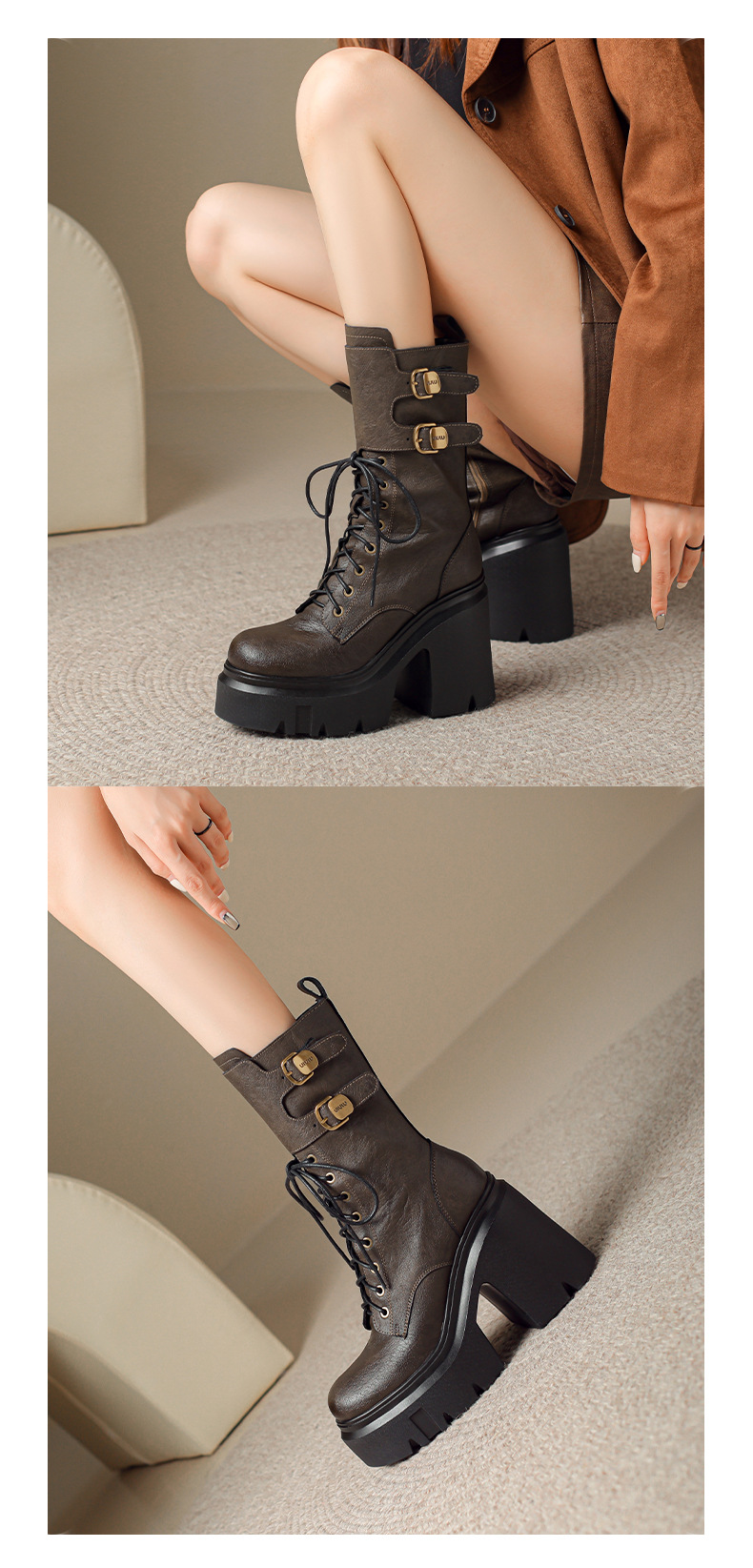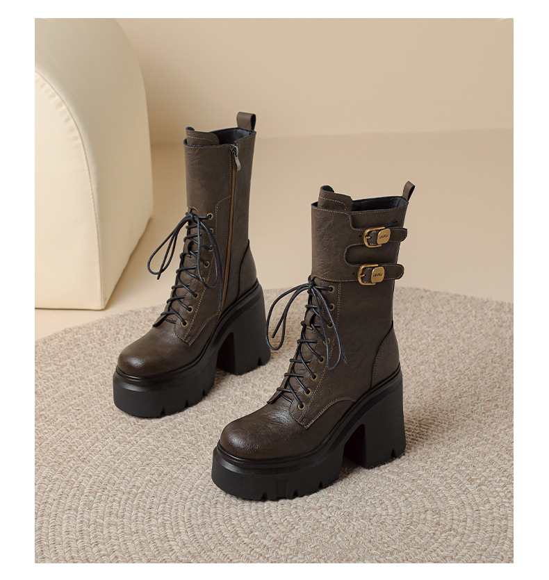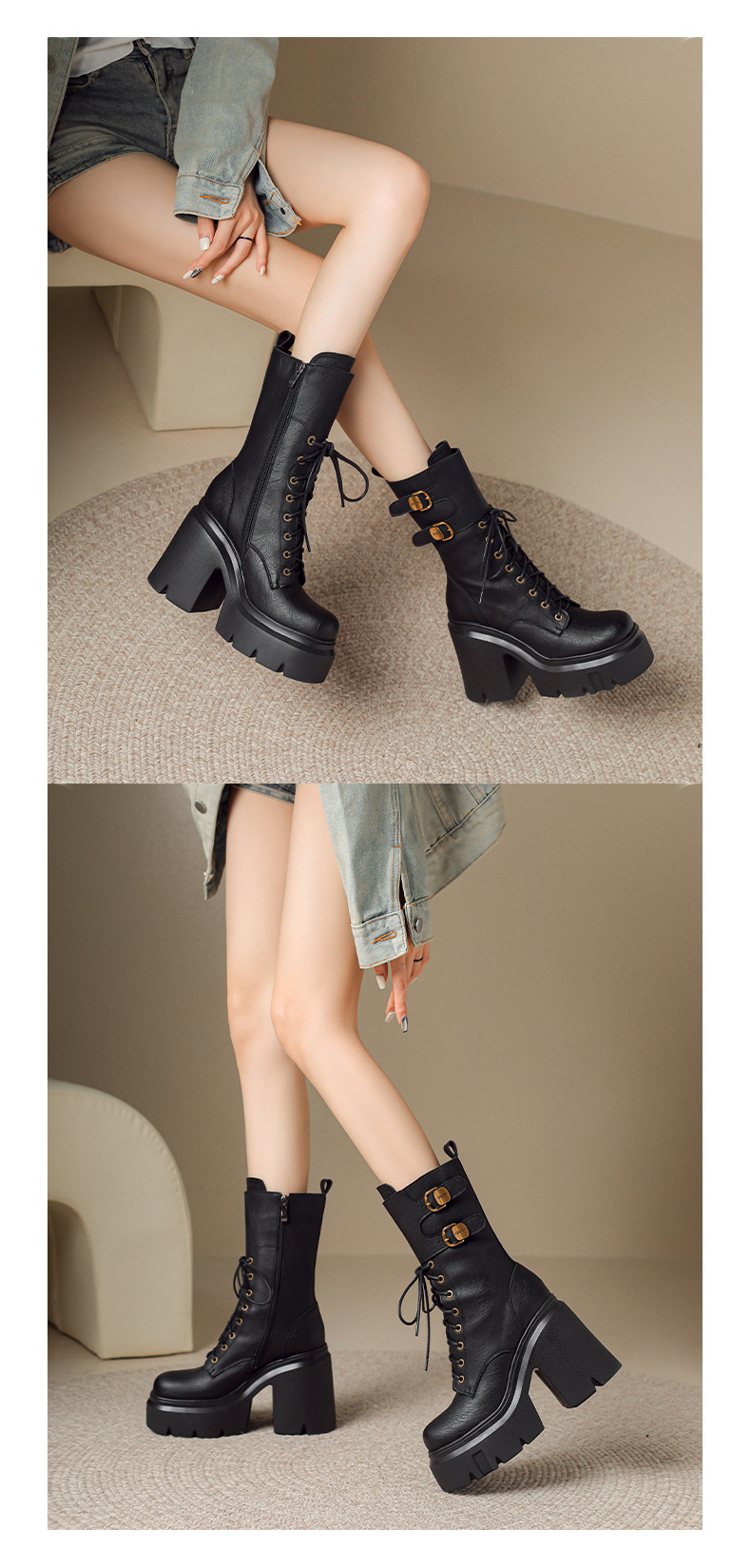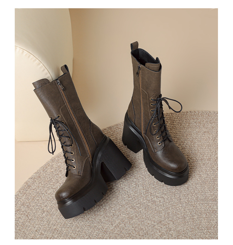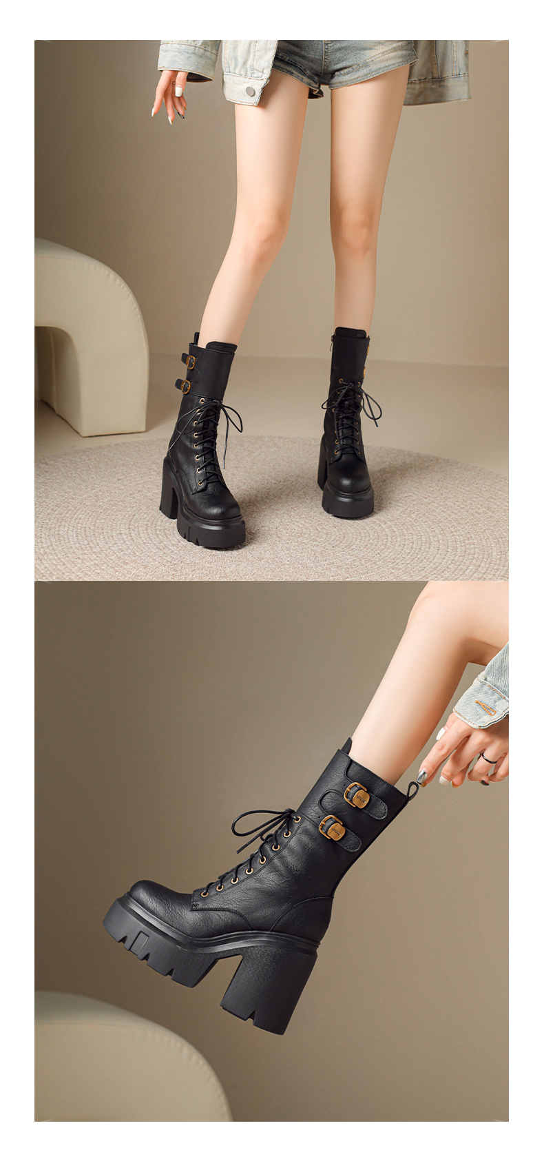 Đôi bốt cổ trung này có phần đế rất dày và gót thô chắc chắn, cao mười hai phân, giúp tăng chiều cao đáng kể. Sản phẩm được làm hoàn toàn từ chất liệu da thật, mang lại cảm giác ôm chân và bền bỉ. Kiểu dáng boot thể thao, mạnh mẽ, rất hợp để diện trong mùa thu đông. Bạn có thể xỏ vào dễ dàng và phối cùng nhiều loại trang phục như quần jeans hay váy để tạo điểm nhấn. | Tên sản phẩm: Boot Cổ Thấp Nữ Chất Liệu Da Bò Cao 12cm Gót Vuông Tăng Chiều Cao Đế Cao Hàng Mùa Xuân Thu Đông - Giày Dép Nữ | Mã sản phẩm: B3934 - Giá: 1.920.000đ | Mã nhà sản xuất: QIDNG-G05Hình ảnh sản phẩm