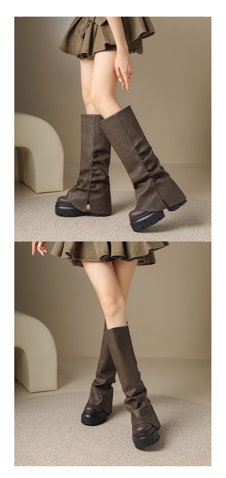Đôi bốt cổ cao này có phần đế dày và gót được thiết kế thông minh bên trong, giúp tăng chiều cao một cách tinh tế lên đến 12cm. Sản phẩm làm từ chất liệu da thật, kiểu dáng ôm chân tạo nên vẻ thanh lịch. Bốt phù hợp để mang trong tiết trời thu đông, giữ ấm tốt cho đôi chân. Bạn có thể dễ dàng phối cùng quần legging, jeans hay váy để tạo điểm nhấn nổi bật cho trang phục hàng ngày. | Tên sản phẩm: Boot Cổ Cao Nữ Chất Liệu Da Bò Cao 12cm Tăng Chiều Cao Đế Cao Hàng Mùa Xuân Thu Đông - Giày Dép Nữ | Mã sản phẩm: B3935 - Giá: 2.690.000đ | Mã nhà sản xuất: QIDNG-G06Hình ảnh sản phẩm