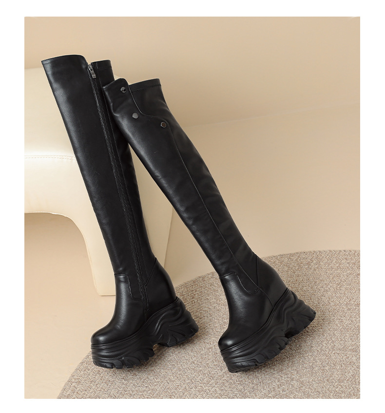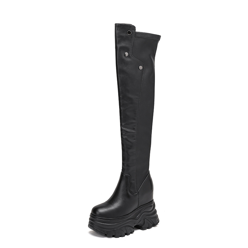 Đôi bốt cao cổ này được làm từ chất liệu da mềm có độ co giãn, ôm sát chân một cách thoải mái. Thiết kế đế dày bên trong giúp tăng chiều cao lên đến 14cm một cách kín đáo và vững chãi. Kiểu dáng bốt dài qua gối phù hợp để diện cùng quần legging, váy ngắn hay quần jeans. Bạn có thể dễ dàng xỏ chân vào và kéo ống bốt lên, tạo nên một phong cách trẻ trung và năng động. | Tên sản phẩm: Cao Gót Nữ Chất Liệu Da Bò Cao 14cm Cổ Cao Qua Gối Tăng Chiều Cao Đế Cao - Giày Dép Nữ | Mã sản phẩm: B3941 - Giá: 2.690.000đ | Mã nhà sản xuất: QIDNG-G06Hình ảnh sản phẩm