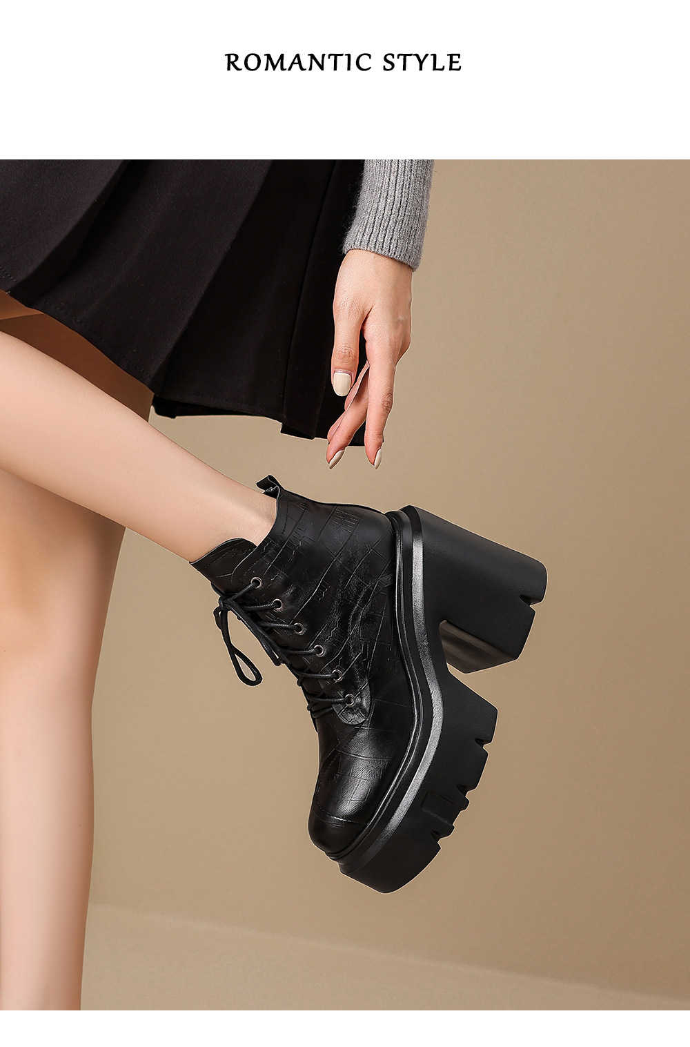 Đôi bốt cổ thấp này mang phong cách cổ điển với đế ngoài dày và phần gót thô chắc chắn, cao mười hai phân. Sản phẩm được làm từ chất liệu da thật, ôm chân êm ái. Kiểu dáng buộc dây giúp bạn điều chỉnh độ ôm vừa vặn. Phù hợp để phối cùng nhiều trang phục hàng ngày, mang lại cho bạn vẻ ngoài cá tính và thoải mái khi di chuyển. | Tên sản phẩm: Boot Cổ Thấp Nữ Chất Liệu Da Bò Cao 12cm Gót Vuông Đế Cao Phục Cổ Cổ Điển - Giày Dép Nữ | Mã sản phẩm: B3944 - Giá: 2.120.000đ | Mã nhà sản xuất: QIDNG-G05Hình ảnh sản phẩm