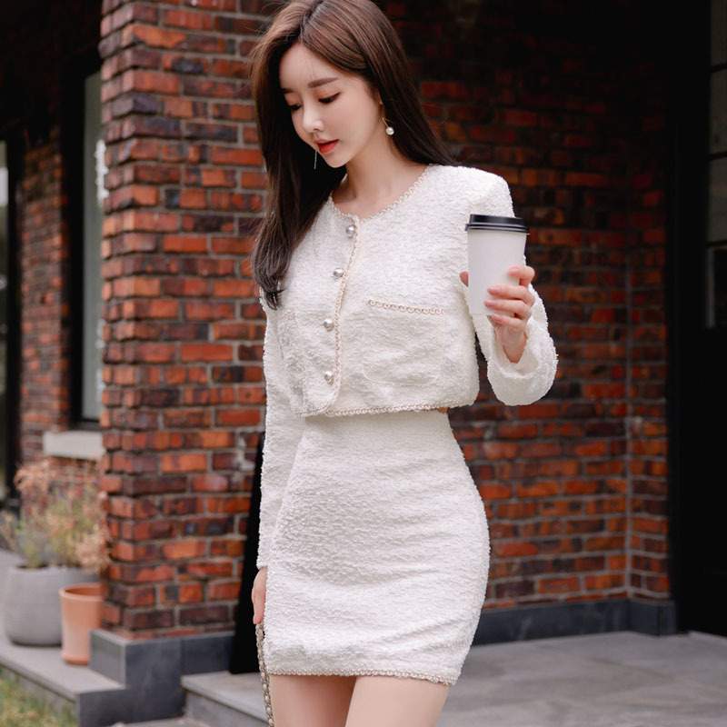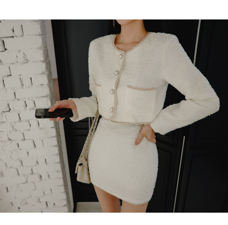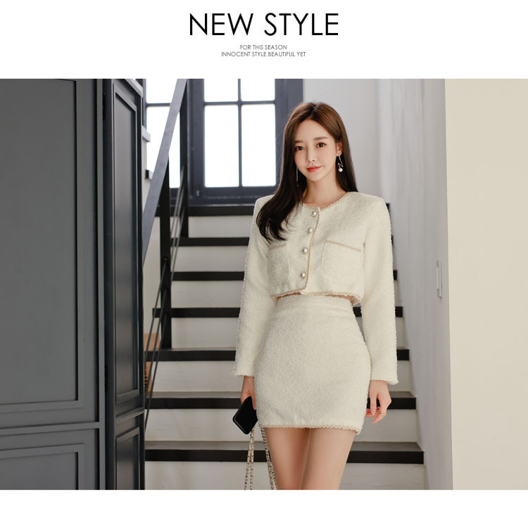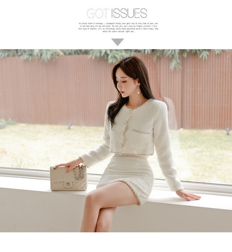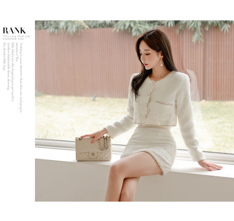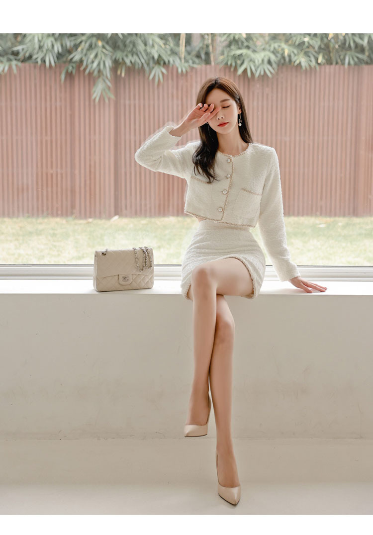 Bộ trang phục hai mảnh này gồm áo khoác ngắn và chân váy ôm. Áo được thiết kế với hàng cúc đơn giản phía trước, tạo điểm nhấn thanh lịch. Chân váy form ôm vừa vặn, giúp tôn lên đường nét cơ thể. Chất vải dày dặn, phù hợp giữ ấm cho những ngày trời se lạnh. Có thể mặc bộ này đi làm, đi gặp mặt hoặc dạo phố. Phối cùng giày cao gót và túi xách nhỏ để hoàn thiện vẻ ngoài. | Tên sản phẩm: Áo Khoác Nữ Cả Bộ 2 Món Hàng Mùa Xuân Thu Đông - Thời Trang Nữ | Mã sản phẩm: B3949 - Giá: 1.000.000đ | Mã nhà sản xuất: ZHOUT-G03Hình ảnh sản phẩm