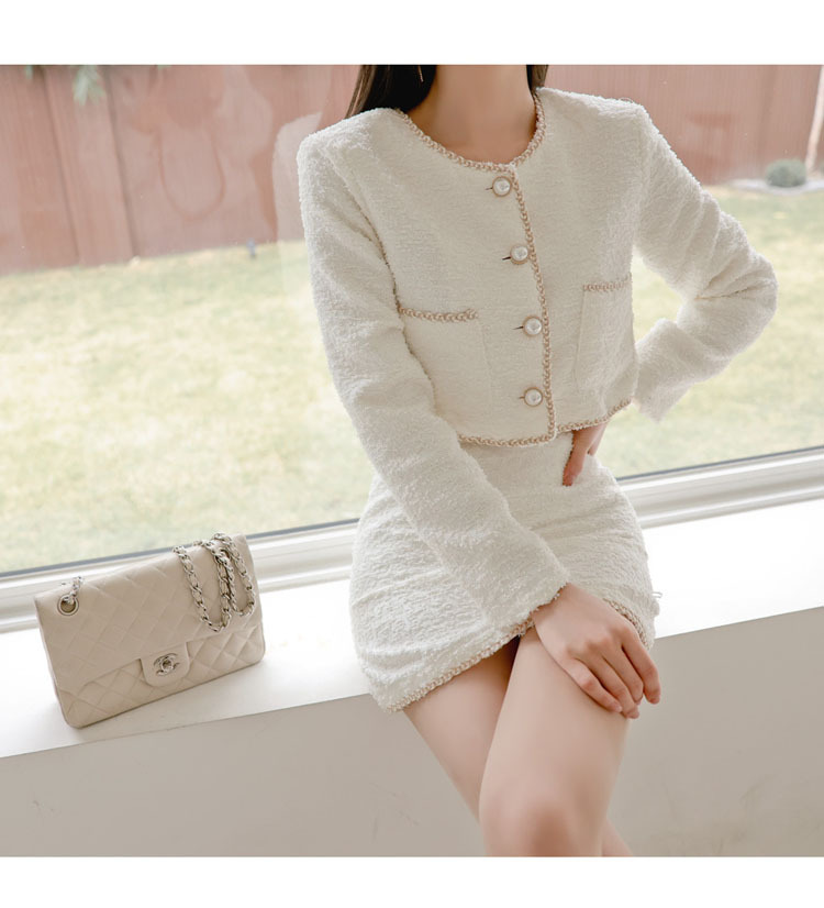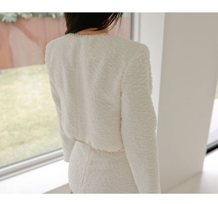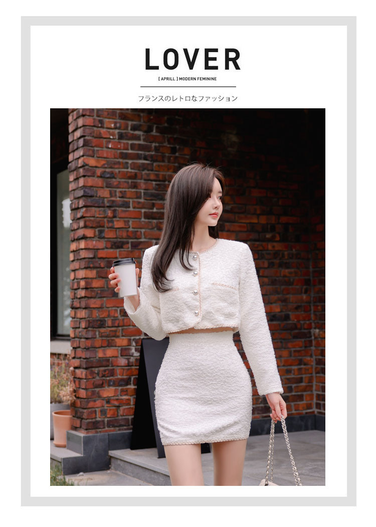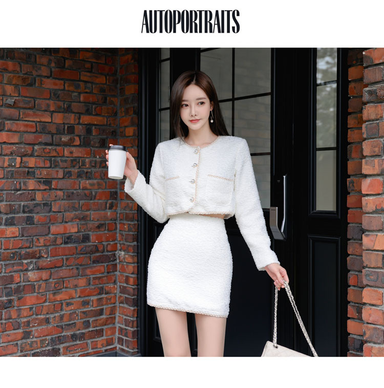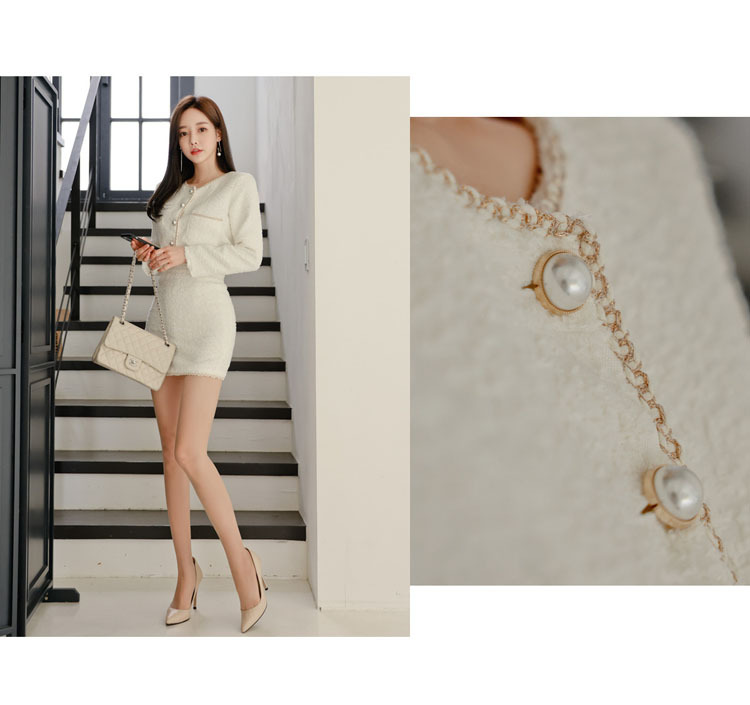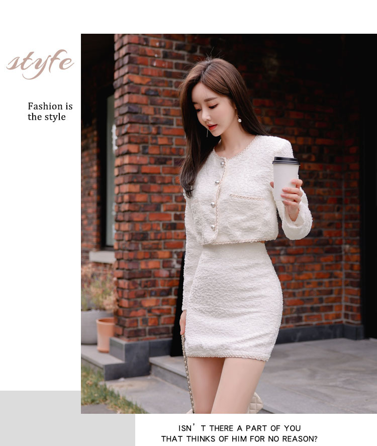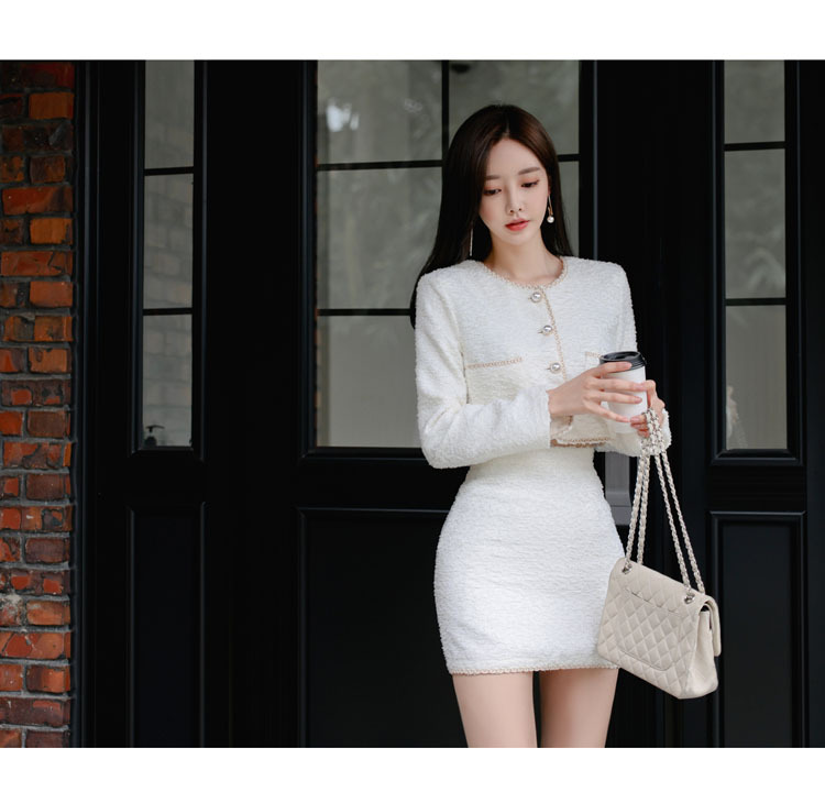 Bộ trang phục hai mảnh này gồm áo khoác ngắn và chân váy ôm. Áo được thiết kế với hàng cúc đơn giản phía trước, tạo điểm nhấn thanh lịch. Chân váy form ôm vừa vặn, giúp tôn lên đường nét cơ thể. Chất vải dày dặn, phù hợp giữ ấm cho những ngày trời se lạnh. Có thể mặc bộ này đi làm, đi gặp mặt hoặc dạo phố. Phối cùng giày cao gót và túi xách nhỏ để hoàn thiện vẻ ngoài. | Tên sản phẩm: Áo Khoác Nữ Cả Bộ 2 Món Hàng Mùa Xuân Thu Đông - Thời Trang Nữ | Mã sản phẩm: B3949 - Giá: 1.000.000đ | Mã nhà sản xuất: ZHOUT-G03Hình ảnh sản phẩm