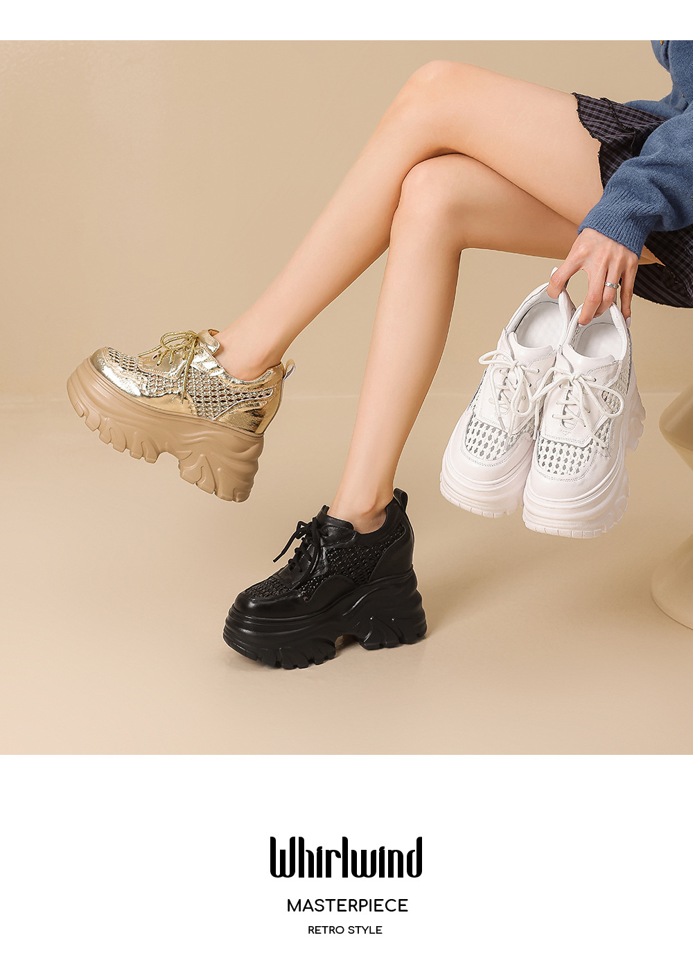 Đôi giày nữ này có phần đế dày tạo dáng thon gọn cho bàn chân, giúp tăng chiều cao một cách nhẹ nhàng. Chất liệu dệt lưới thoáng khí mang lại cảm giác mát mẻ, dễ chịu khi mang cả ngày. Kiểu dáng đơn giản với màu trắng dễ phối đồ, phù hợp cho các hoạt động thường ngày. Bạn chỉ cần xỏ chân vào và điều chỉnh dây giày hoặc khóa dán cho vừa vặn là có thể sử dụng ngay. | Tên sản phẩm: Giày Cao Gót Nữ Cao 12cm Tăng Chiều Cao Đế Cao Hàng Mùa Hè - Giày Dép Nữ | Mã sản phẩm: B3970 - Giá: 2.120.000đ | Mã nhà sản xuất: QIDNG-G05Hình ảnh sản phẩm