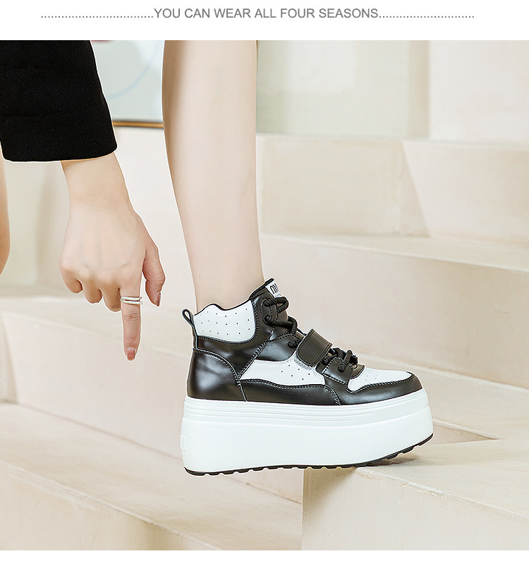 Giày thể thao nữ thiết kế với hai màu kết hợp nổi bật, lấy cảm hứng từ loài gấu trúc dễ thương. Kiểu dáng cổ cao giúp ôm trọn bàn chân, phần đế dày tạo cảm giác thoải mái và hỗ trợ tăng chiều cao nhẹ nhàng. Sử dụng khóa dán tiện lợi, dễ dàng điều chỉnh độ ôm vừa vặn. Đôi giày phù hợp cho các hoạt động thường ngày, dễ phối cùng nhiều loại trang phục khác nhau. | Tên sản phẩm: Giày Thể Thao Tăng Chiều Cao Nữ Đế Cao Hàng Mùa Xuân Thu Đông - Giày Dép Nữ | Mã sản phẩm: B3971 - Giá: 1.190.000đ | Mã nhà sản xuất: WERYAN-G04Hình ảnh sản phẩm