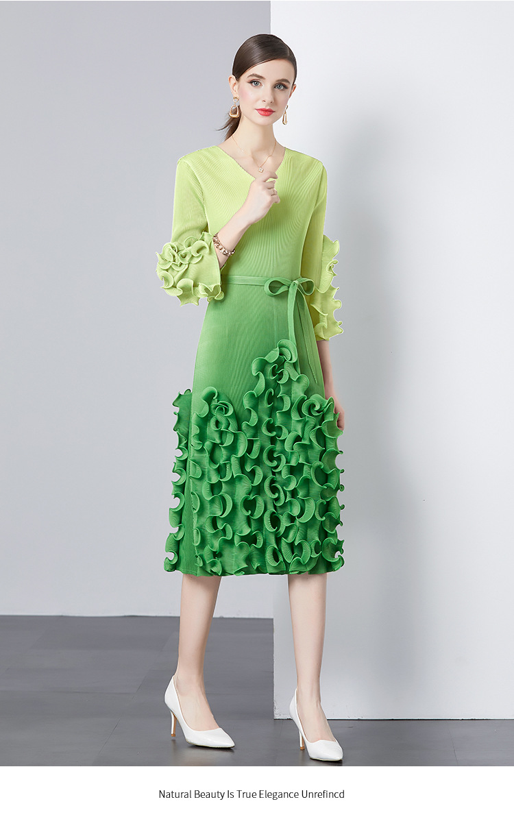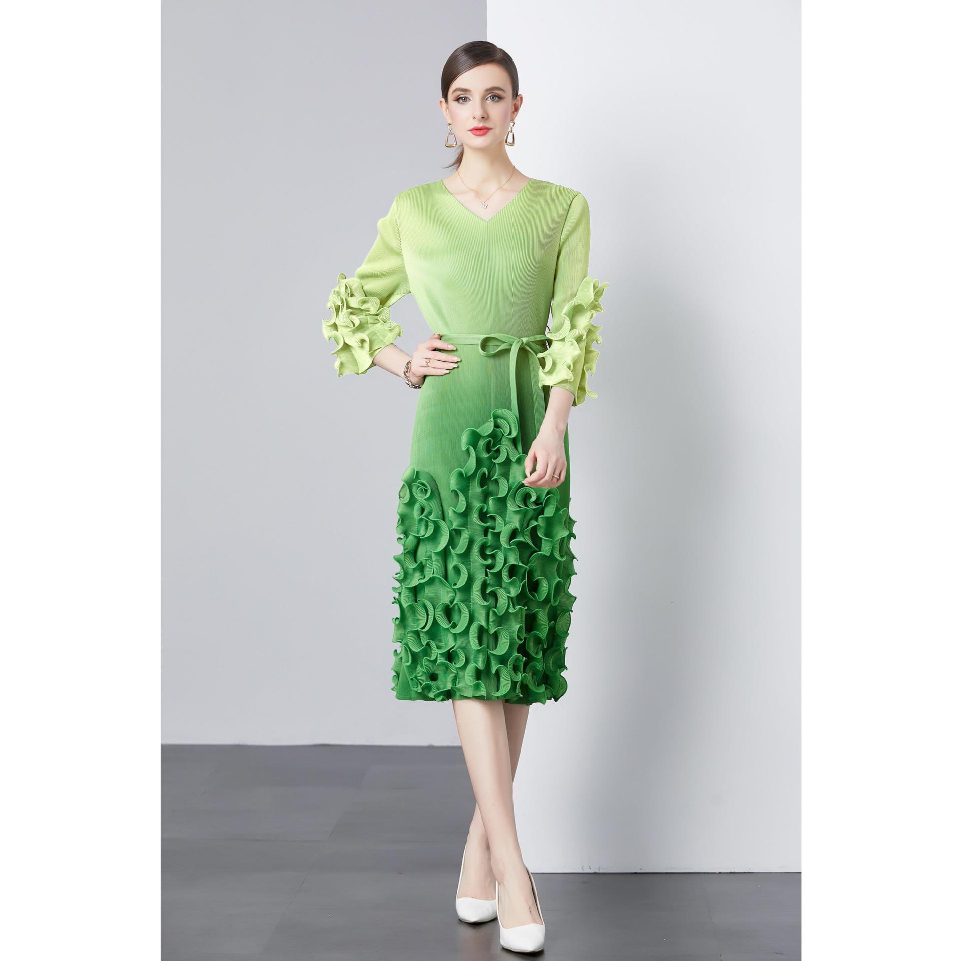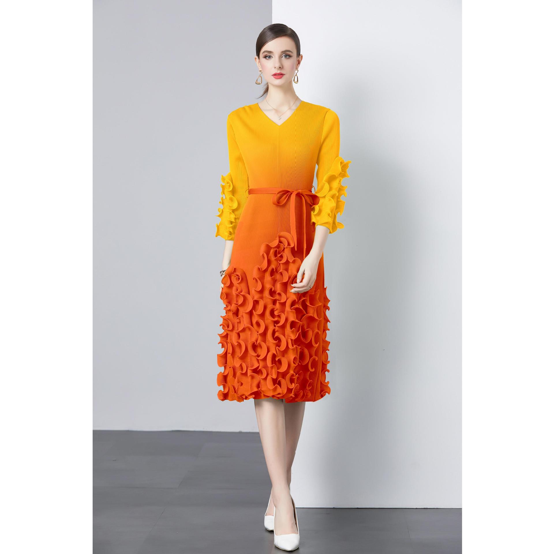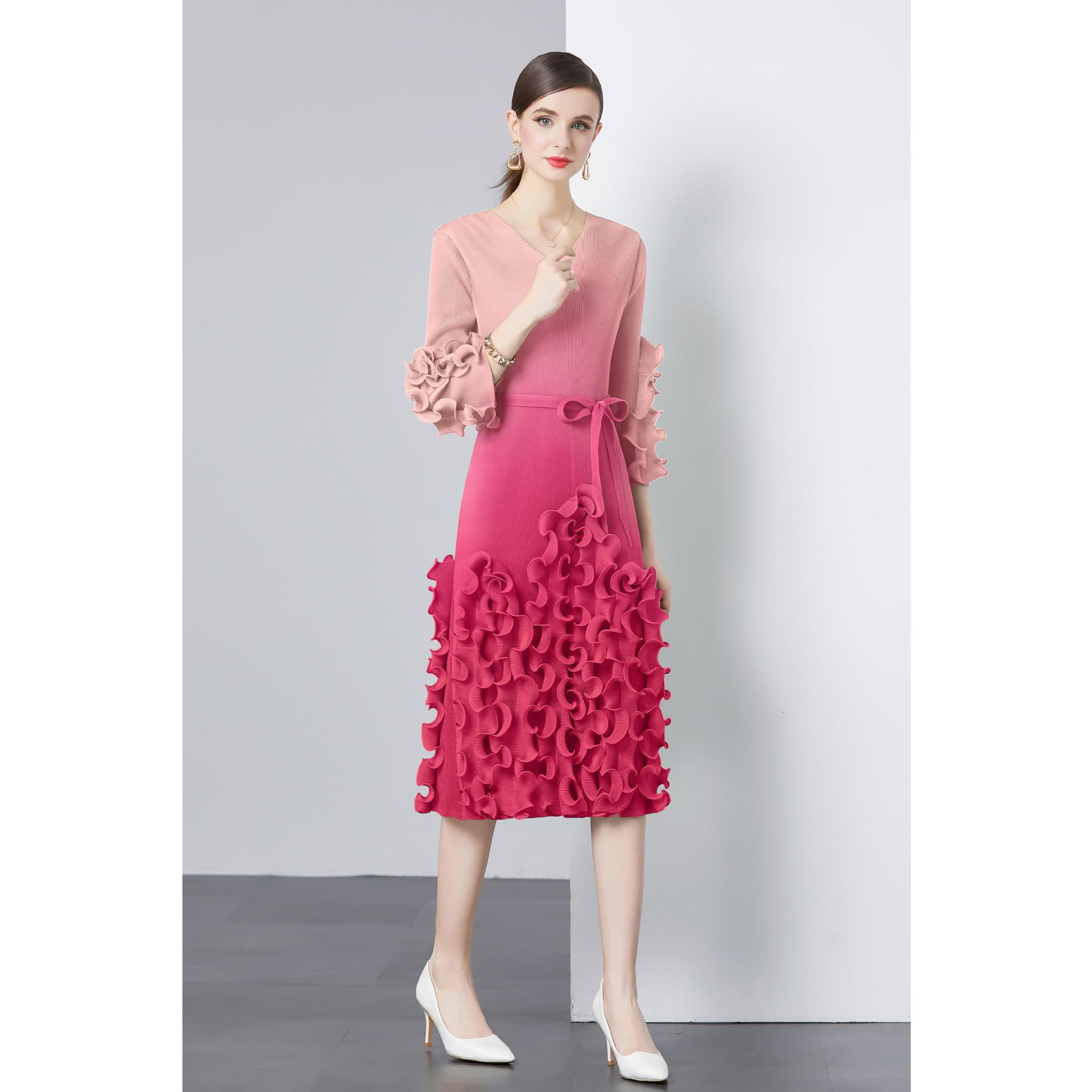 Chiếc đầm dành cho nữ, kiểu dáng dài với những nếp gấp mềm mại suốt thân. Điểm nhấn là đường viền cổ và tay áo được cách điệu như những cánh hoa nhỏ xinh, tạo nên vẻ đẹp nữ tính và thanh thoát. Chất vải nhẹ, co giãn nhẹ mang lại sự dễ chịu cho người mặc vào mùa hè. Sản phẩm phù hợp để mặc đi làm, đi chơi hoặc dự những buổi gặp mặt thông thường. Có thể giặt bằng máy và ủi ở nhiệt độ thấp để giữ form vải. | Tên sản phẩm: Váy Đầm Liền Thân Dáng Dài Nữ Big Size Ngoại Cỡ Hàng Mùa Hè - Thời Trang Nữ | Mã sản phẩm: B3974 - Giá: 1.350.000đ | Mã nhà sản xuất: GUDG-G04Hình ảnh sản phẩm
