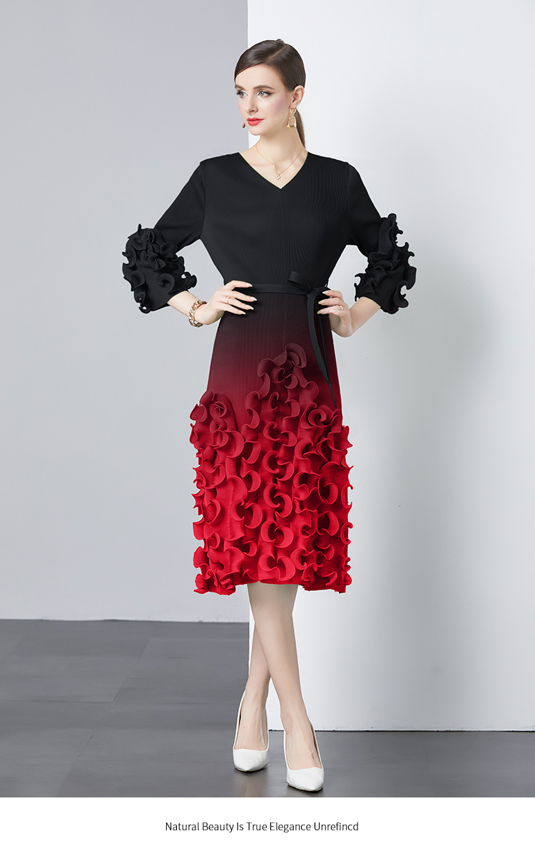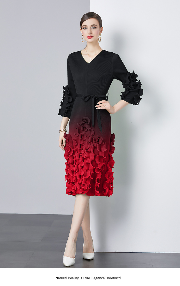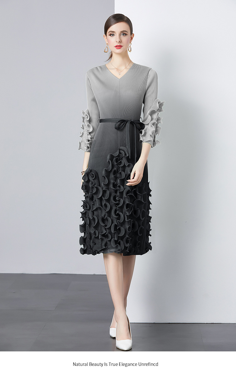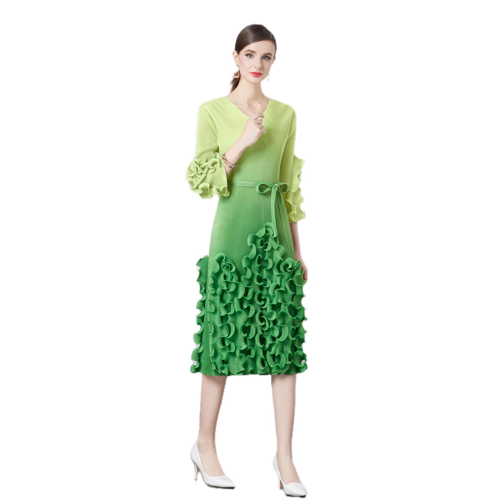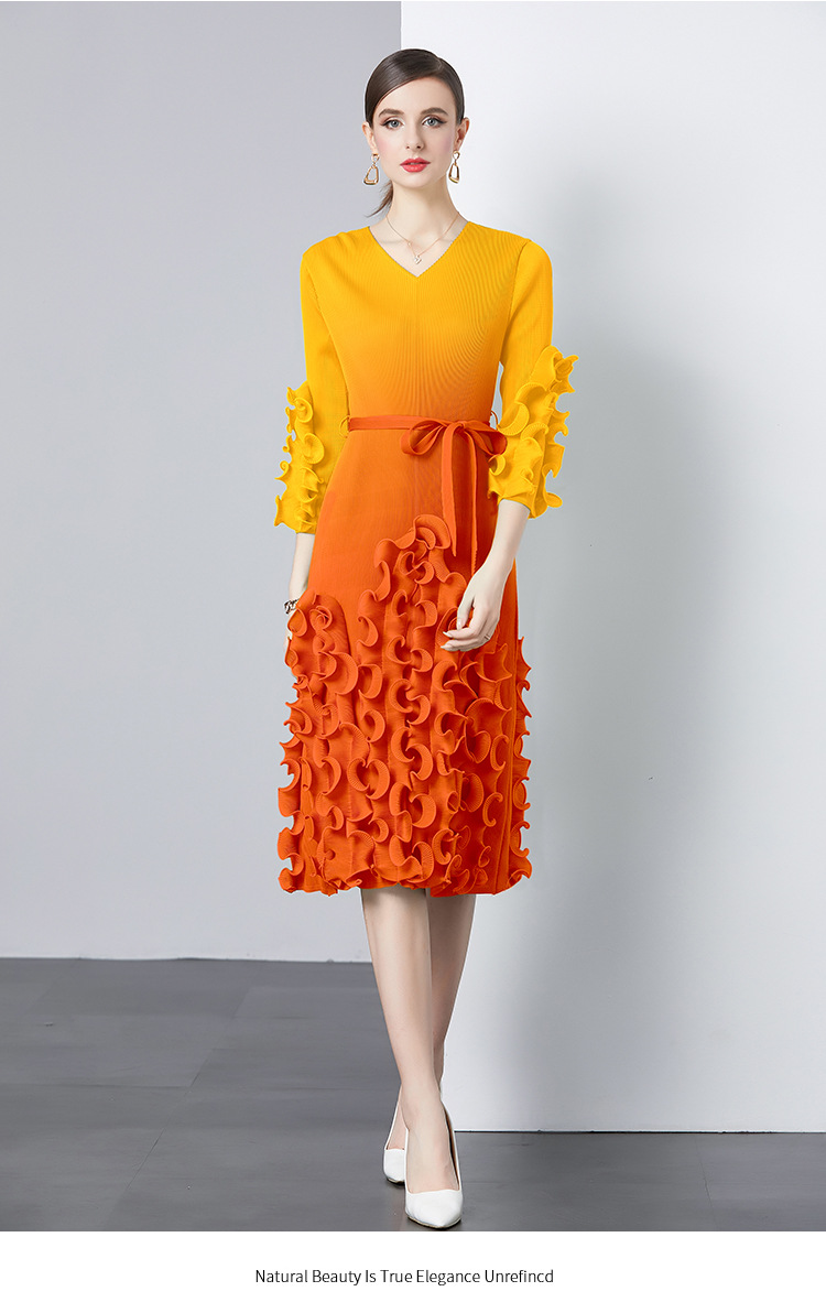 Chiếc đầm dành cho nữ, kiểu dáng dài với những nếp gấp mềm mại suốt thân. Điểm nhấn là đường viền cổ và tay áo được cách điệu như những cánh hoa nhỏ xinh, tạo nên vẻ đẹp nữ tính và thanh thoát. Chất vải nhẹ, co giãn nhẹ mang lại sự dễ chịu cho người mặc vào mùa hè. Sản phẩm phù hợp để mặc đi làm, đi chơi hoặc dự những buổi gặp mặt thông thường. Có thể giặt bằng máy và ủi ở nhiệt độ thấp để giữ form vải. | Tên sản phẩm: Váy Đầm Liền Thân Dáng Dài Nữ Big Size Ngoại Cỡ Hàng Mùa Hè - Thời Trang Nữ | Mã sản phẩm: B3974 - Giá: 1.350.000đ | Mã nhà sản xuất: GUDG-G04Hình ảnh sản phẩm