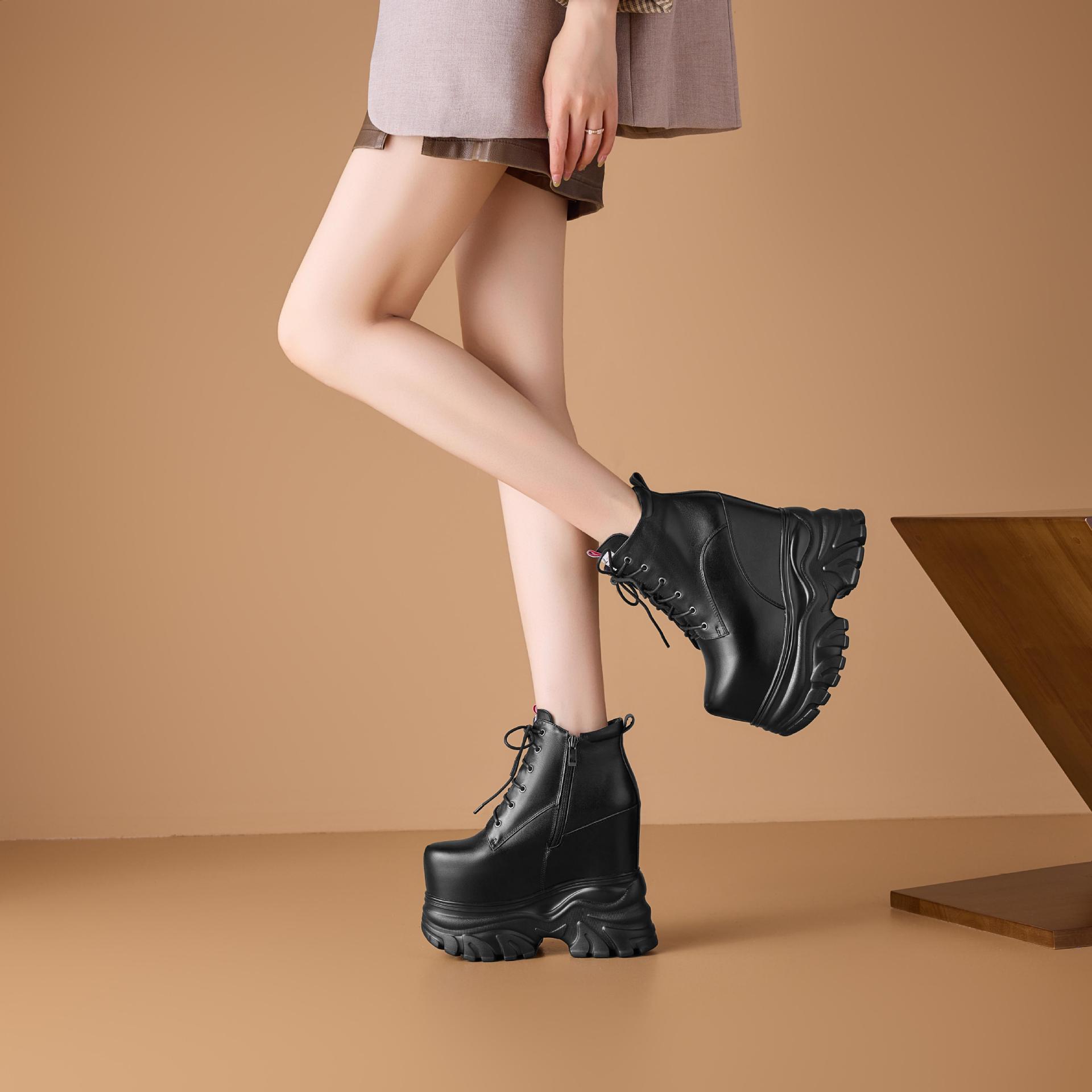 Đôi bốt cổ thấp này có phần đế ngoài dày dặn kết hợp đế giữa bên trong tạo hiệu ứng tăng chiều cao một cách khéo léo. Sản phẩm có kiểu dáng bốt cổ điển, ôm vừa chân, rất phù hợp để mang trong tiết trời mát mẻ. Chất liệu chính từ da mềm mại, mang lại cảm giác dễ chịu. Bạn có thể phối cùng quần jeans, quần legging hoặc váy để tạo nên những phong cách khác nhau. | Tên sản phẩm: Boot Cổ Thấp Nữ Chất Liệu Da Bò Cao 16cm Tăng Chiều Cao Đế Xuồng Đế Cao Hàng Mùa Xuân Thu Đông - Giày Dép Nữ | Mã sản phẩm: B3980 - Giá: 3.420.000đ | Mã nhà sản xuất: QIDNG-G06Hình ảnh sản phẩm