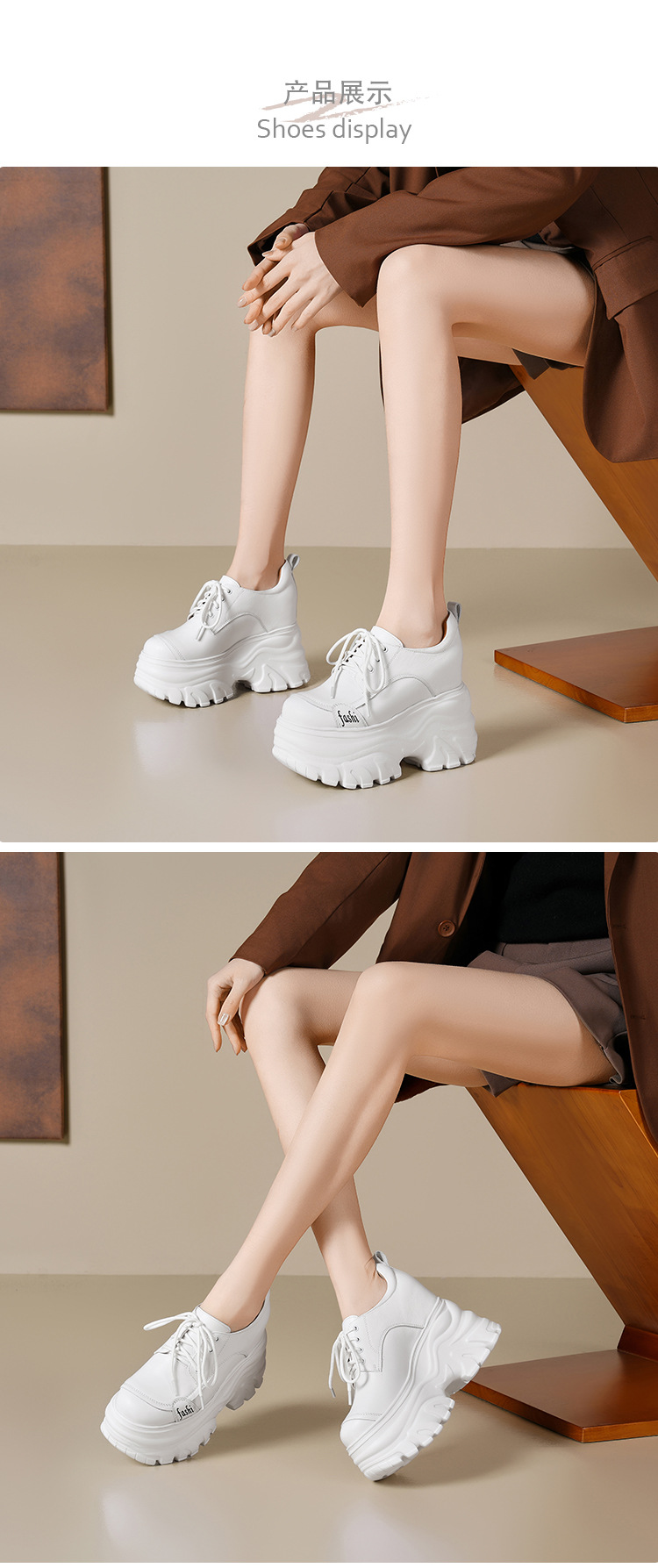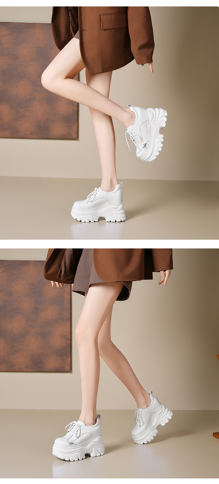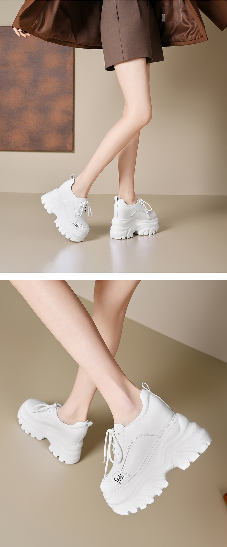 Giày thể thao nữ thiết kế đế xuồng dễ dàng tăng chiều cao, phù hợp cho những bạn gái có vóc dáng nhỏ nhắn. Sản phẩm làm từ chất liệu da thật, phần đế trong có thiết kế đệm độn lên đến 12cm một cách khéo léo. Kiểu dáng màu trắng cơ bản dễ phối đồ, mang lại cảm giác vừa vặn và thoải mái khi di chuyển. Bạn có thể sử dụng như một đôi giày thể thao hàng ngày, phù hợp cho nhiều dịp khác nhau. | Tên sản phẩm: Giày Cao Gót Nữ Chất Liệu Da Bò Cao 12cm Tăng Chiều Cao Đế Cao Hàng Mùa Xuân Thu Đông - Giày Dép Nữ | Mã sản phẩm: B3982 - Giá: 2.120.000đ | Mã nhà sản xuất: QIDNG-G05Hình ảnh sản phẩm