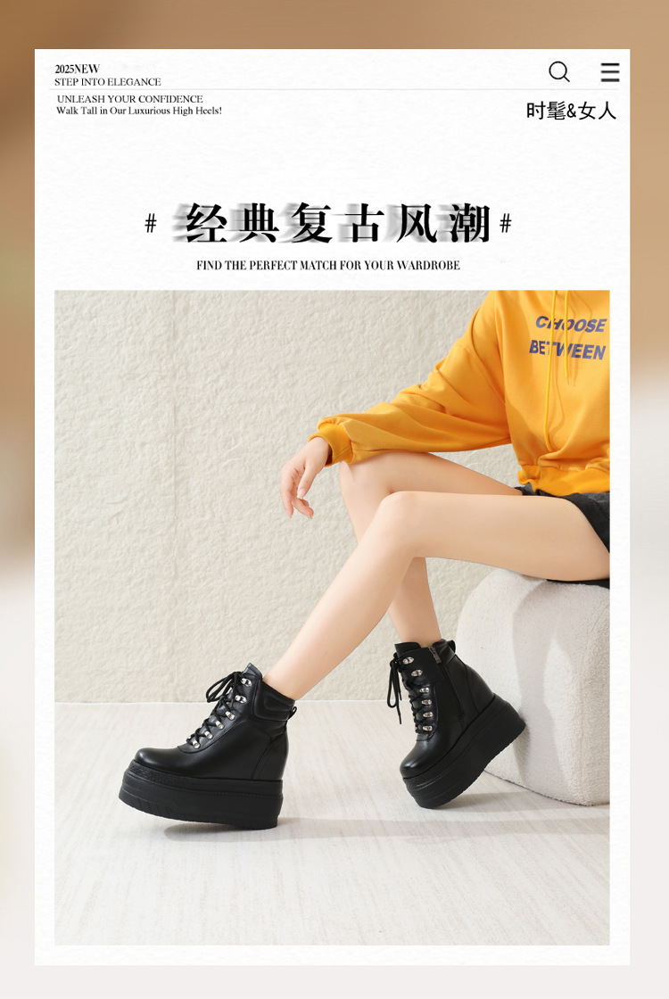 Giày bốt cổ thấp thiết kế mới cho mùa thu đông. Sản phẩm có phần đế rất dày và cao toàn bộ, giúp tăng chiều cao một cách tinh tế. Form giàu ôm chân với kiểu dáng đơn giản, màu sắc dễ phối đồ. Bạn có thể mang trong nhiều dịp, từ đi chơi, dạo phố đến khi làm việc. Chỉ cần xỏ chân vào và kéo khóa nhẹ nhàng là đã sẵn sàng để ra ngoài. | Tên sản phẩm: Giày Boot Cổ Thấp Nữ Tăng Chiều Cao Đế Xuồng Đế Cao Hàng Mùa Xuân Thu Đông - Giày Dép Nữ | Mã sản phẩm: B3988 - Giá: 2.120.000đ | Mã nhà sản xuất: QIDNG-G05Hình ảnh sản phẩm