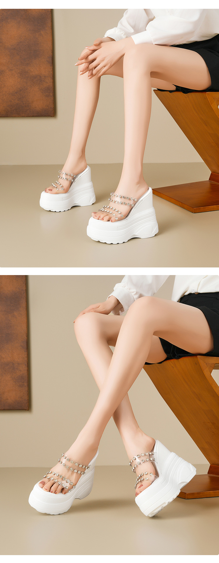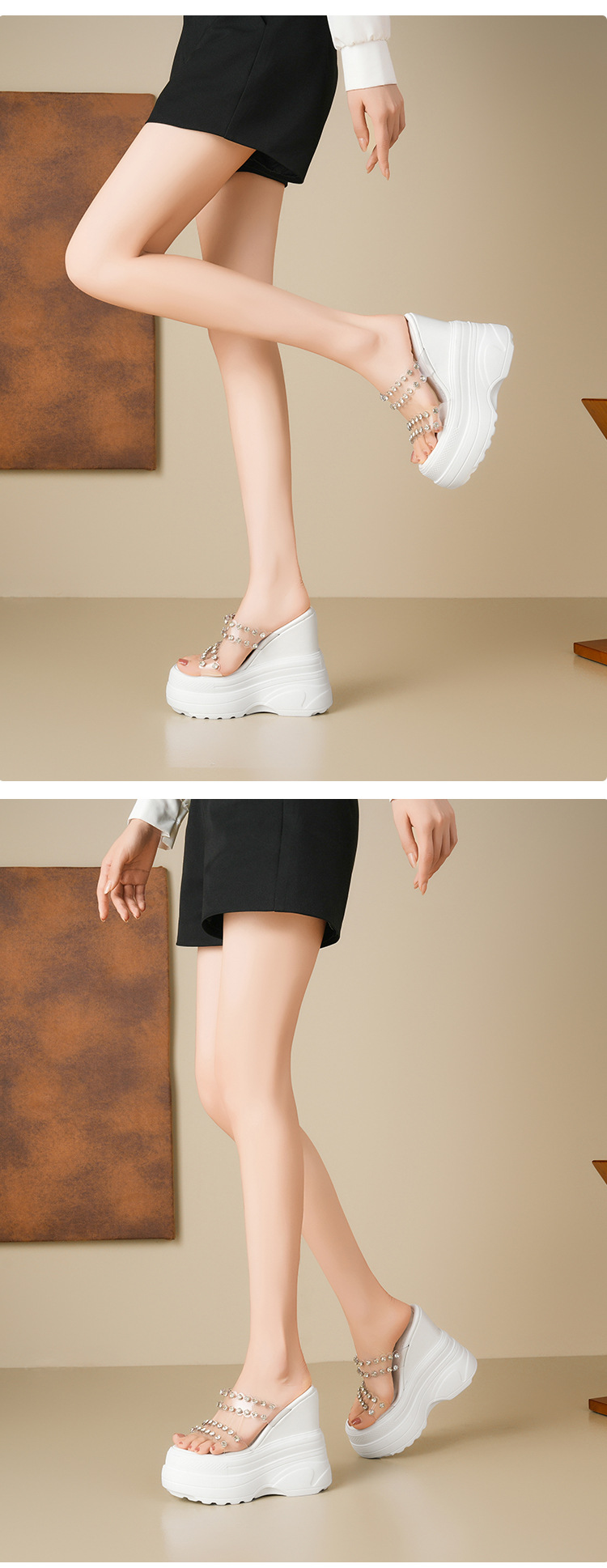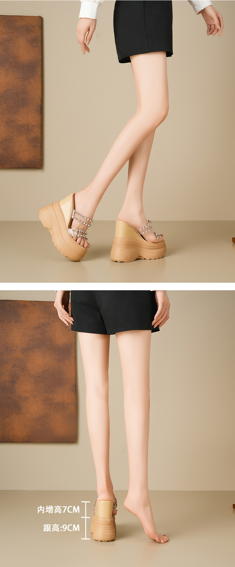 Đôi dép mang nữ tính này có phần đế dày tạo dáng thon gọn cho đôi chân. Kiểu dáng đế xuồng thoải mái, kết hợp cùng những viên đá lấp lánh tinh tế điểm xuyết trên qu dép. Sản phẩm thích hợp cho những ngày hè, dễ dàng phối cùng nhiều loại trang phục khác nhau. Bạn chỉ cần xỏ chân vào và đi, rất tiện lợi và thoải mái cho các hoạt động thường ngày. | Tên sản phẩm: Giày Dép Lê Nữ Cao 16cm Gắn Đá Tăng Chiều Cao Đế Xuồng Hàng Mùa Hè - Giày Dép Nữ | Mã sản phẩm: B3995 - Giá: 1.830.000đ | Mã nhà sản xuất: QIDNG-G05Hình ảnh sản phẩm