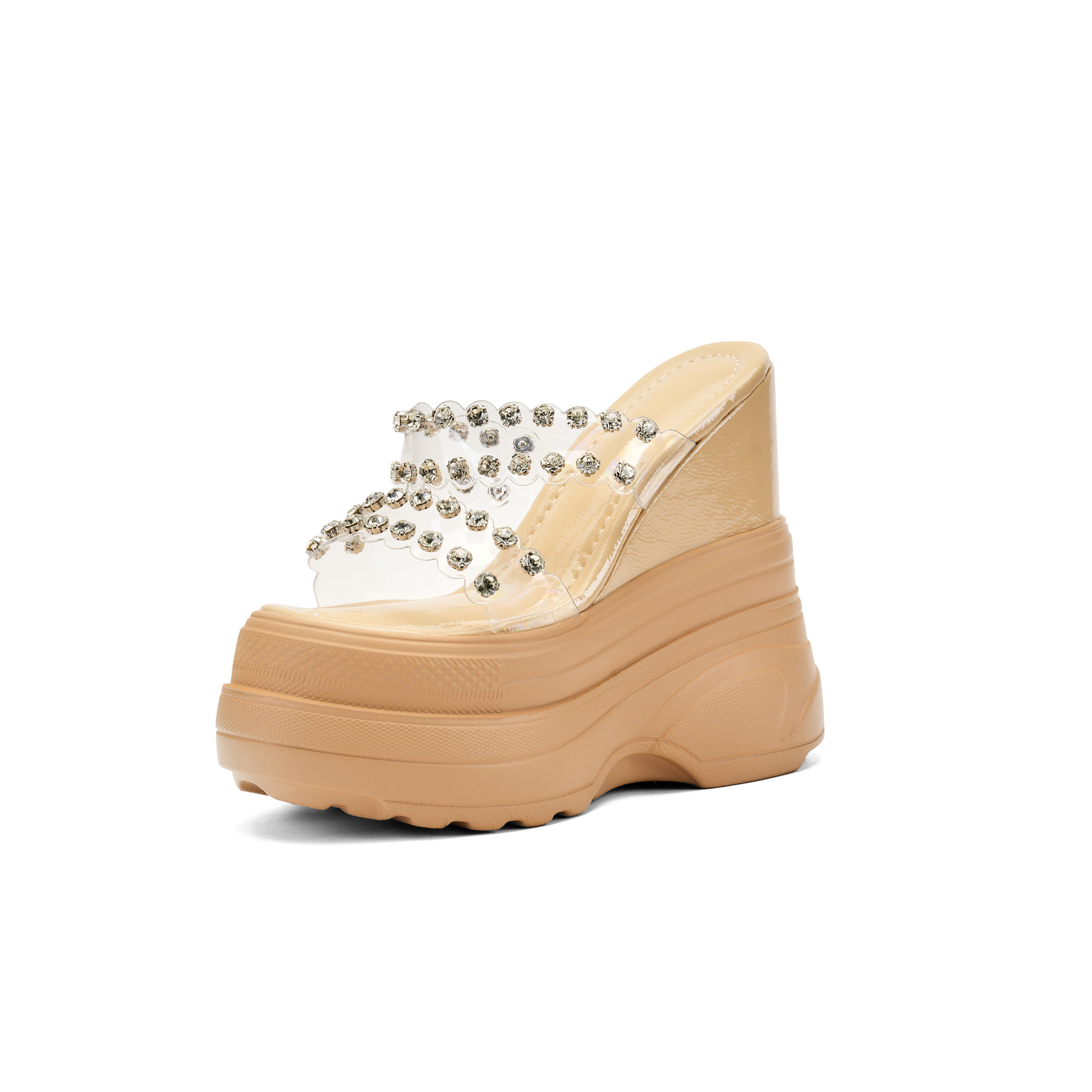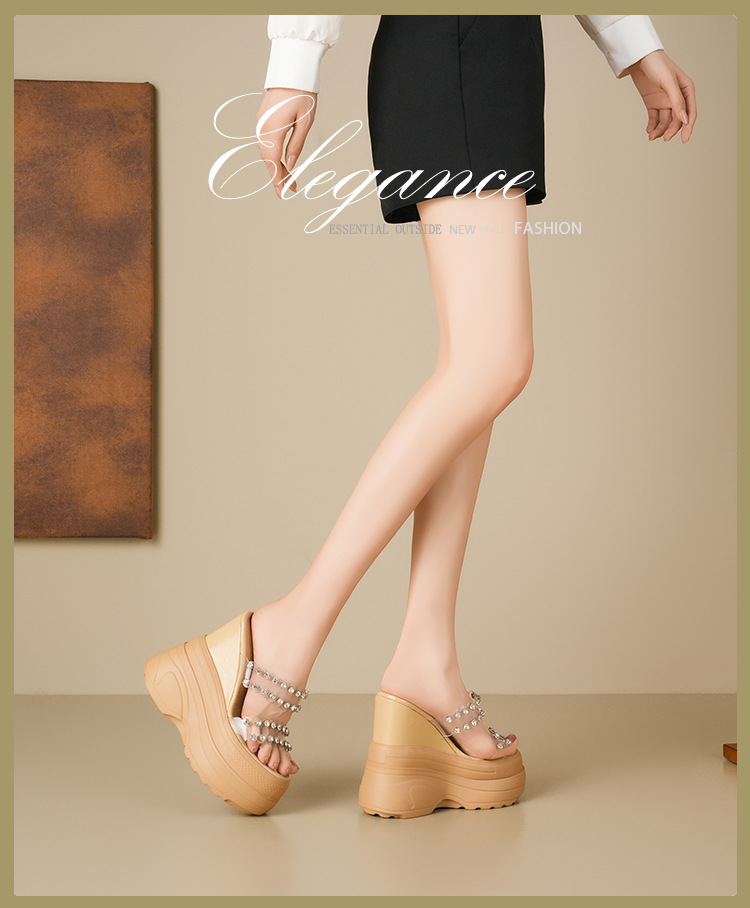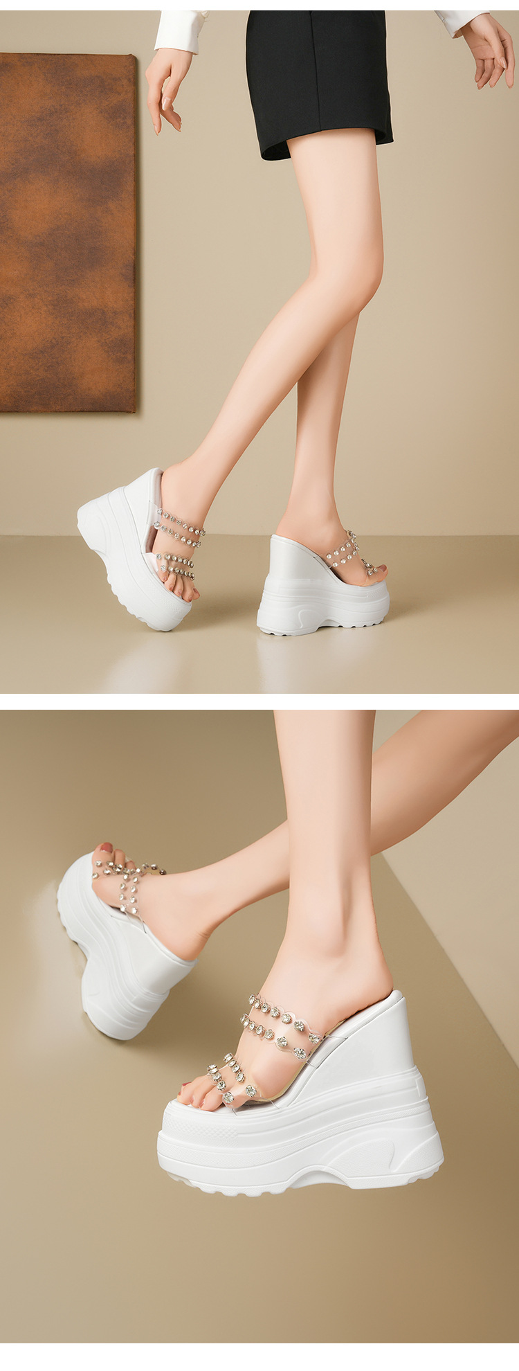 Đôi dép mang nữ tính này có phần đế dày tạo dáng thon gọn cho đôi chân. Kiểu dáng đế xuồng thoải mái, kết hợp cùng những viên đá lấp lánh tinh tế điểm xuyết trên qu dép. Sản phẩm thích hợp cho những ngày hè, dễ dàng phối cùng nhiều loại trang phục khác nhau. Bạn chỉ cần xỏ chân vào và đi, rất tiện lợi và thoải mái cho các hoạt động thường ngày. | Tên sản phẩm: Giày Dép Lê Nữ Cao 16cm Gắn Đá Tăng Chiều Cao Đế Xuồng Hàng Mùa Hè - Giày Dép Nữ | Mã sản phẩm: B3995 - Giá: 1.830.000đ | Mã nhà sản xuất: QIDNG-G05Hình ảnh sản phẩm