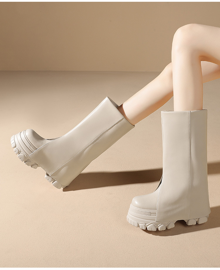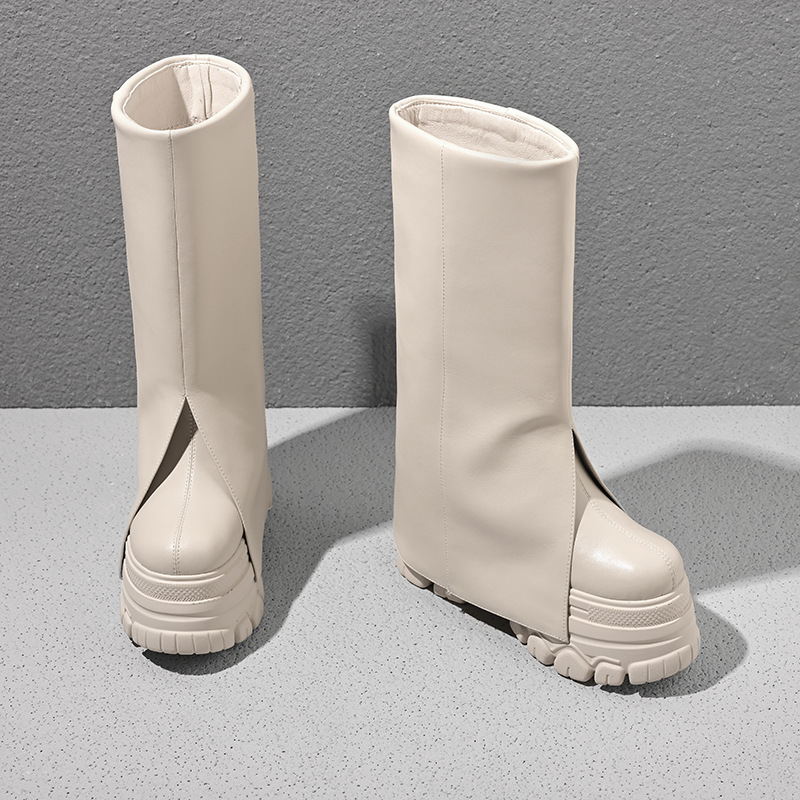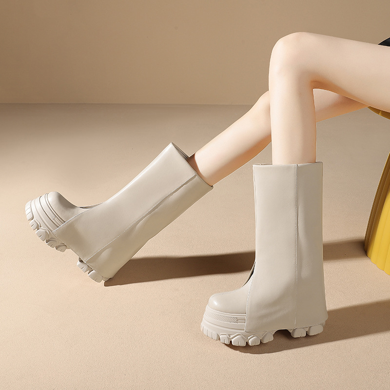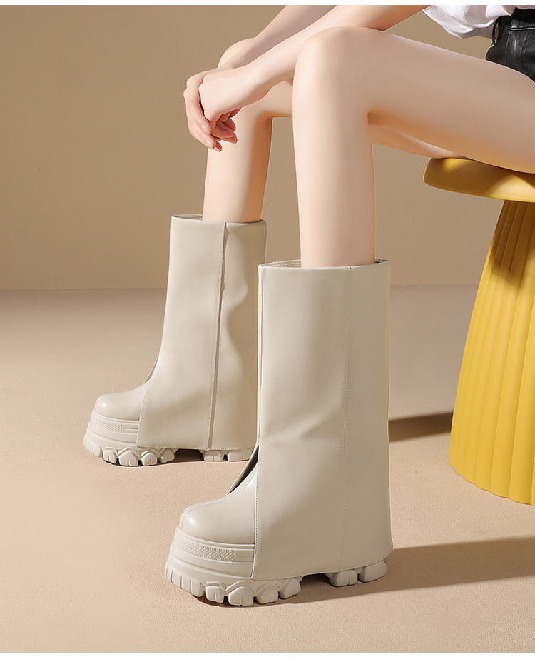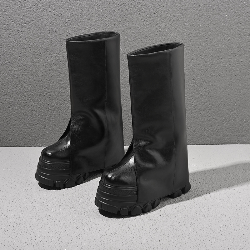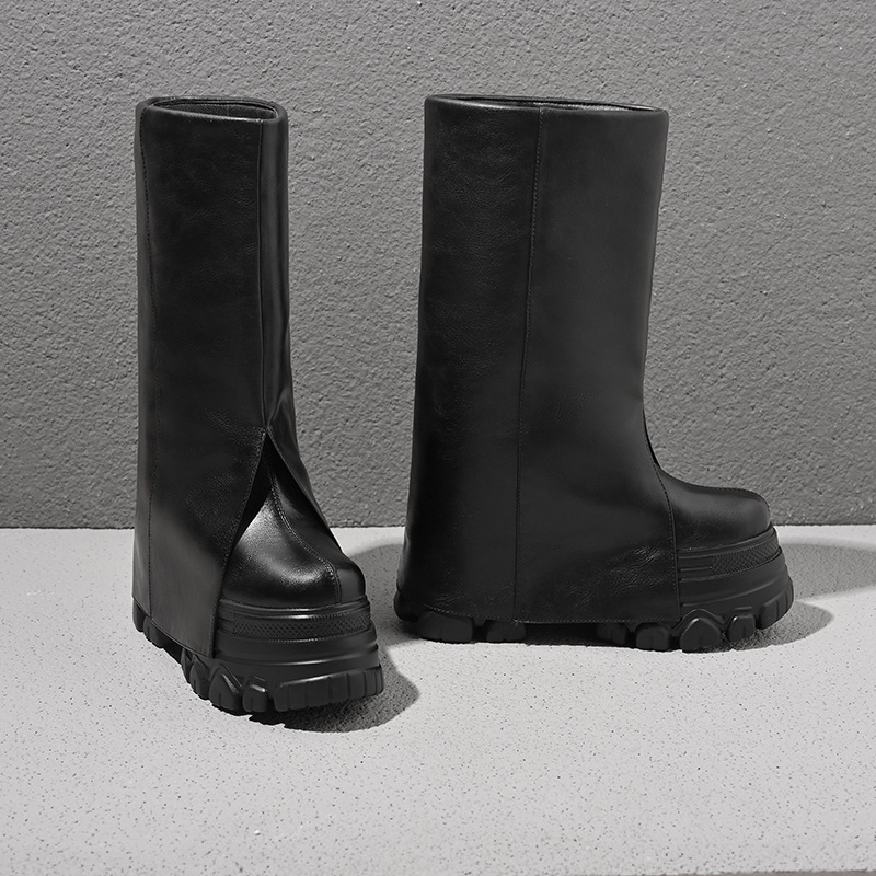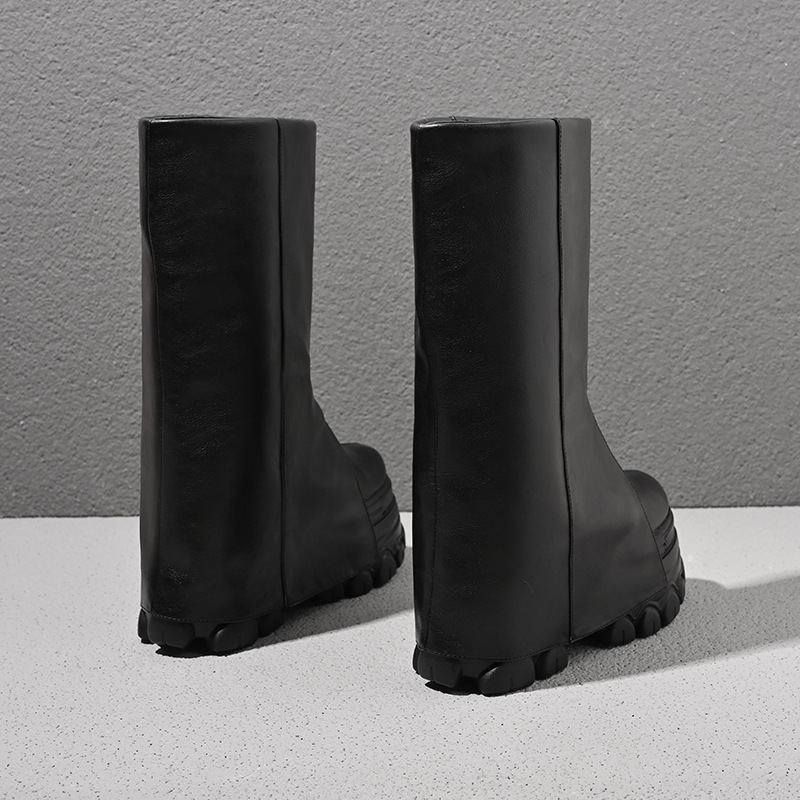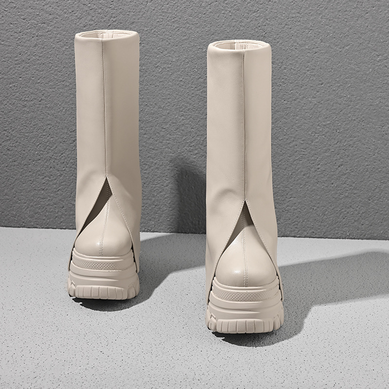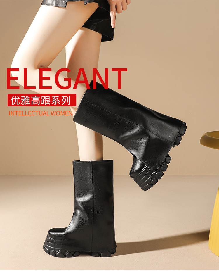 Đôi bốt cổ trung này có phần đế ngoài dày và phần đế trong được thiết kế tăng thêm chiều cao một cách khéo léo, tổng cộng khoảng 12cm. Kiểu dáng mang phong cách châu Âu cổ điển, phù hợp cho mùa thu đông. Bạn có thể dễ dàng kết hợp với quần legging bó hoặc mặc cùng váy để tạo điểm nhấn. Chỉ cần xỏ chân vào, kéo khóa phía sau là đã sẵn sàng diện một phong cách mới mẻ và năng động. | Tên sản phẩm: Cao Gót Nữ Cao 12cm Tăng Chiều Cao Đế Cao Hàng Mùa Xuân Thu Đông - Giày Dép Nữ | Mã sản phẩm: B4002 - Giá: 2.680.000đ | Mã nhà sản xuất: QIDNG-G06Hình ảnh sản phẩm