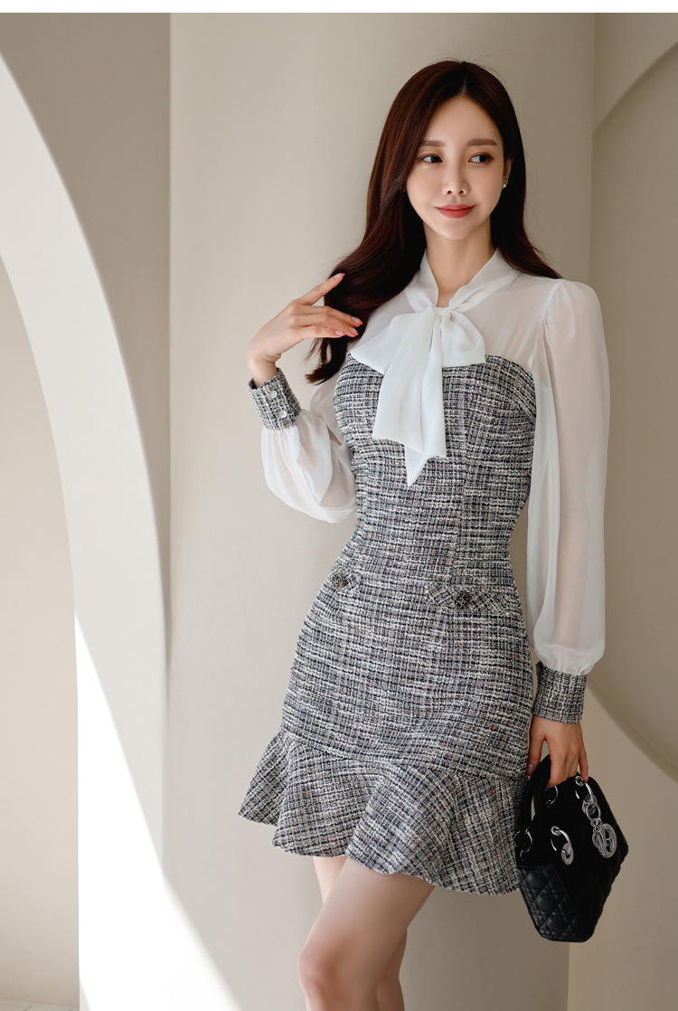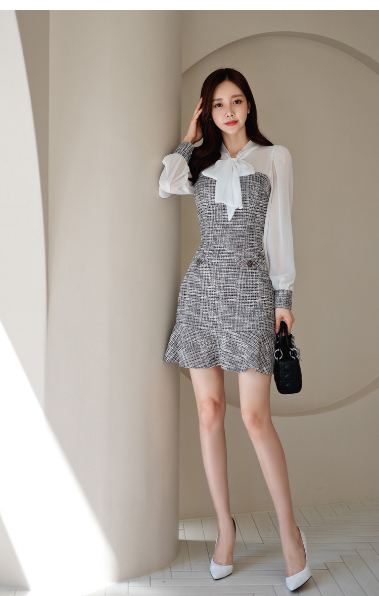 Đầm thiết kế dáng ôm body tôn dáng, điểm nhấn là nơ thắt eo và đường viền tầng lớp sóng điệu đà ở phần gấu váy. Chất vải dày dặn giữ phom tốt, phù hợp mặc trong tiết trời thu đông. Có thể phối cùng áo khoác mỏng và giày búp bê để tạo vẻ ngoại hình nhẹ nhàng, nữ tính. Sản phẩm dễ dàng phối đồ đi làm, dự tiệc hoặc gặp mặt bạn bè. | Tên sản phẩm: Váy Đầm Liền Thân Nữ Thắt Nơ Bướm Hàng Mùa Xuân Thu Đông Phong Cách Hàn Quốc - Thời Trang Nữ | Mã sản phẩm: B4020 - Giá: 1.020.000đ | Mã nhà sản xuất: ZHOUT-G03Hình ảnh sản phẩm