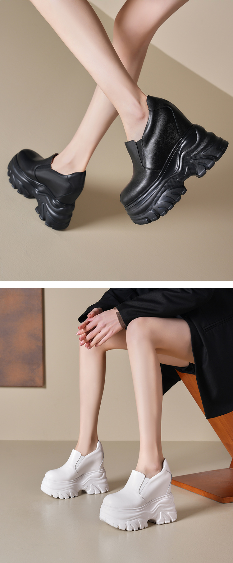 Đôi giày này có phần đế dày bên trong giúp tăng chiều cao một cách tinh tế, phù hợp cho những cô nàng có chiều cao khiêm tốn. Được làm từ chất liệu da mềm mại, kiểu dáng hơi ôm chân tạo cảm giác thanh thoát. Mẫu giày thiết kế đơn giản, màu đen dễ dàng phối hợp với nhiều loại trang phục khác nhau. Bạn có thể mang chúng khi đi chơi, đi làm hay dạo phố đều rất thoải mái và tiện lợi. | Tên sản phẩm: Giày Cao Gót Nữ Chất Liệu Da Bò Cao 12cm Tăng Chiều Cao Đế Cao Hàng Mùa Xuân Thu Đông - Giày Dép Nữ | Mã sản phẩm: B4034 - Giá: 2.020.000đ | Mã nhà sản xuất: QIDNG-G05Hình ảnh sản phẩm