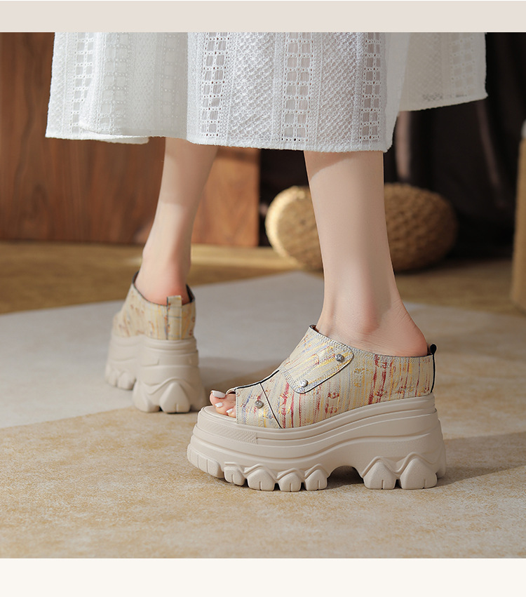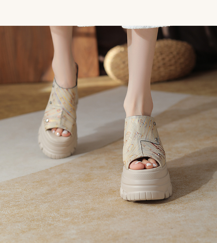 Đôi dép thể thao nữ có phần đế được thiết kế tăng thêm chiều cao một cách khéo léo, lên đến 12cm. Kiểu dáng phối giữa qu hở và đế xuồng vững chãi, rất phù hợp để diện cùng váy trong những ngày hè. Sản phẩm mang phong cách nhẹ nhàng, năng động, dễ dàng phối đồ cho các buổi dạo phố hay gặp gỡ bạn bè. Chỉ cần xỏ chân vào và đi, bạn đã có ngay một set đồ thoải mái và thời trang. | Tên sản phẩm: Giày Dép Lê Nữ Cao 12cm Tăng Chiều Cao Đế Xuồng Đế Cao Hàng Mùa Hè - Giày Dép Nữ | Mã sản phẩm: B4037 - Giá: 2.690.000đ | Mã nhà sản xuất: QIDNG-G06Hình ảnh sản phẩm