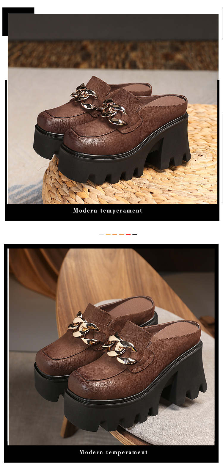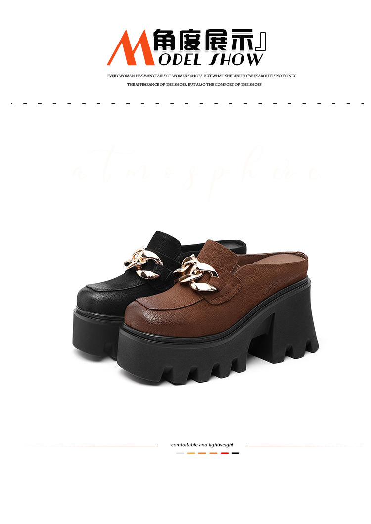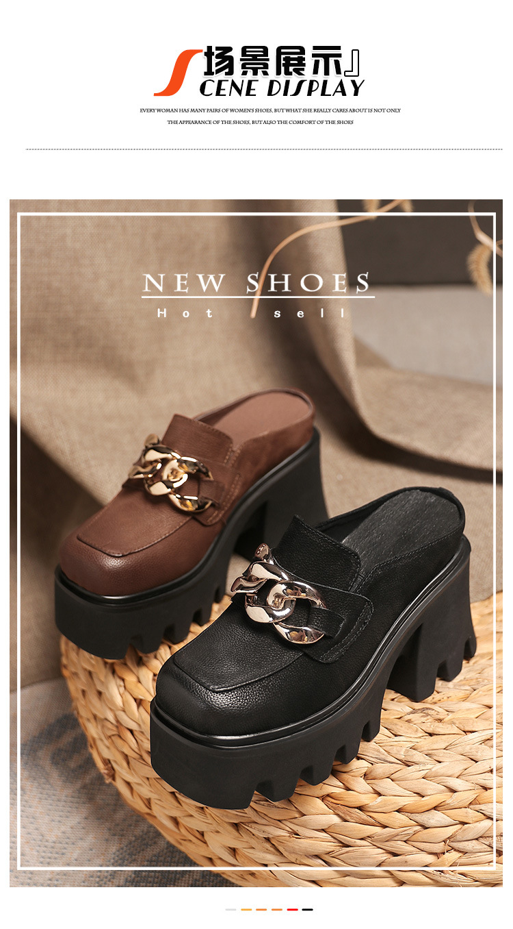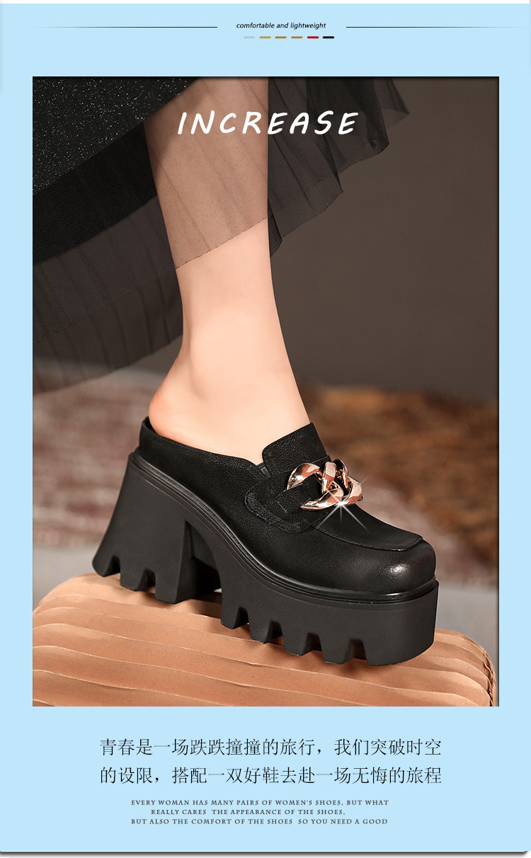 Đôi dép đi trong nhà nhưng vẫn có thể mang ra ngoài, thiết kế kín phần mũi chân. Sản phẩm có phần đế dày đặc biệt, giúp tăng chiều cao lên đến 10cm một cách tinh tế với phần gót kiểu móng ngựa chắc chắn. Phong cách cổ điển, dễ dàng phối hợp với nhiều loại trang phục khác nhau. Được làm từ chất liệu da thật cho cảm giác thoải mái. Chỉ cần xỏ chân vào là bạn đã có ngay một vẻ ngoài cá tính và thoải mái cho những hoạt động thường ngày. | Tên sản phẩm: Giày Dép Lê Nữ Chất Liệu Da Bò Cao 10cm Gót Vuông Tăng Chiều Cao Đế Cao Phục Cổ Cổ Điển - Giày Dép Nữ | Mã sản phẩm: B4042 - Giá: 1.830.000đ | Mã nhà sản xuất: QIDNG-G05Hình ảnh sản phẩm