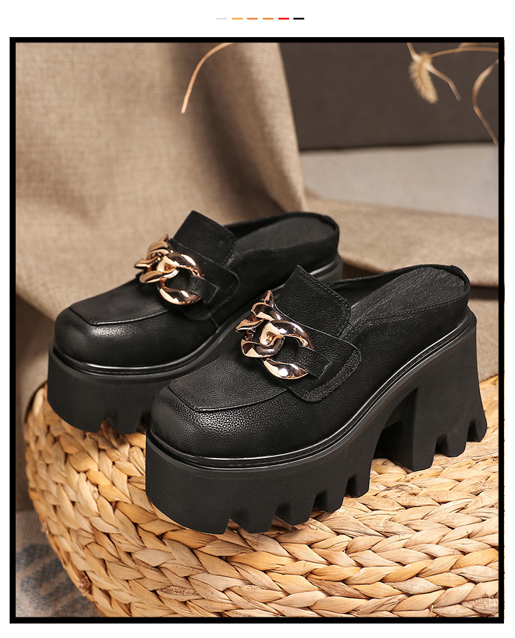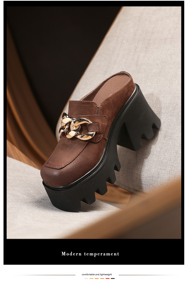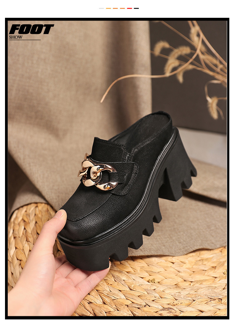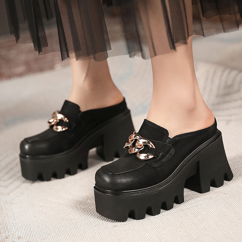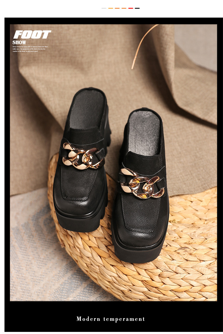 Đôi dép đi trong nhà nhưng vẫn có thể mang ra ngoài, thiết kế kín phần mũi chân. Sản phẩm có phần đế dày đặc biệt, giúp tăng chiều cao lên đến 10cm một cách tinh tế với phần gót kiểu móng ngựa chắc chắn. Phong cách cổ điển, dễ dàng phối hợp với nhiều loại trang phục khác nhau. Được làm từ chất liệu da thật cho cảm giác thoải mái. Chỉ cần xỏ chân vào là bạn đã có ngay một vẻ ngoài cá tính và thoải mái cho những hoạt động thường ngày. | Tên sản phẩm: Giày Dép Lê Nữ Chất Liệu Da Bò Cao 10cm Gót Vuông Tăng Chiều Cao Đế Cao Phục Cổ Cổ Điển - Giày Dép Nữ | Mã sản phẩm: B4042 - Giá: 1.830.000đ | Mã nhà sản xuất: QIDNG-G05Hình ảnh sản phẩm
